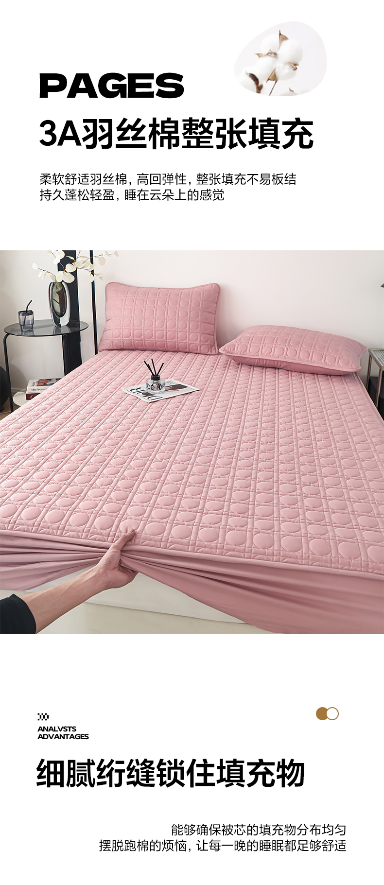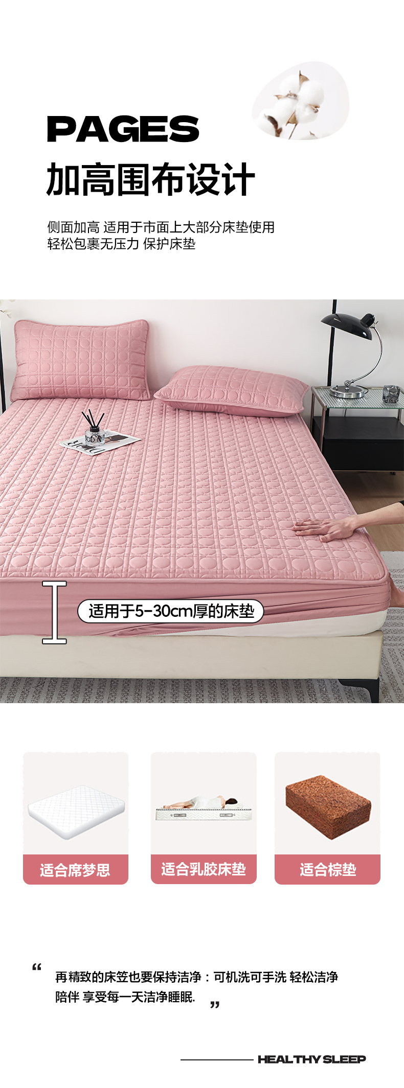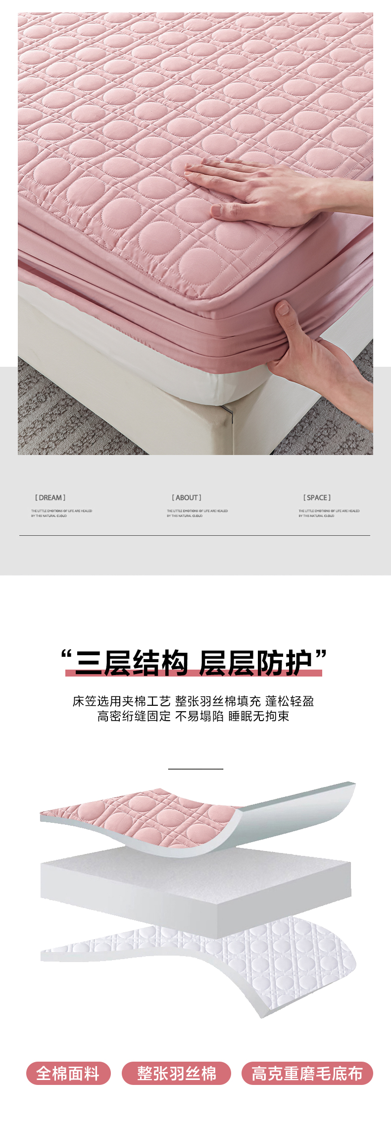 • 91家纺网 家纺一手货源 找家纺 佳笠家居 2025新款全棉纯棉夹棉床笠四季通用席梦思保护套床罩 豆沙粉