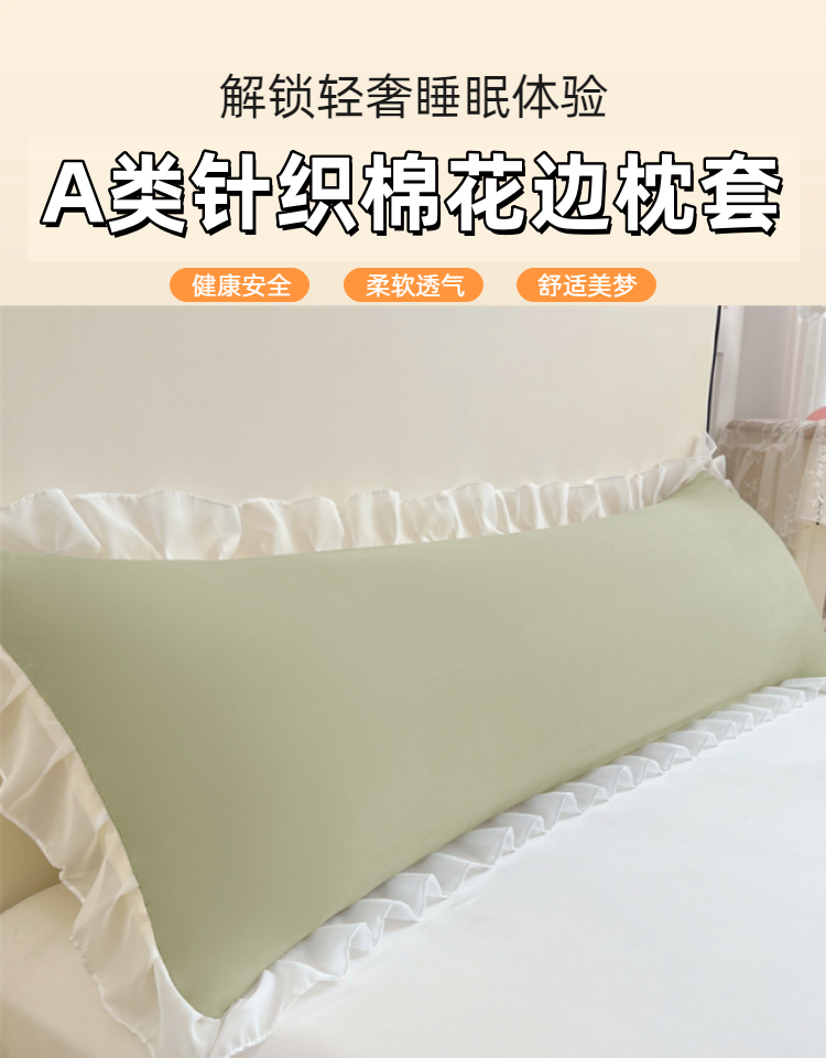 商品名称:圣比熊 2025新款针织棉双层纱花边枕头套情侣双人枕套枕芯套枕头内胆套 花边款-豆绿