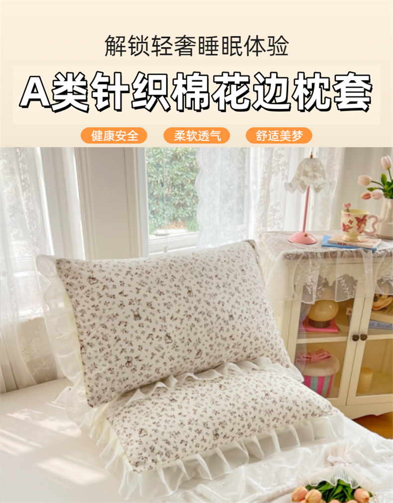 商品名称:梦舒羽 2025新款针织棉双层纱花边枕头套双人枕套枕芯套宿舍单人枕头内胆套 花边款-花仙子