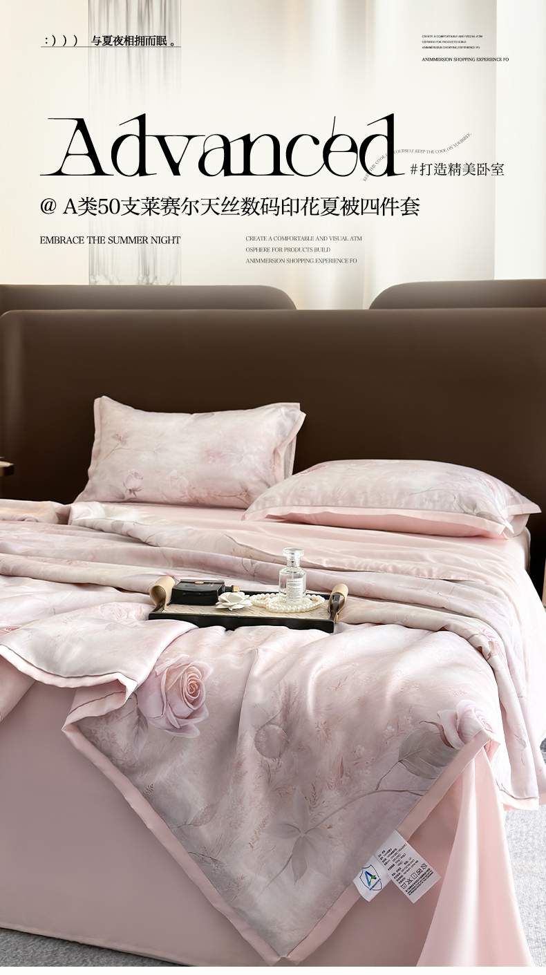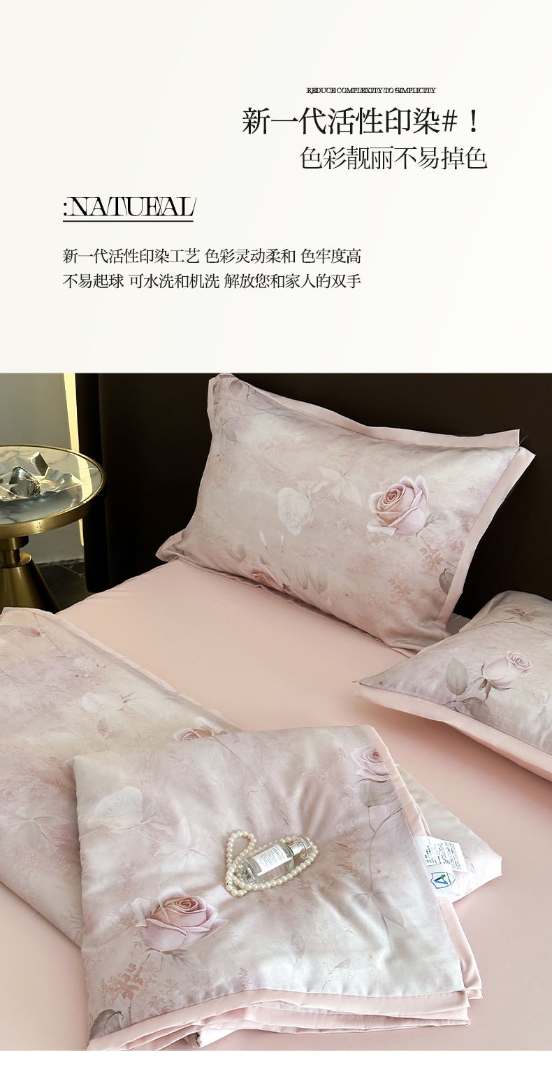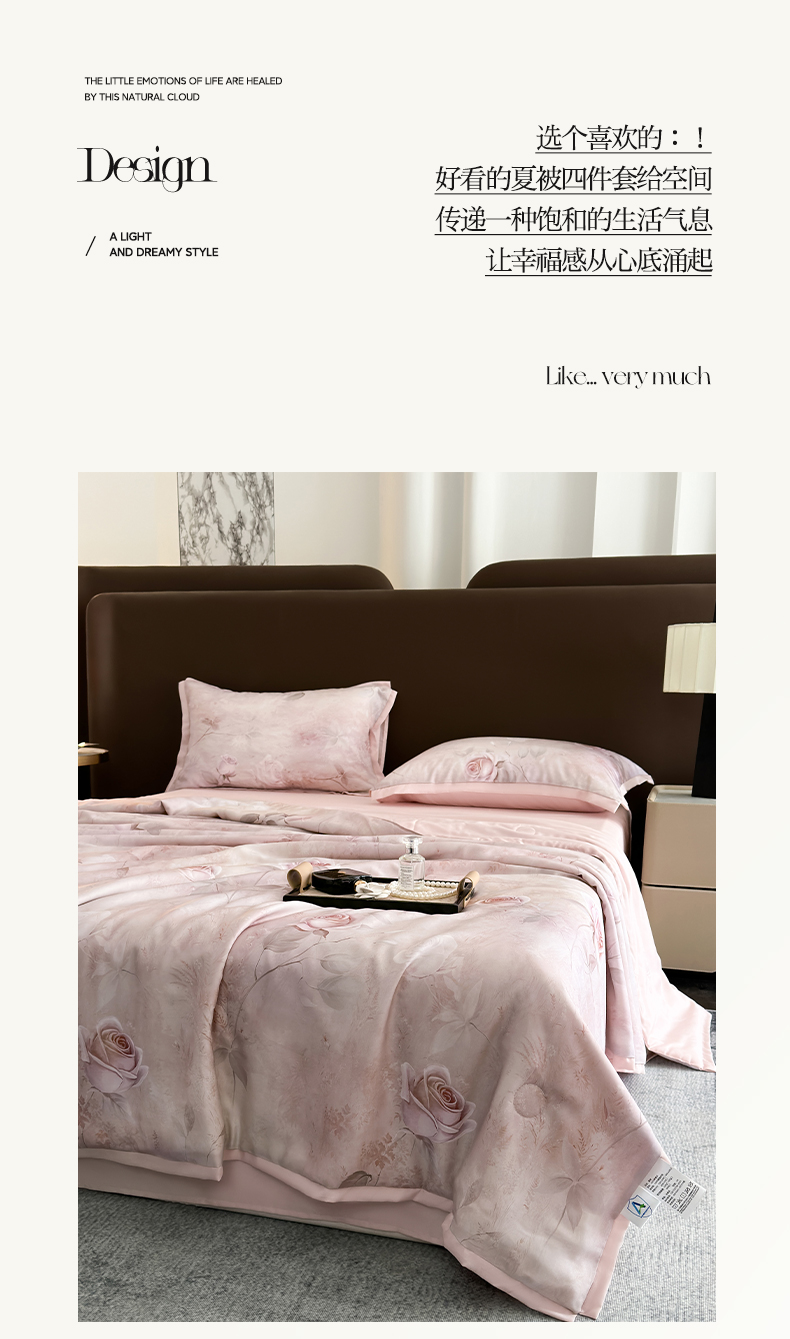 当前位置: 91家纺网 > 商品网购 > 床品套件 > 四件套 > 夏被四件套 > 莱登卡奴 25新款A类50支100%莱赛尔天丝数码印花夏被四件套 玫瑰情缘腮红