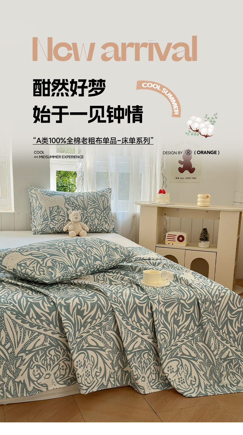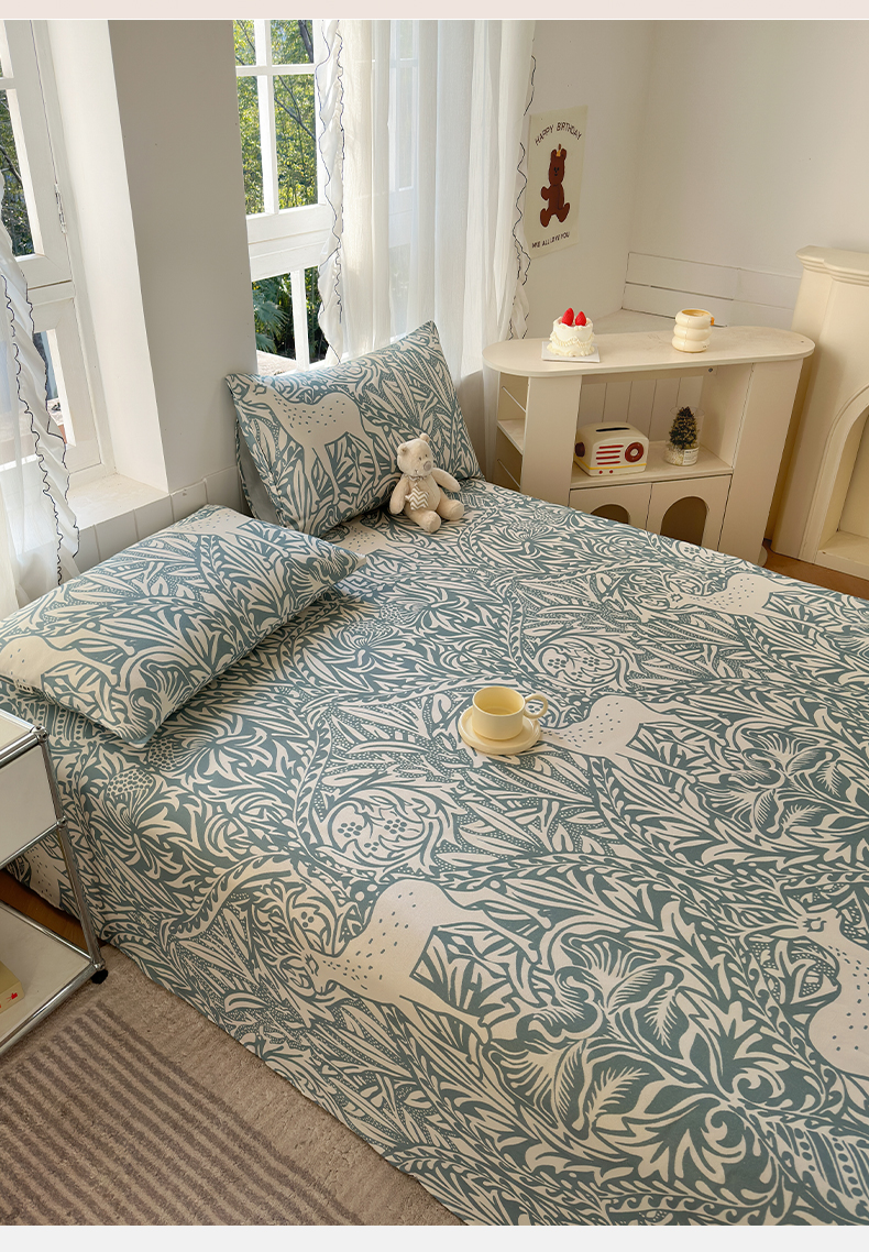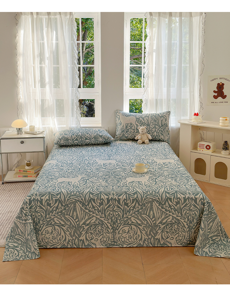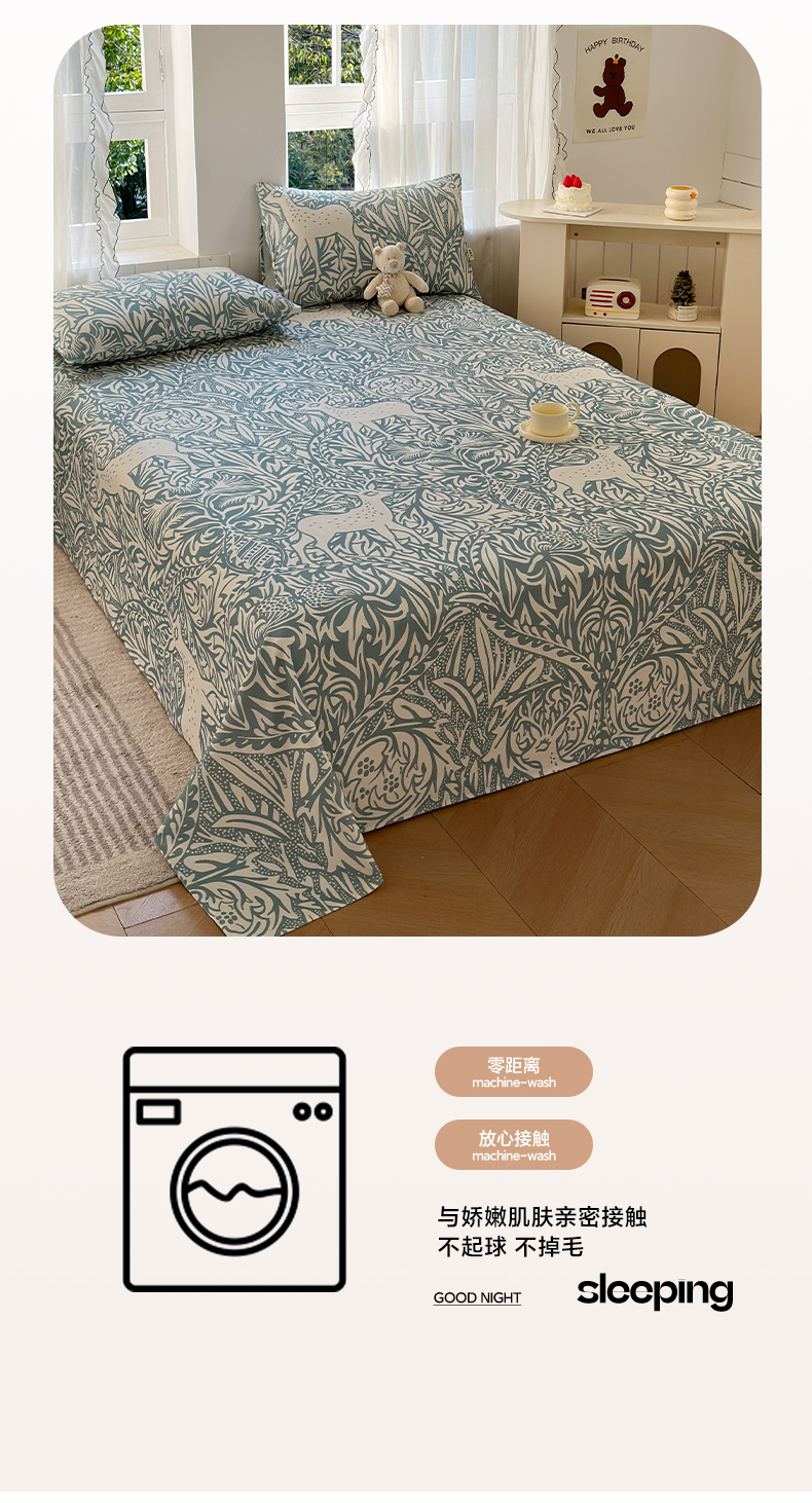 莱登卡奴 新款A类100%全棉老粗布单品系列-床单 云深见鹿