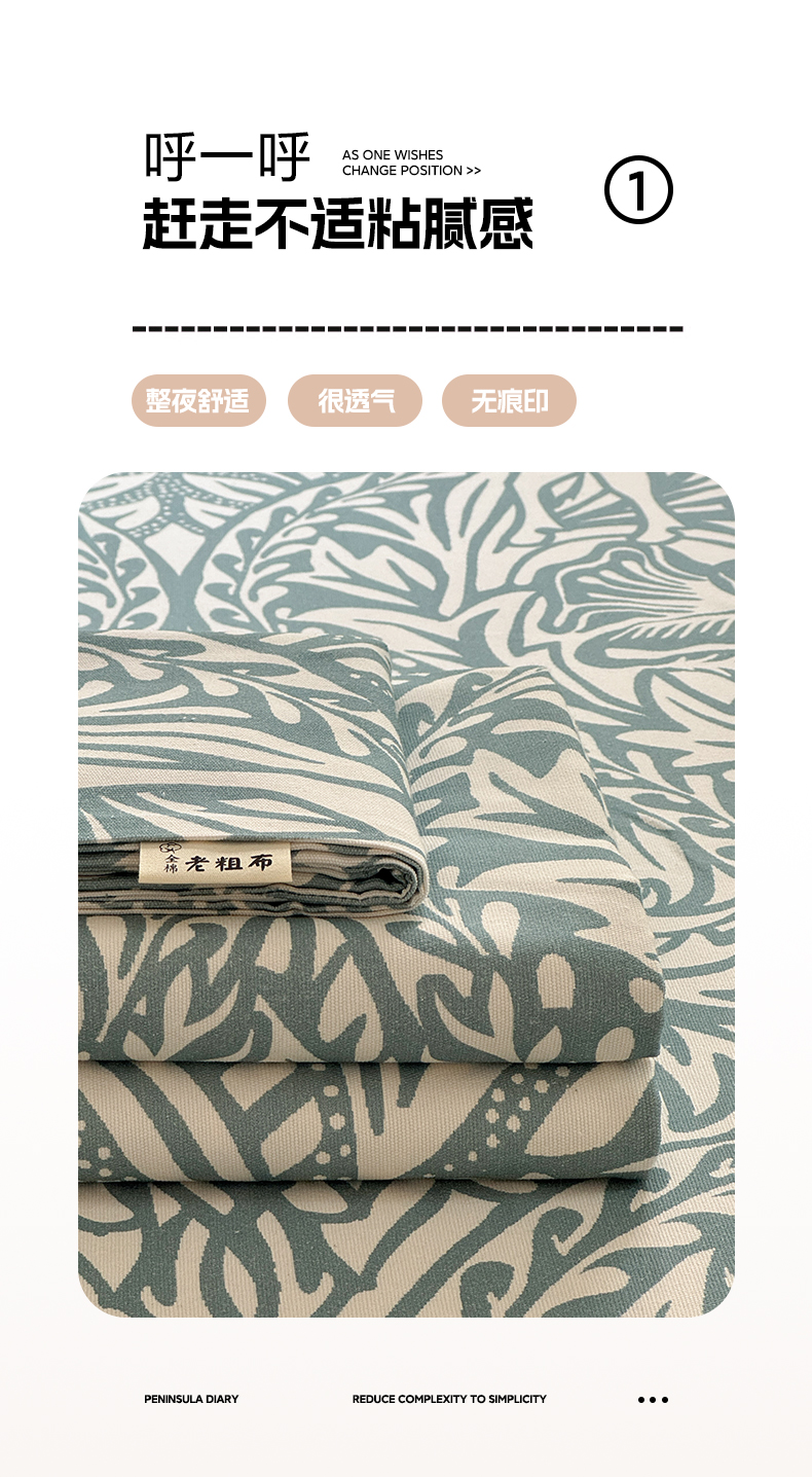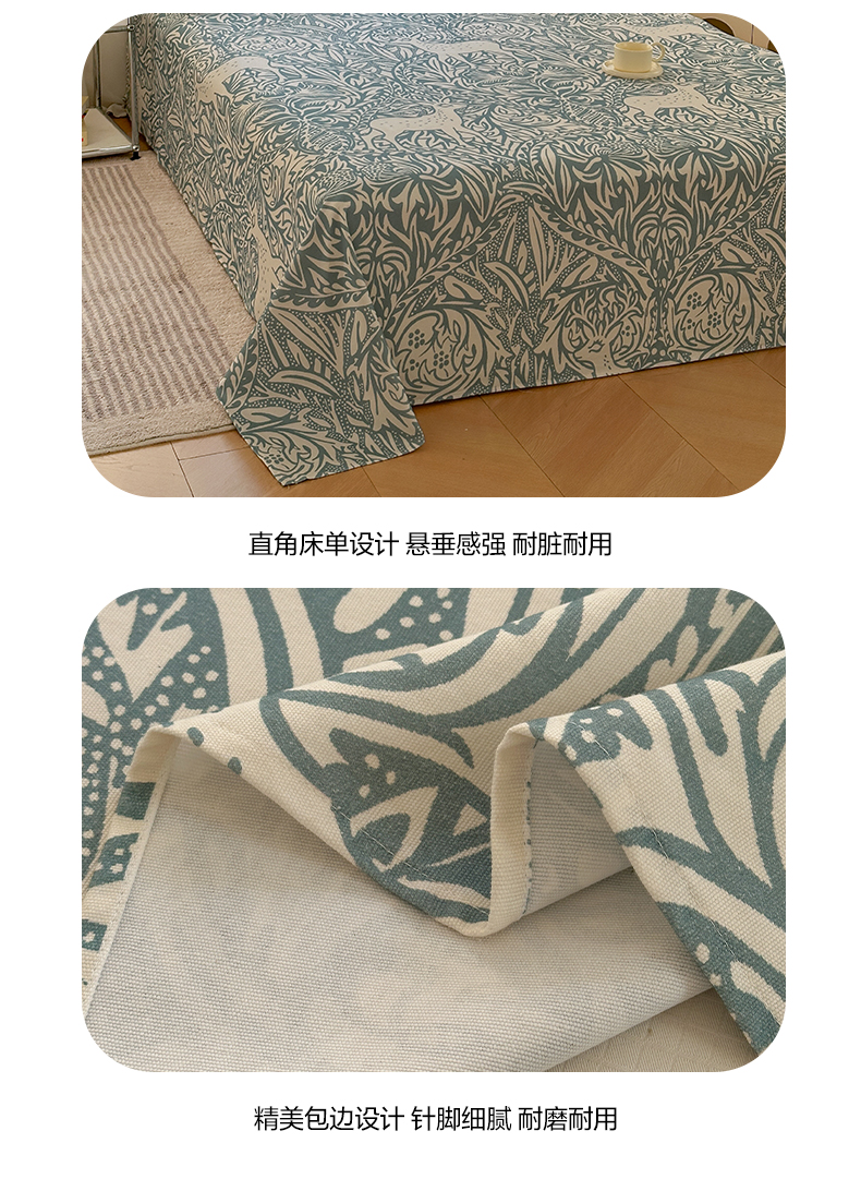 • 91家纺网 家纺一手货源 找家纺 莱登卡奴 新款A类100%全棉老粗布单品系列-床单 云深见鹿