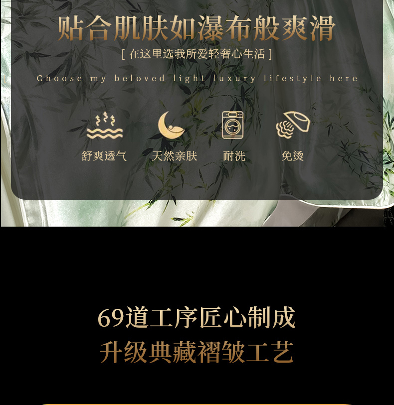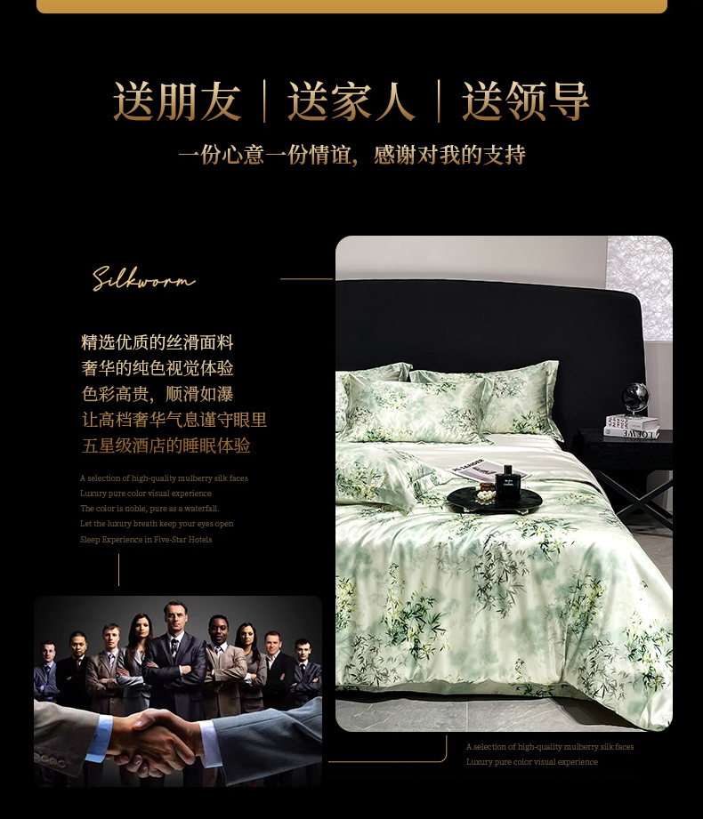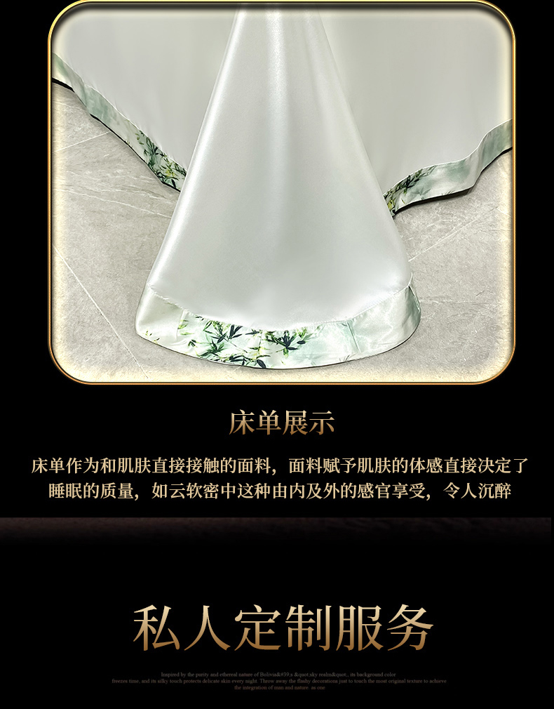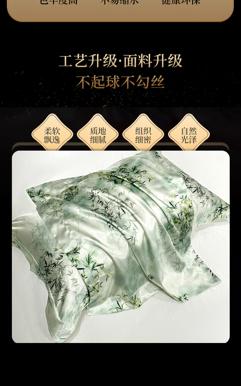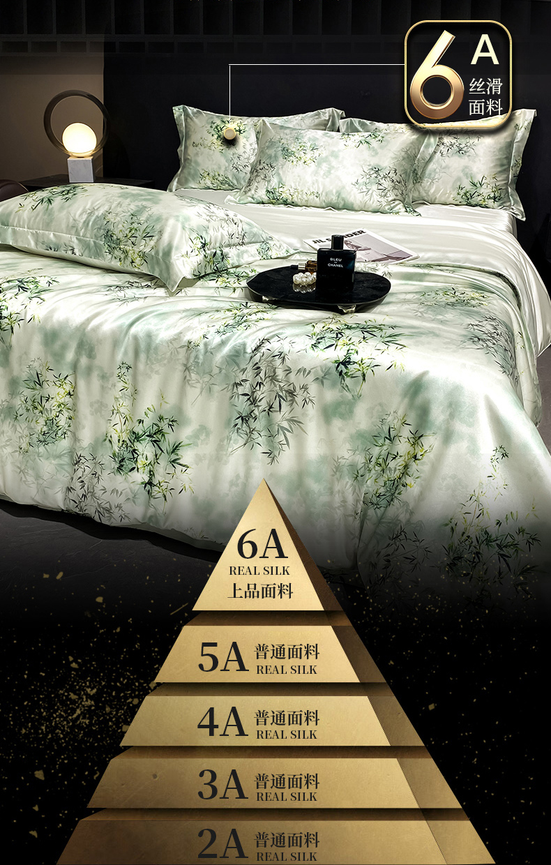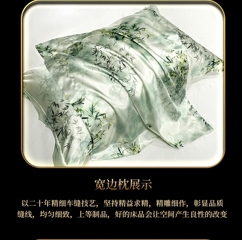 商品名称:黄鹂鸟 2025新款高端轻奢丝滑裸睡丝绸数码印花水洗真丝天丝四件套系列 -风格四 东方竹韵