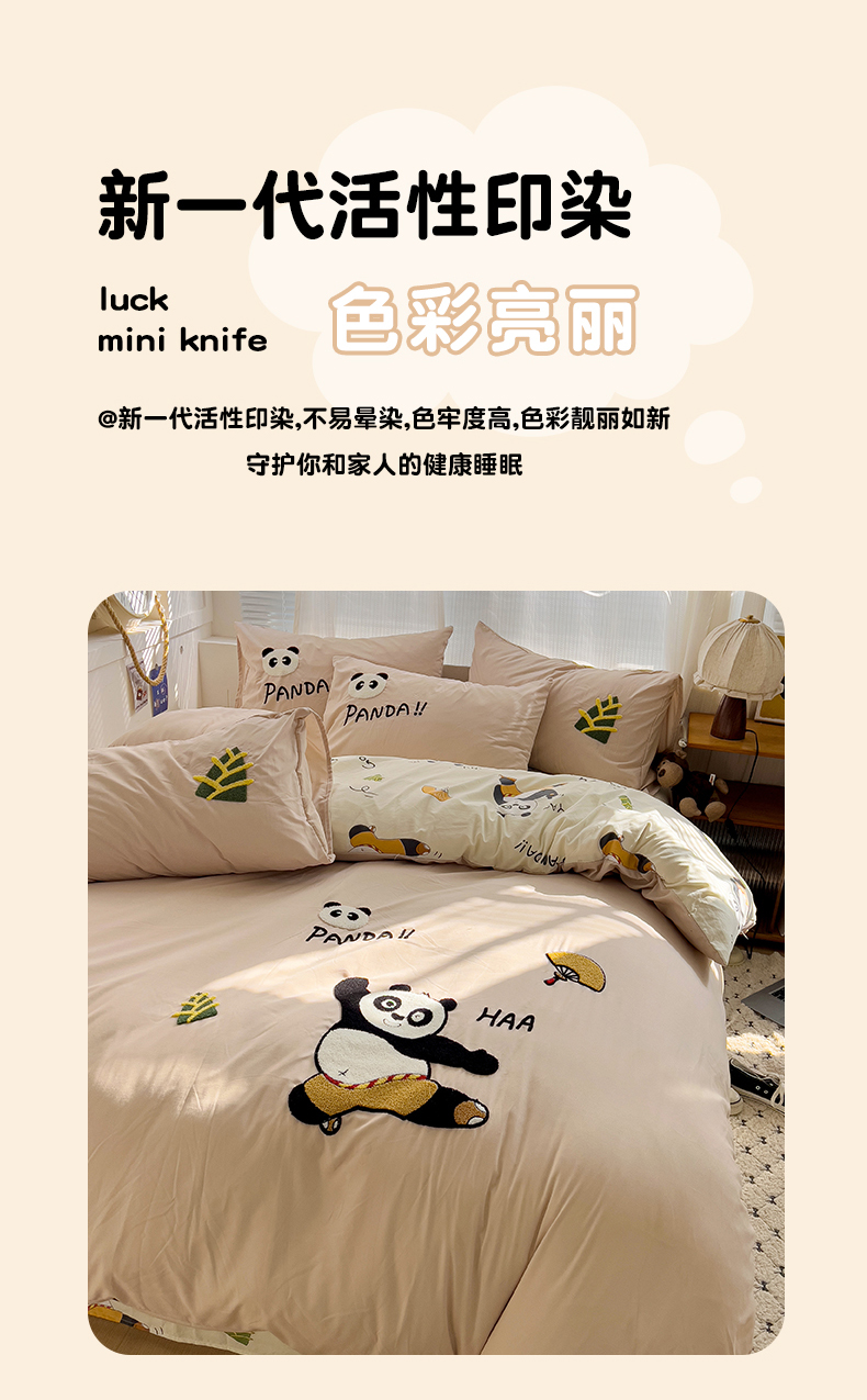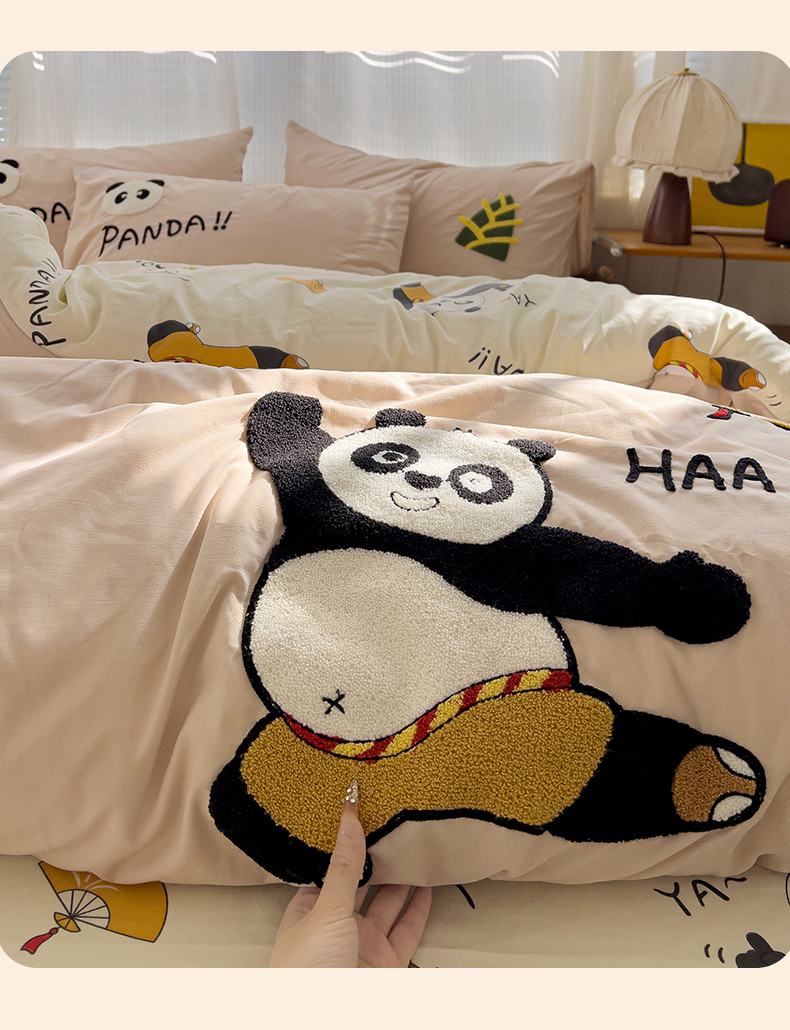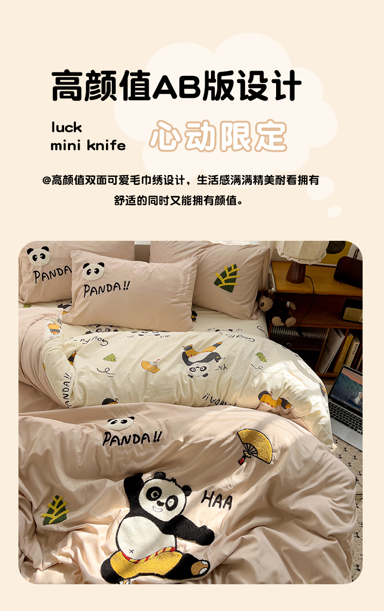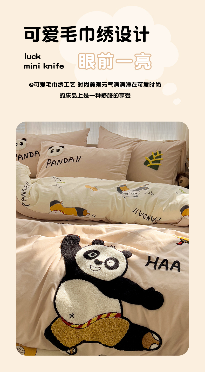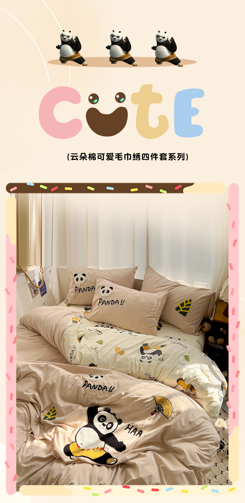 当前位置: 91家纺网 > 商品网购 > 床品套件 > 四件套 > 其它四件套 > 罗亿家纺 2025新款云朵棉可爱毛巾绣系列四件套 熊猫会功夫