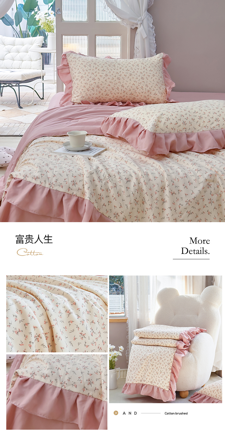 (总)梦莱斯 2025新款田园碎花纯棉花边四件套-床盖款,采薇,花精灵,花开半夏,莱茵,恋爱季,绿叶仙踪,糜花似锦,糜花熙悦,秘境花园