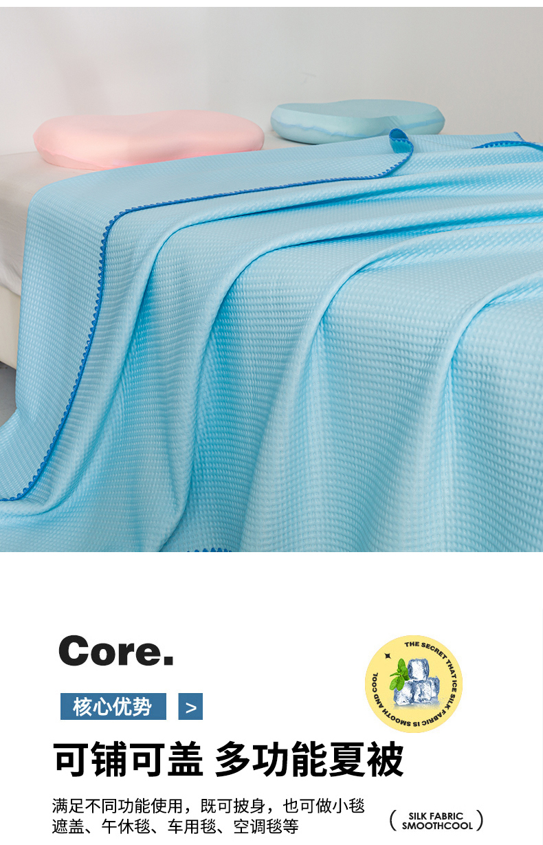 商品名称:柏薇2025新款A类华夫格400g凉感丝盖毯多功能双面用凉感夏凉被 双面纯凉感-天空蓝