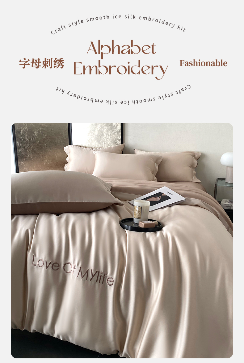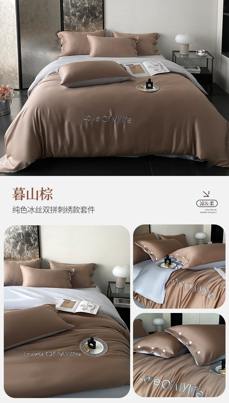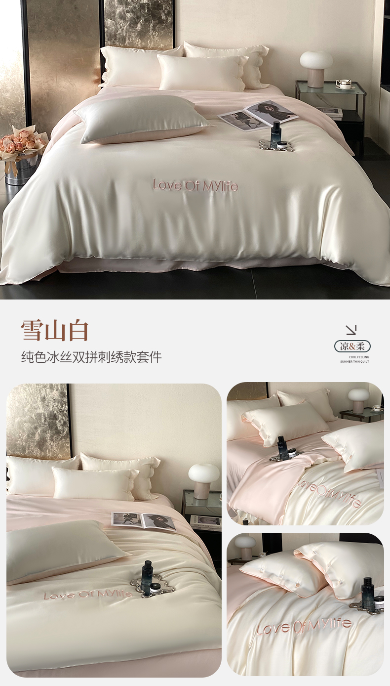 (总)优悦 2025新款冰丝印花刺绣双拼四件套-漫心