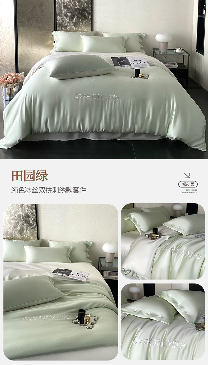 (总)优悦生活馆 2025新款顺滑冰丝夏被四件套-轻梦轻语,轻梦-绿,轻梦-香槟,轻梦-紫,轻语-绿,轻语-紫
