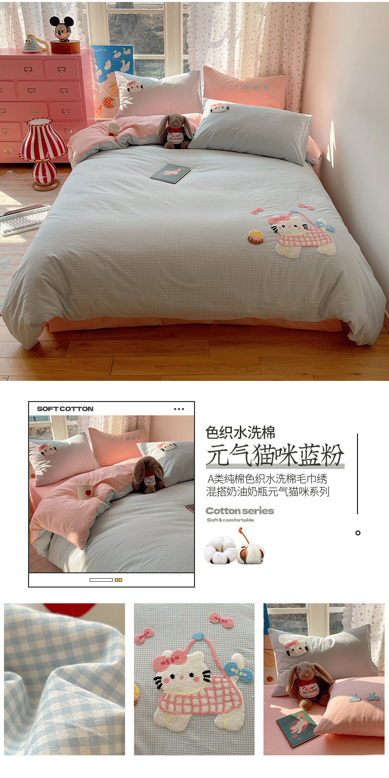当前位置: 91家纺网 > 商品网购 > 床品套件 > 四件套 > 全棉普通四件套 > 桃子家居2025新款A类纯棉色织水洗棉毛巾绣猫咪混搭奶油奶瓶元气猫咪 色织水洗棉-元气猫咪蓝粉
