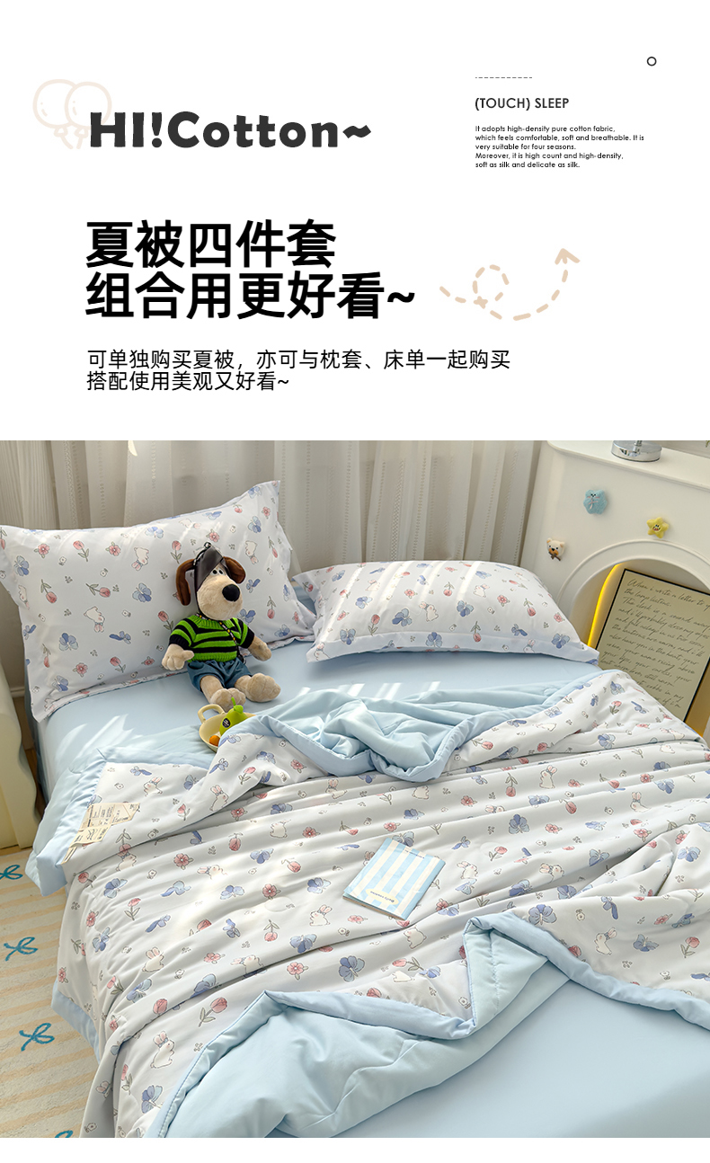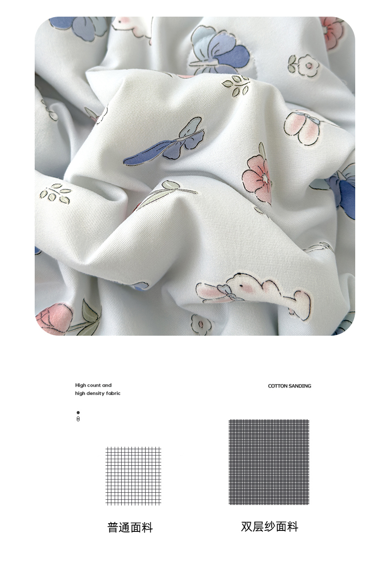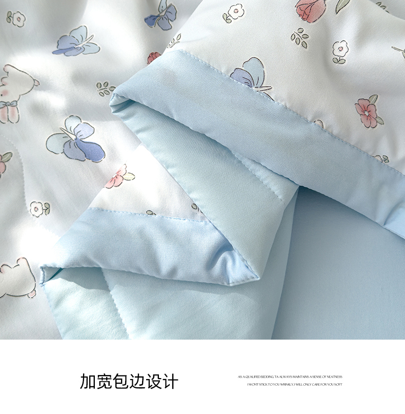 商品名称:芯恋家居 2025新款针织棉双层纱夏被夏被四件套 花园小兔