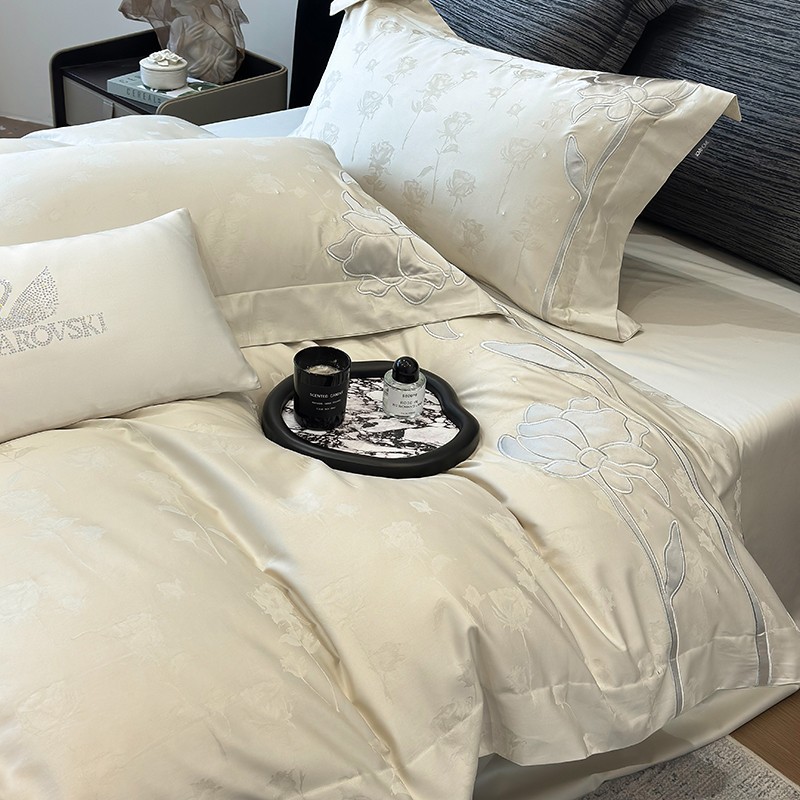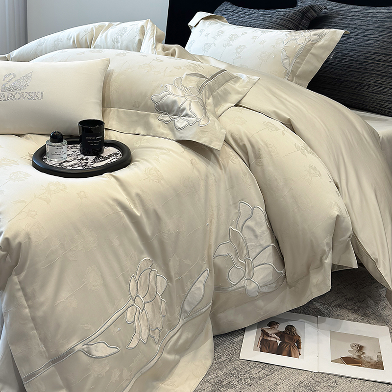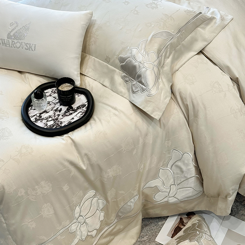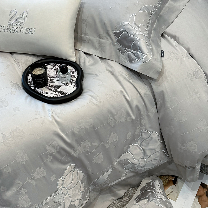 (总)若未 2023新款50支长绒棉镂空轻奢四件套-奢梵克,爱玛橘,宾利蓝,粉豆沙,贵族白,贵族红,气质灰,山灰色,天蓝