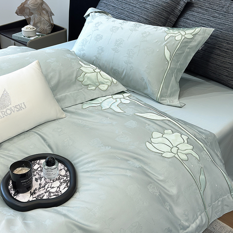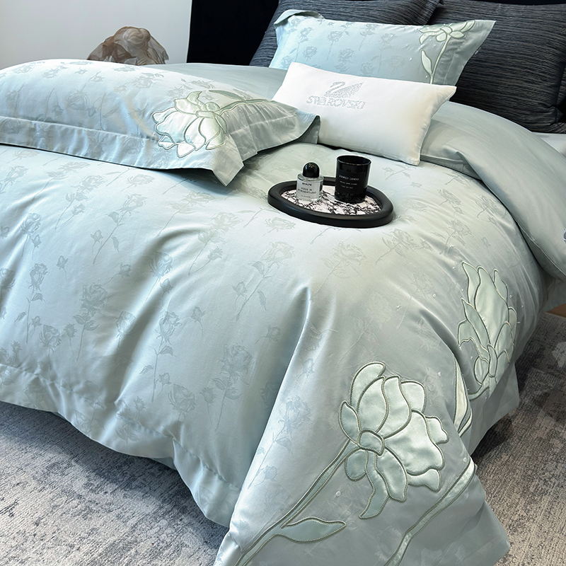 (总)若未家居 2023 新款高支高密长绒棉进口镂空款四件套 -爱法,橄榄绿,贵族红,皓月白,湖水蓝,羊脂玉