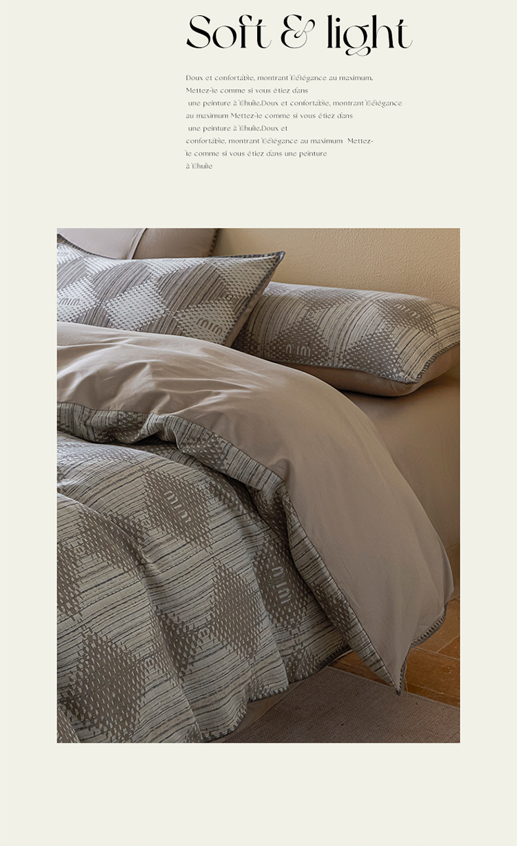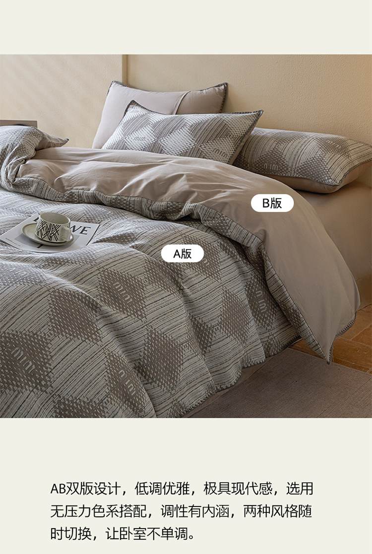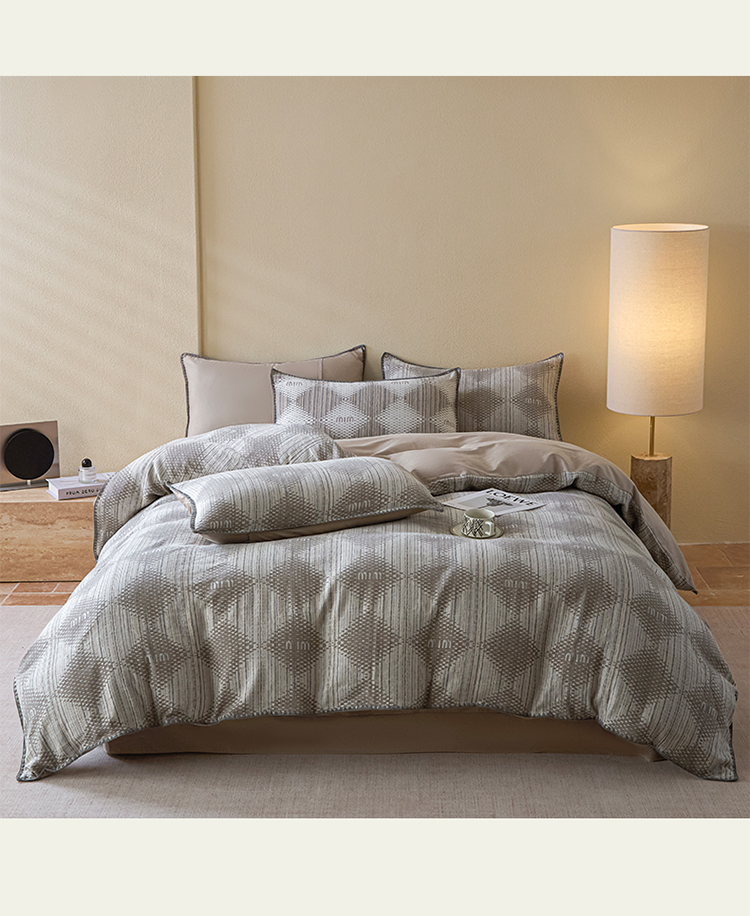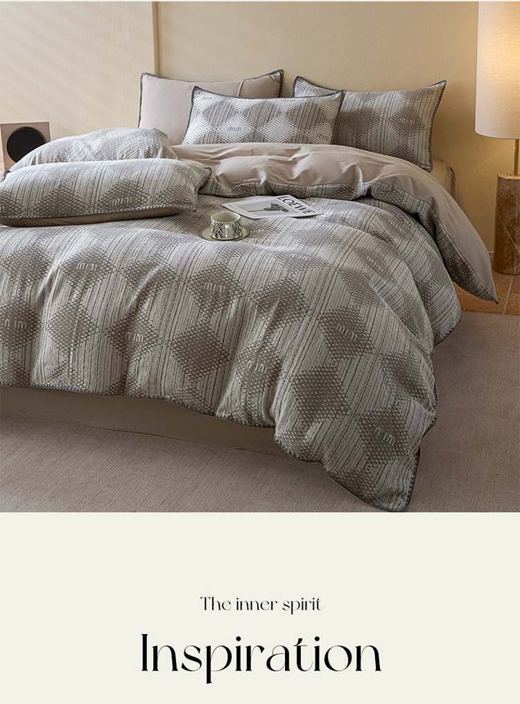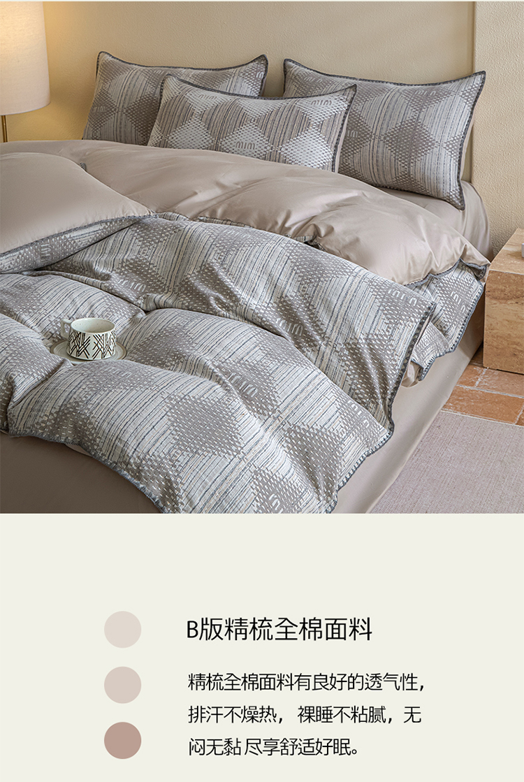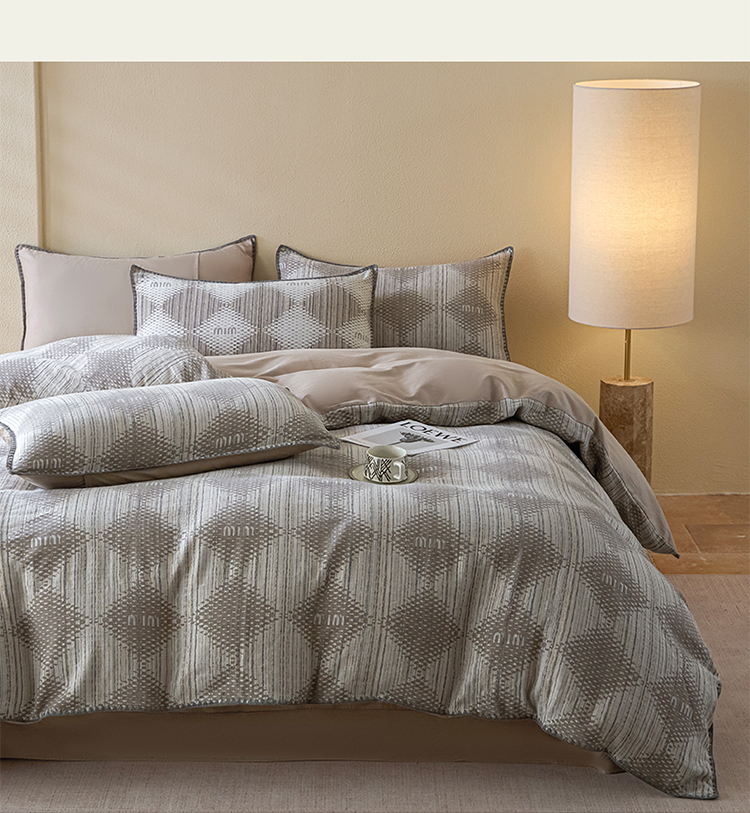 商品名称:2025新款亲肤全棉三层纱提花四件套 菱格-月灰