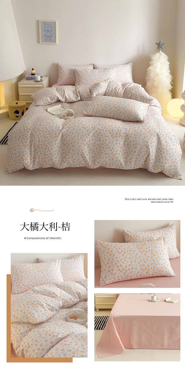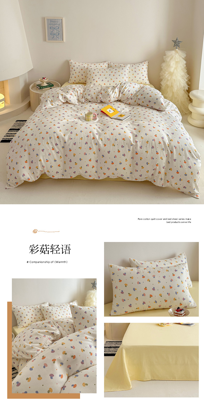 商品名称:2025新款全棉有氧A类母婴级双层纱印花四件套 彩菇轻语