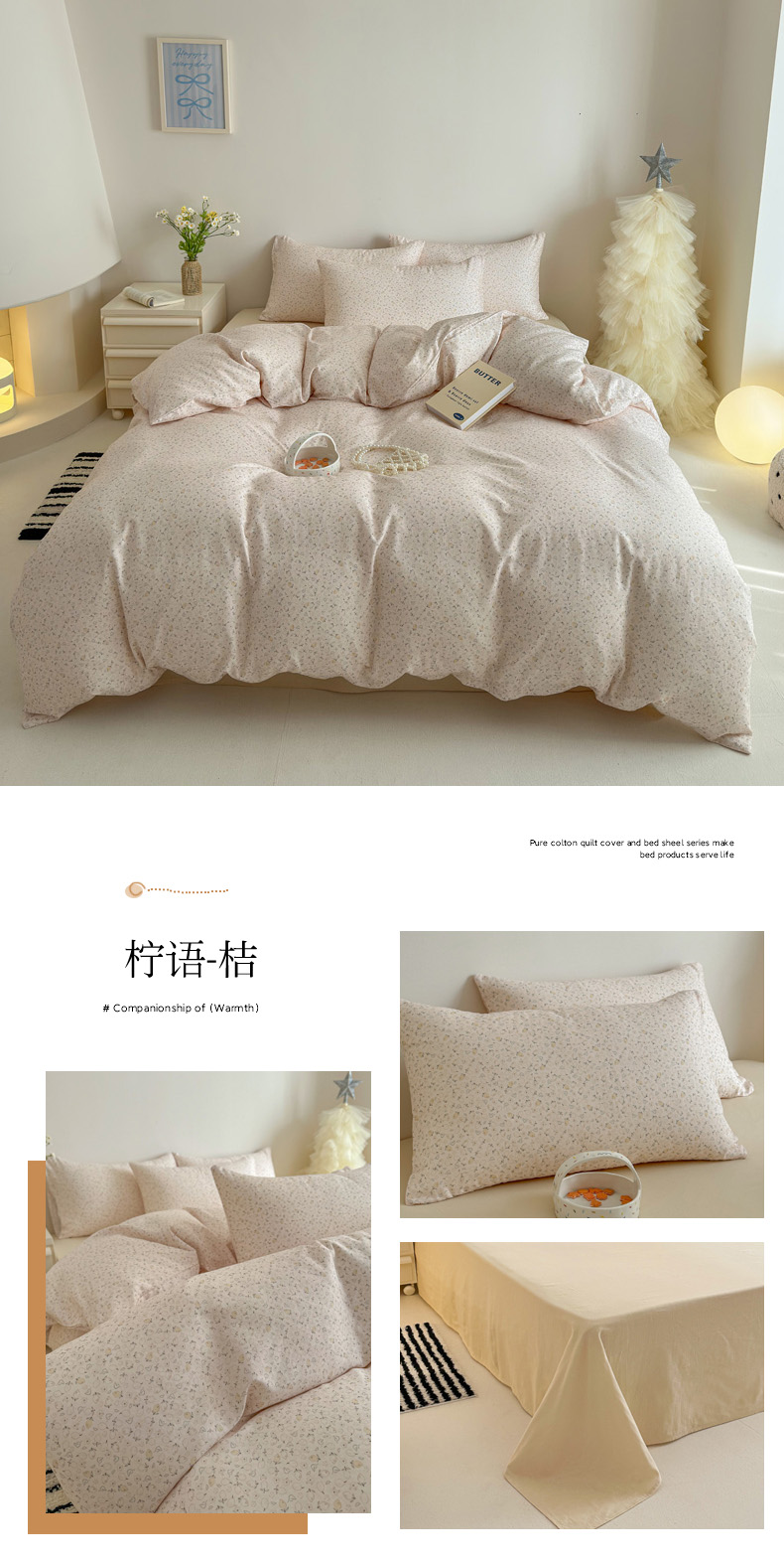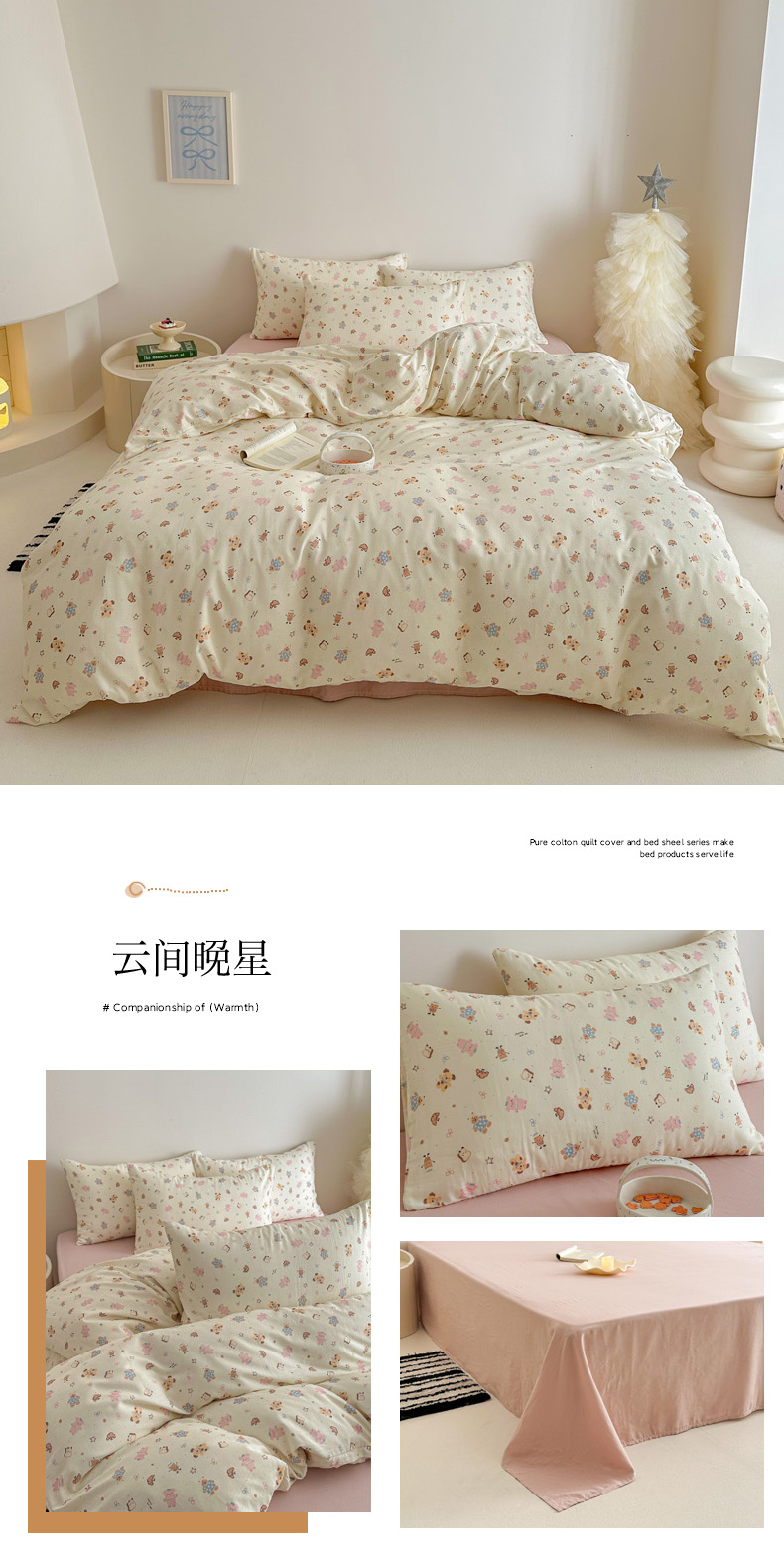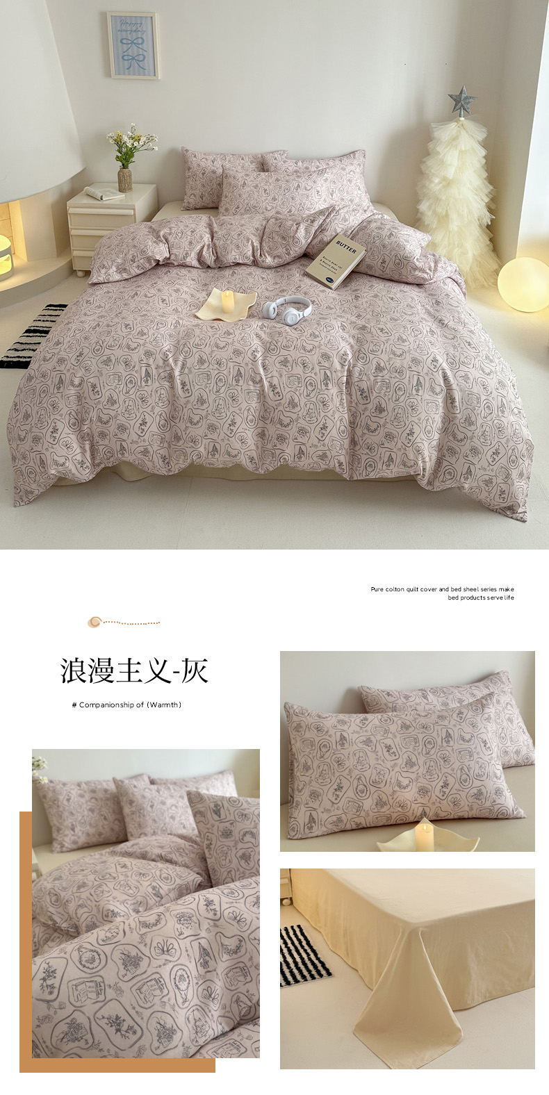 商品名称:2025新款全棉有氧A类母婴级双层纱印花四件套 拾秋-咖
