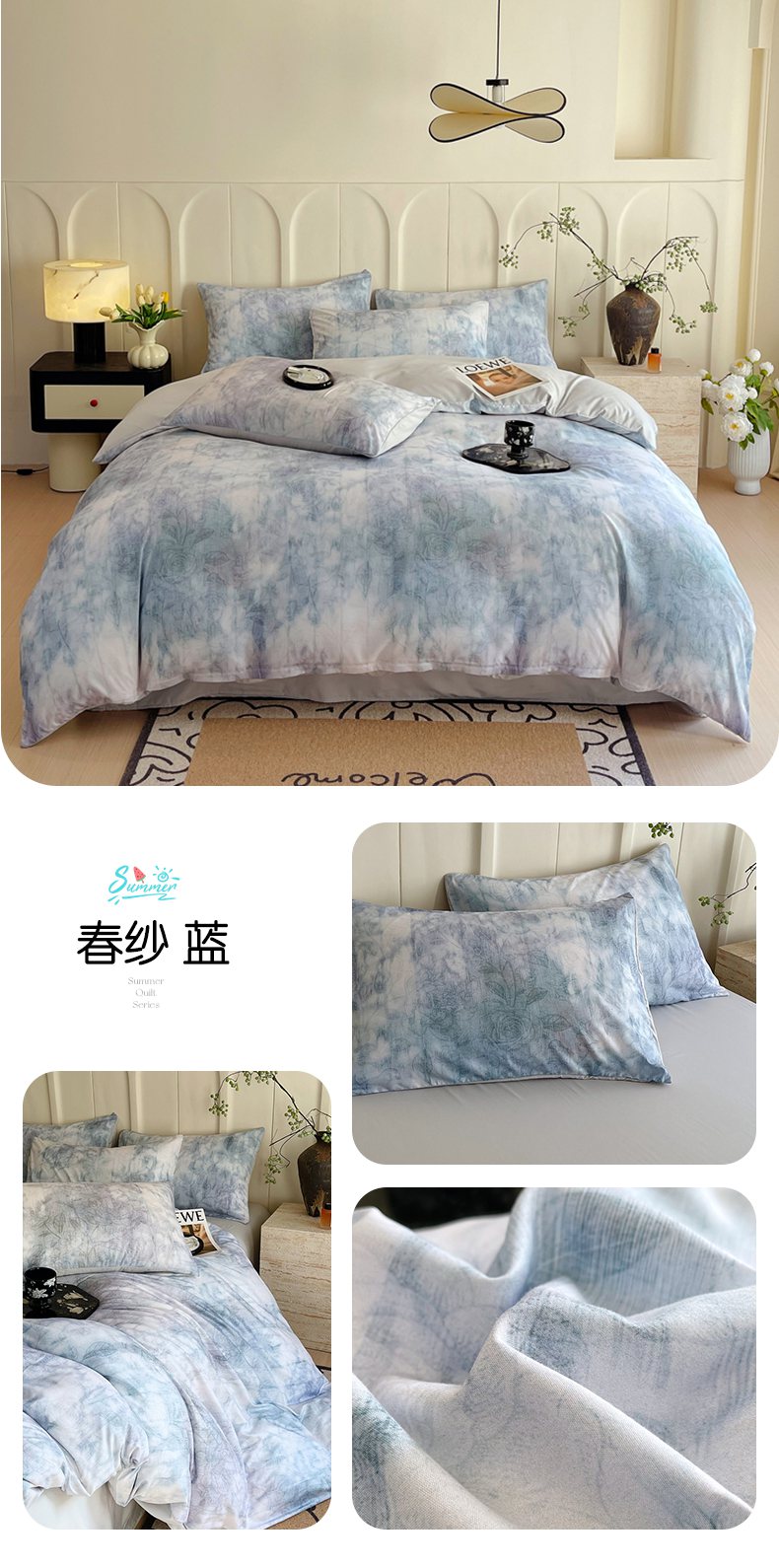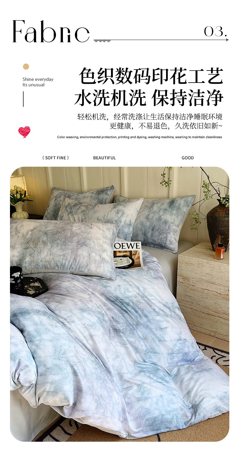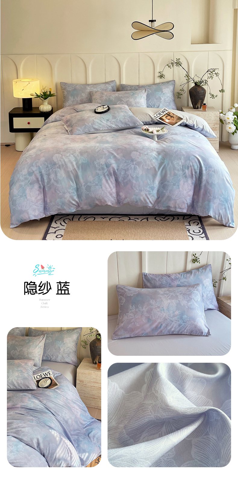 2025新款仿色织提花数码印花水洗棉四件套 隐纱 蓝