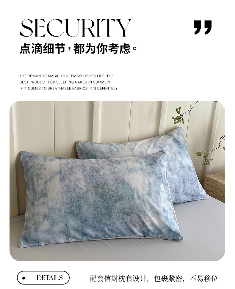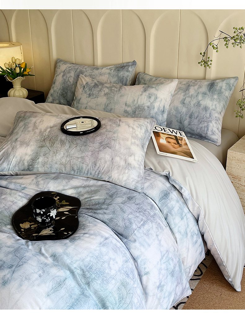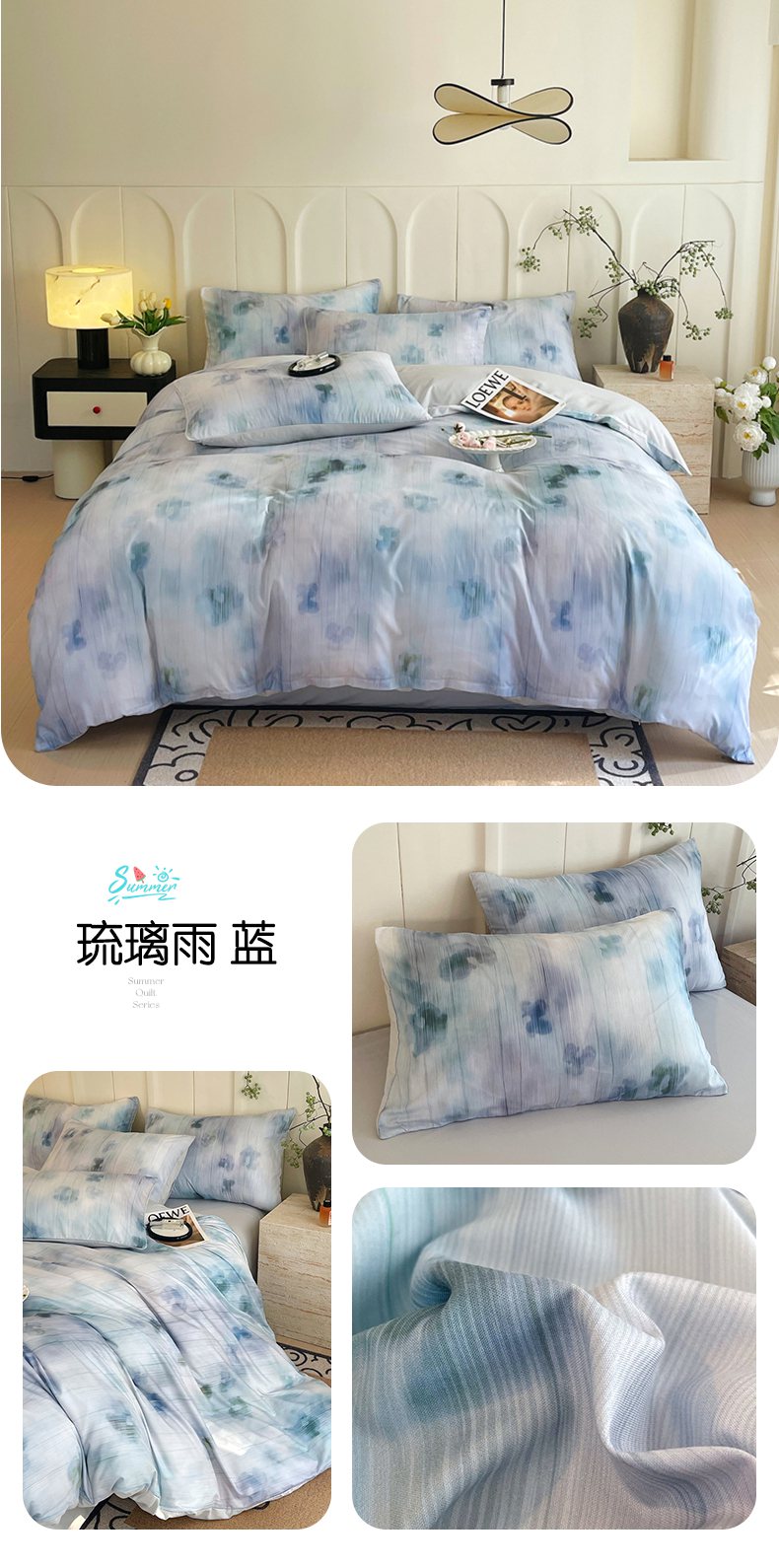 2025新款仿色织提花数码印花水洗棉四件套 隐纱 蓝