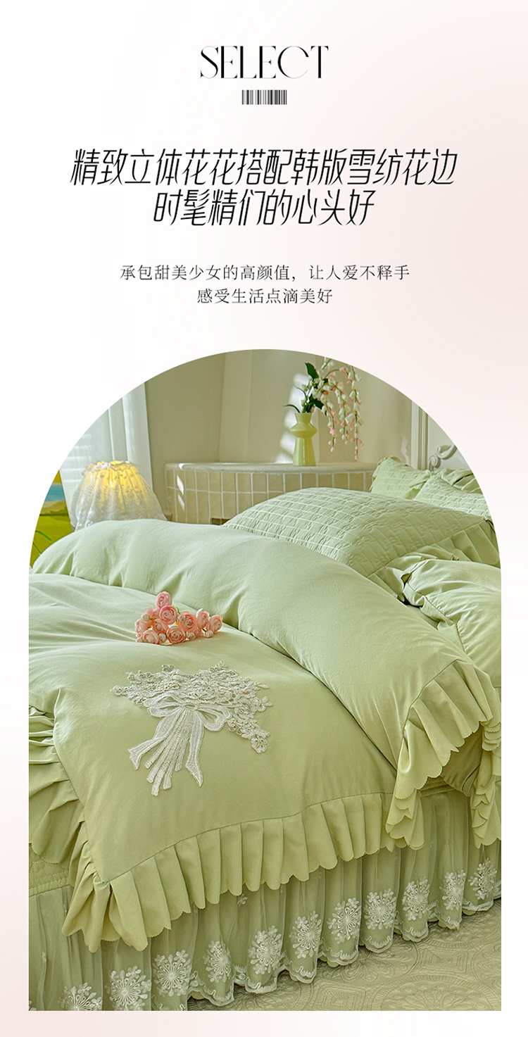 (总)漫布云 2025新款230g高克重韩版立体盘花牛奶蚕丝绒绣花四件套床裙款被套-洛丽塔系列,洛丽塔-嫩黄 ,洛丽塔-香芋紫 , 洛丽塔-珍珠粉,洛丽塔-婴儿蓝