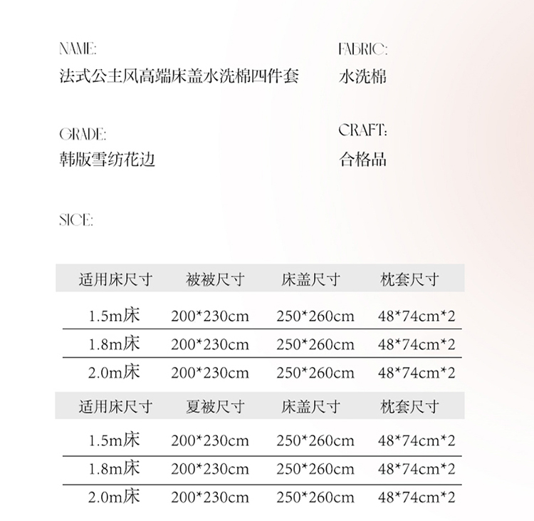 商品名称:苏米娜家纺2025春夏新品韩版甜美公主风超柔水洗棉床盖四件套刺绣针织棉双层纱纯棉棉麻全棉少女心夹棉床裙款夏被款床盖 花夕-樱花粉