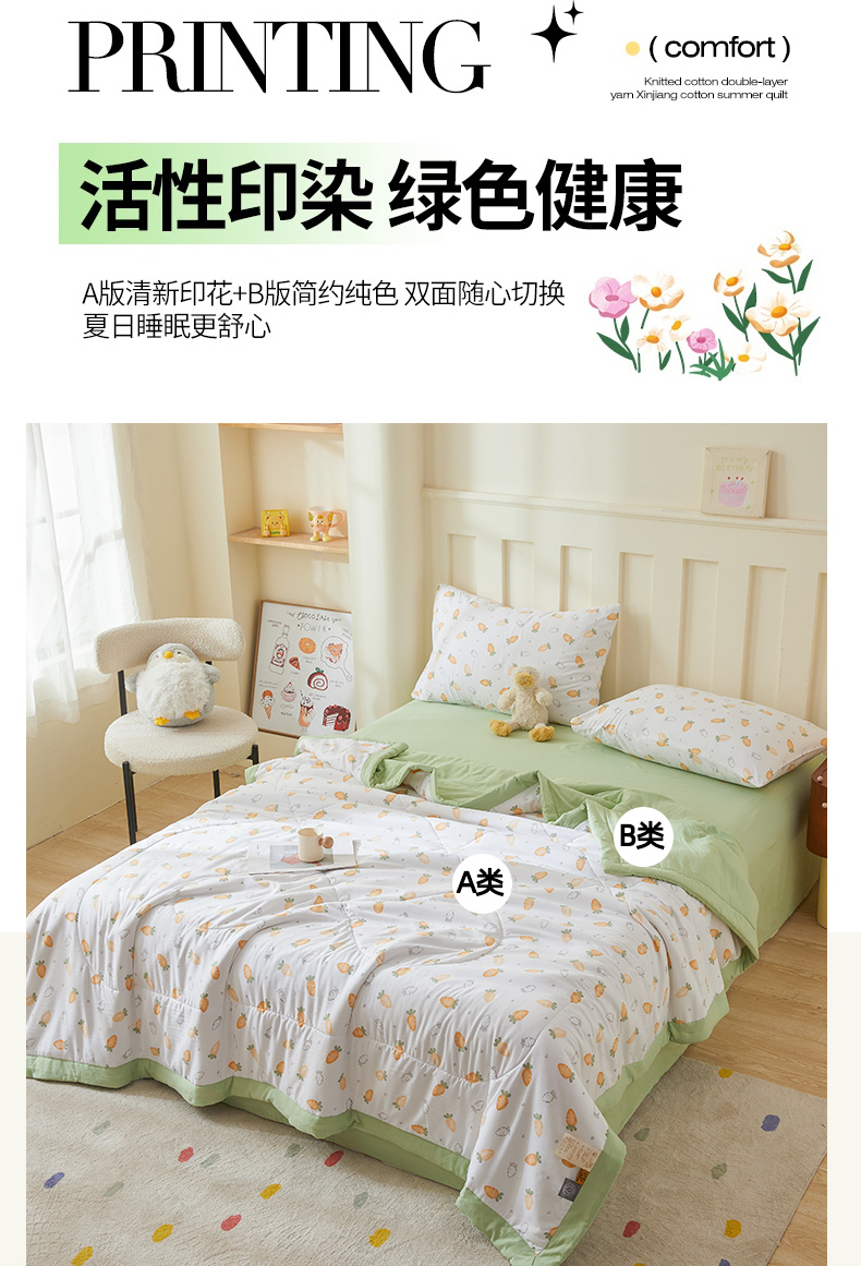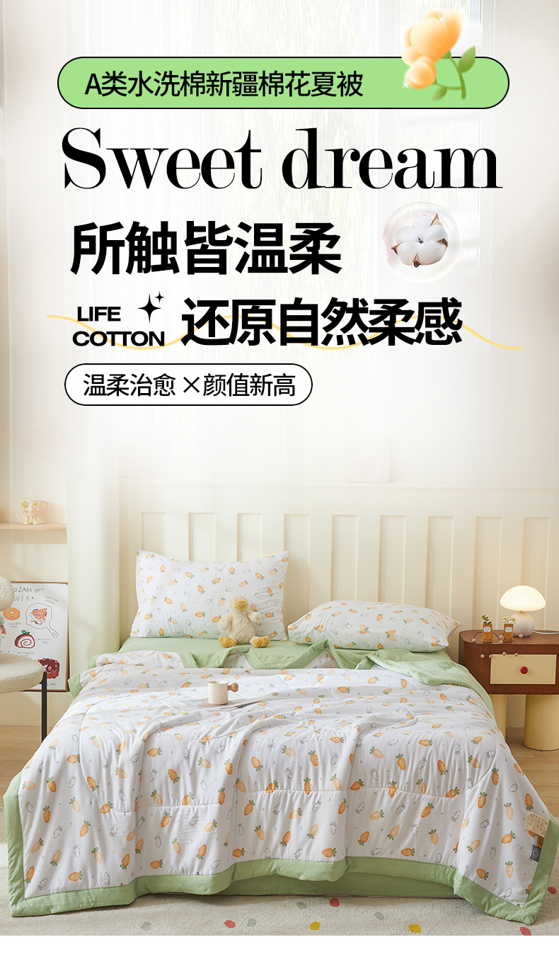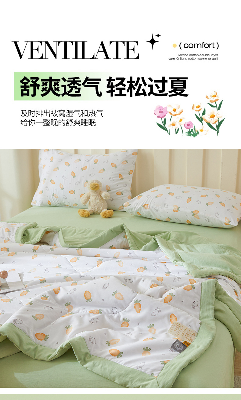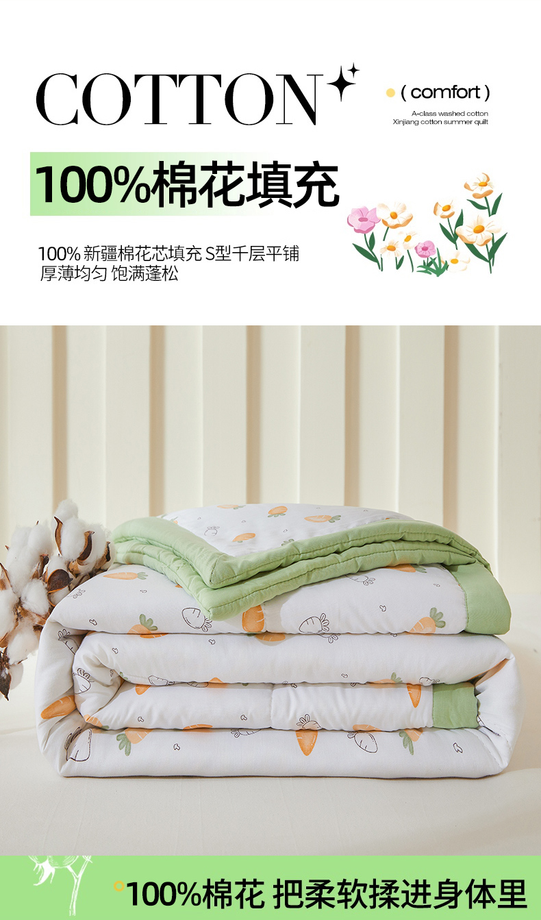 商品名称:2025新款小花款新疆棉花夏被【棉花含量100%】夏季空调被薄被子可机洗夏凉被 胡萝卜