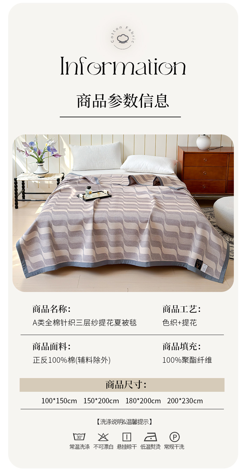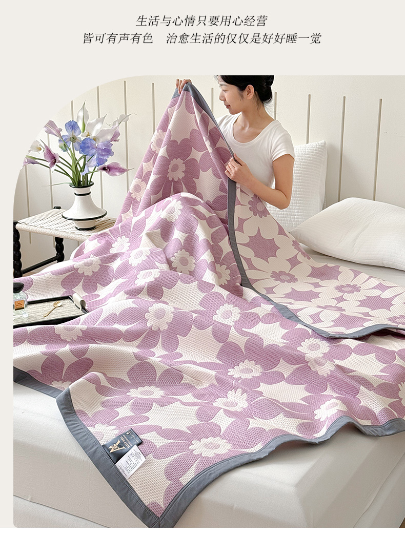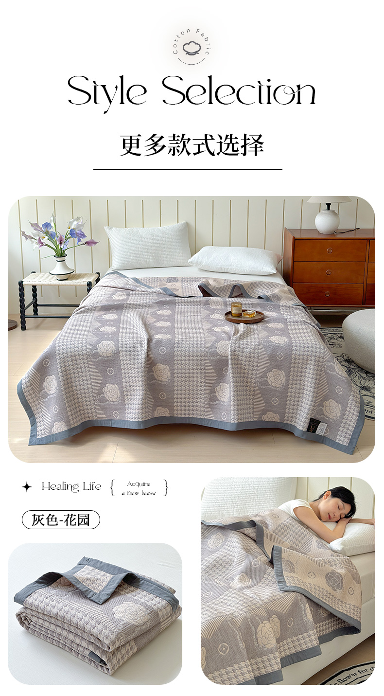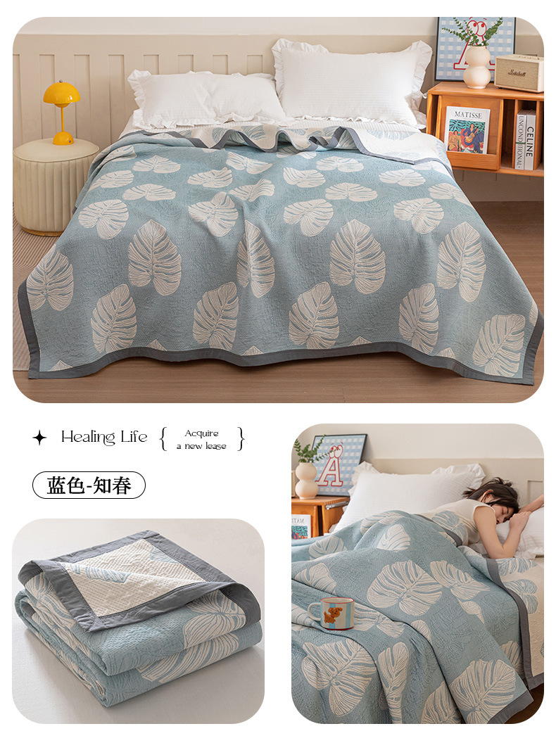 (总)2025新款A类纯棉针织三层纱提花多功能毯