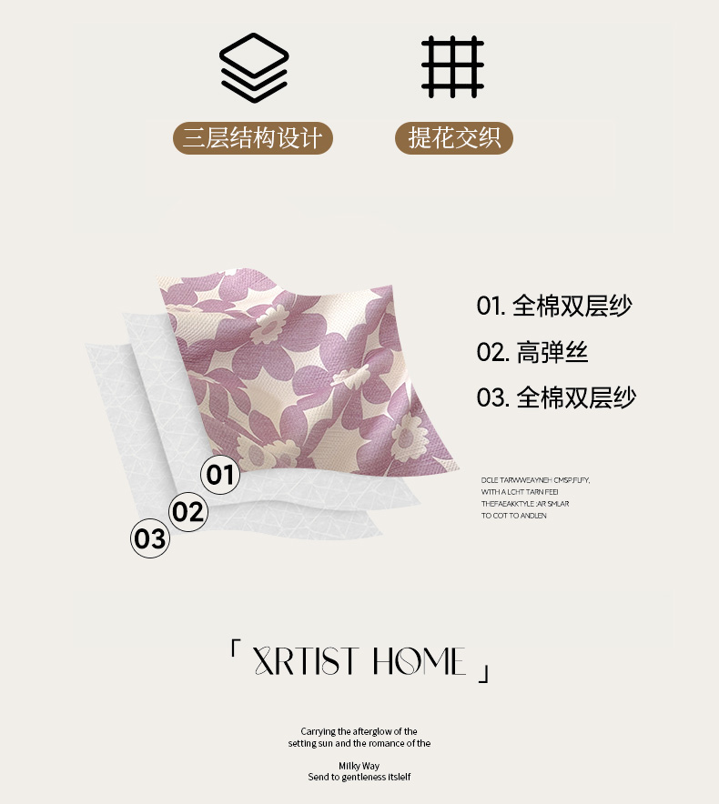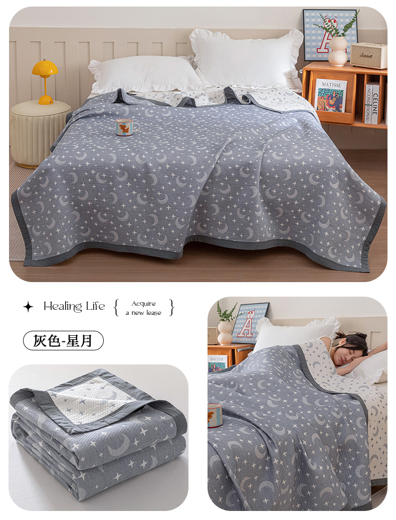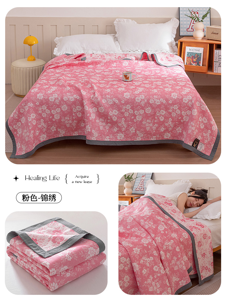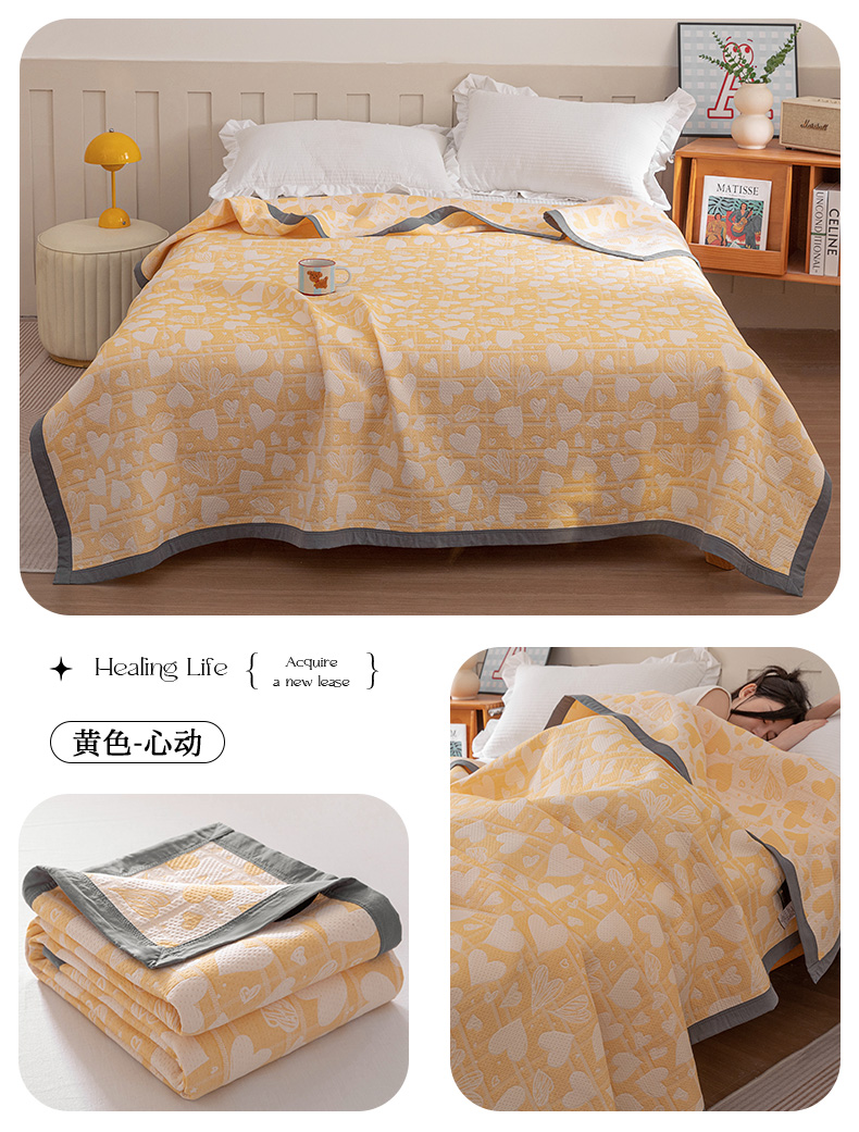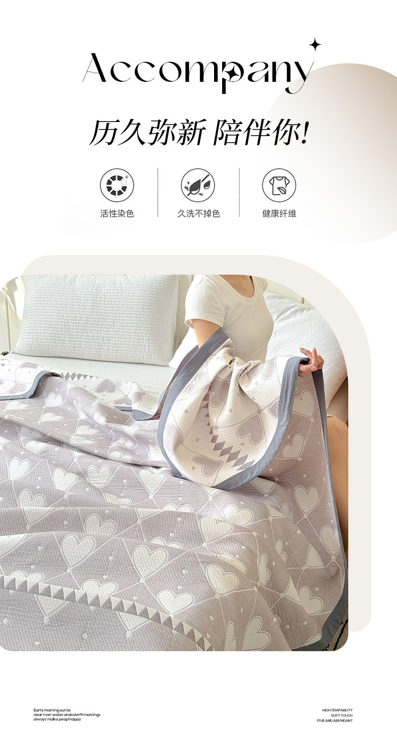 (总)2025新款A类纯棉针织三层纱提花多功能毯