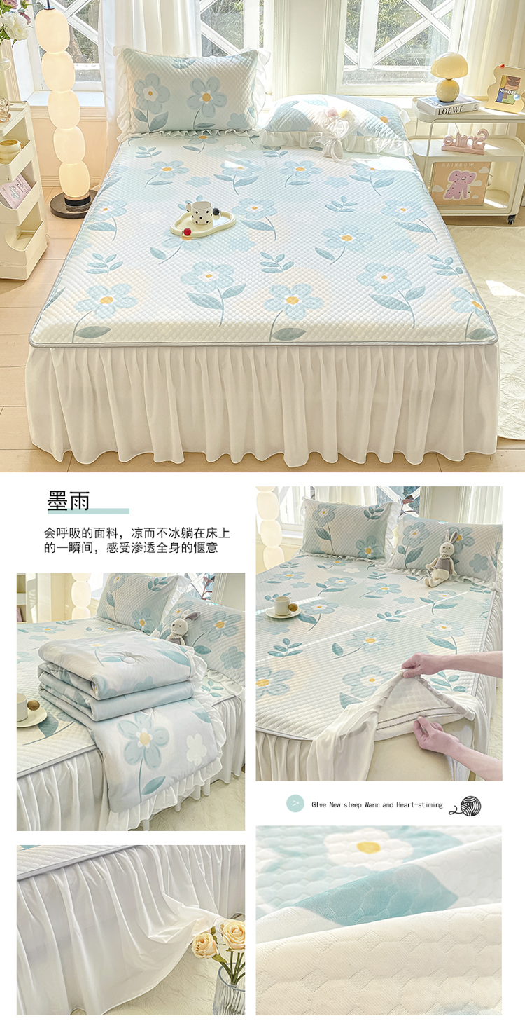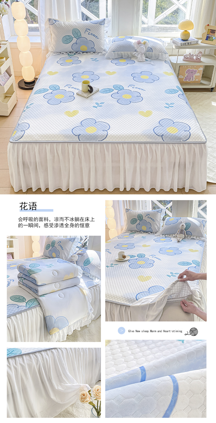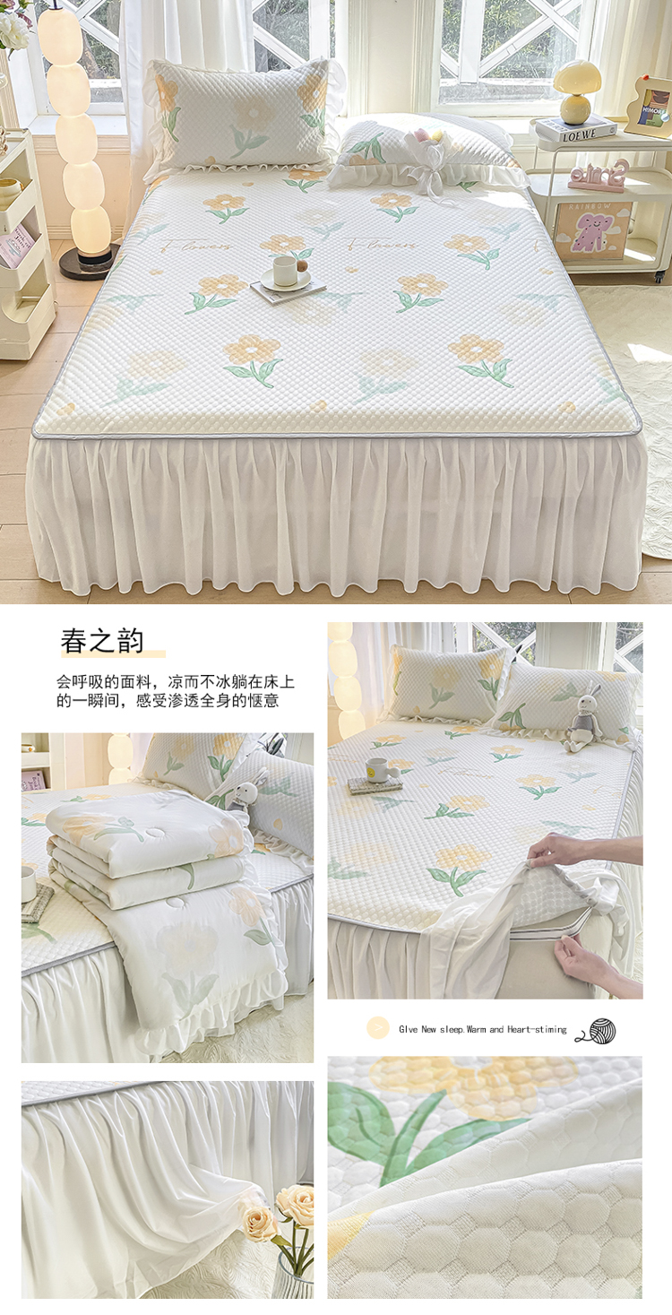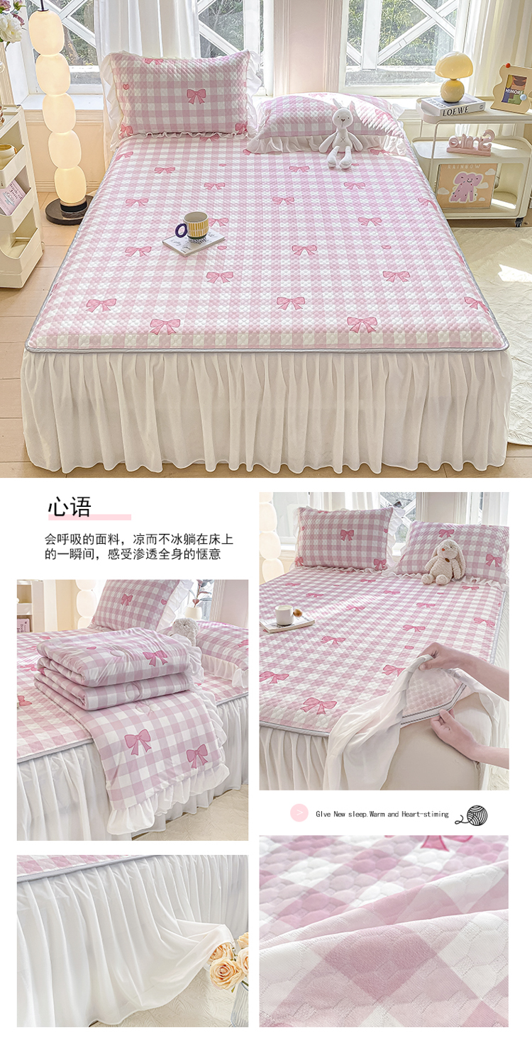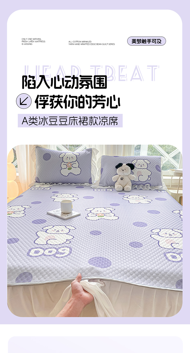 商品名称:(总)康纳利2025新款A类冰豆豆床裙款凉席夏被四件套凉感丝空调被送买家秀