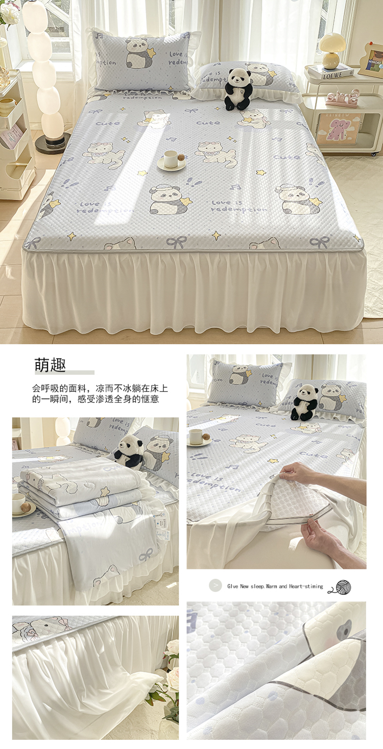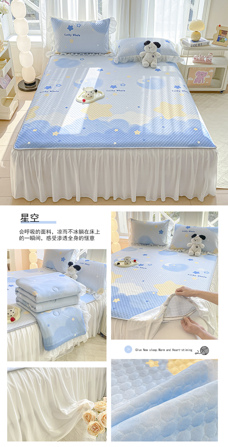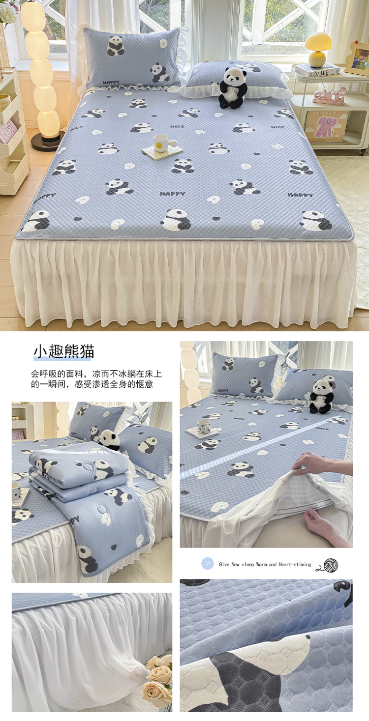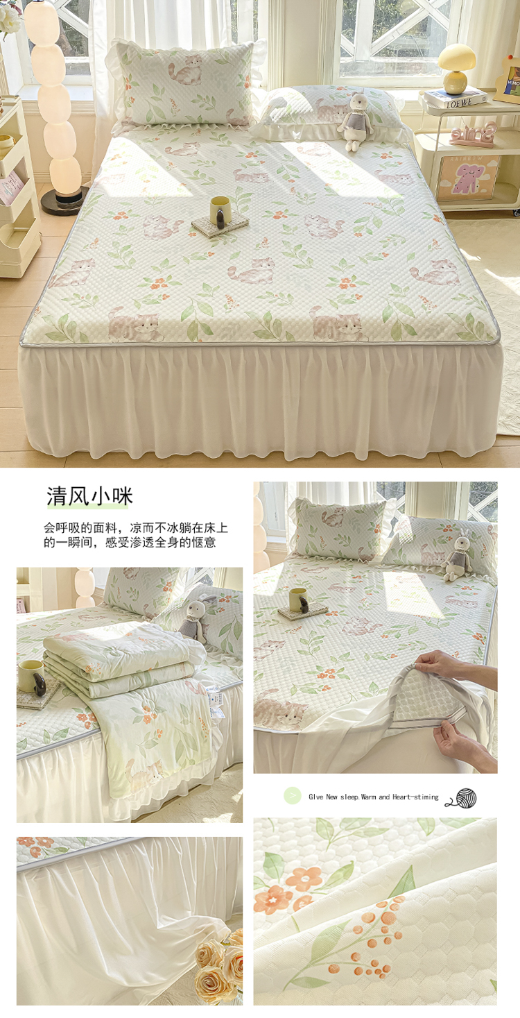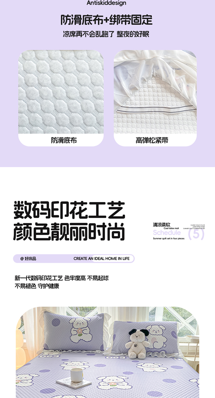 商品名称:(总)康纳利2025新款A类冰豆豆床裙款凉席夏被四件套凉感丝空调被送买家秀