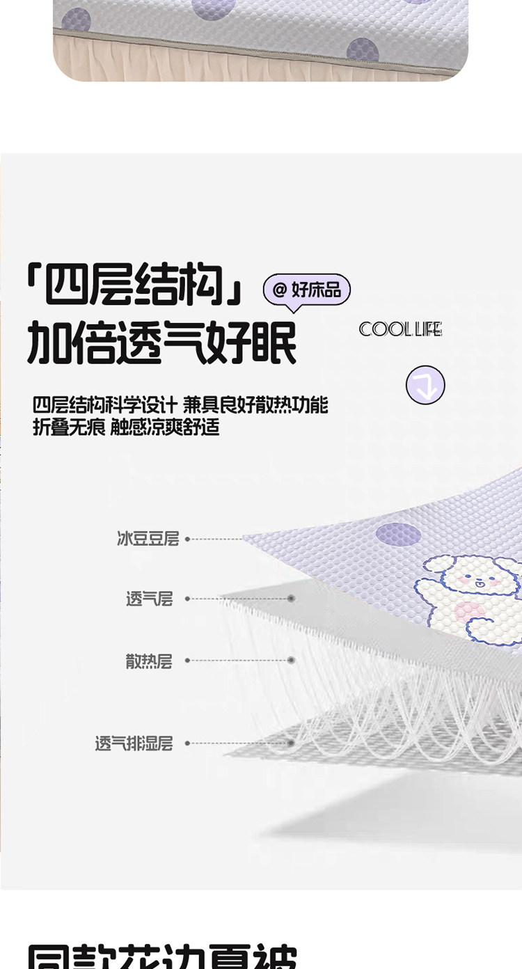 (总)康纳利2025新款A类冰豆豆床裙款凉席夏被四件套凉感丝空调被送买家秀