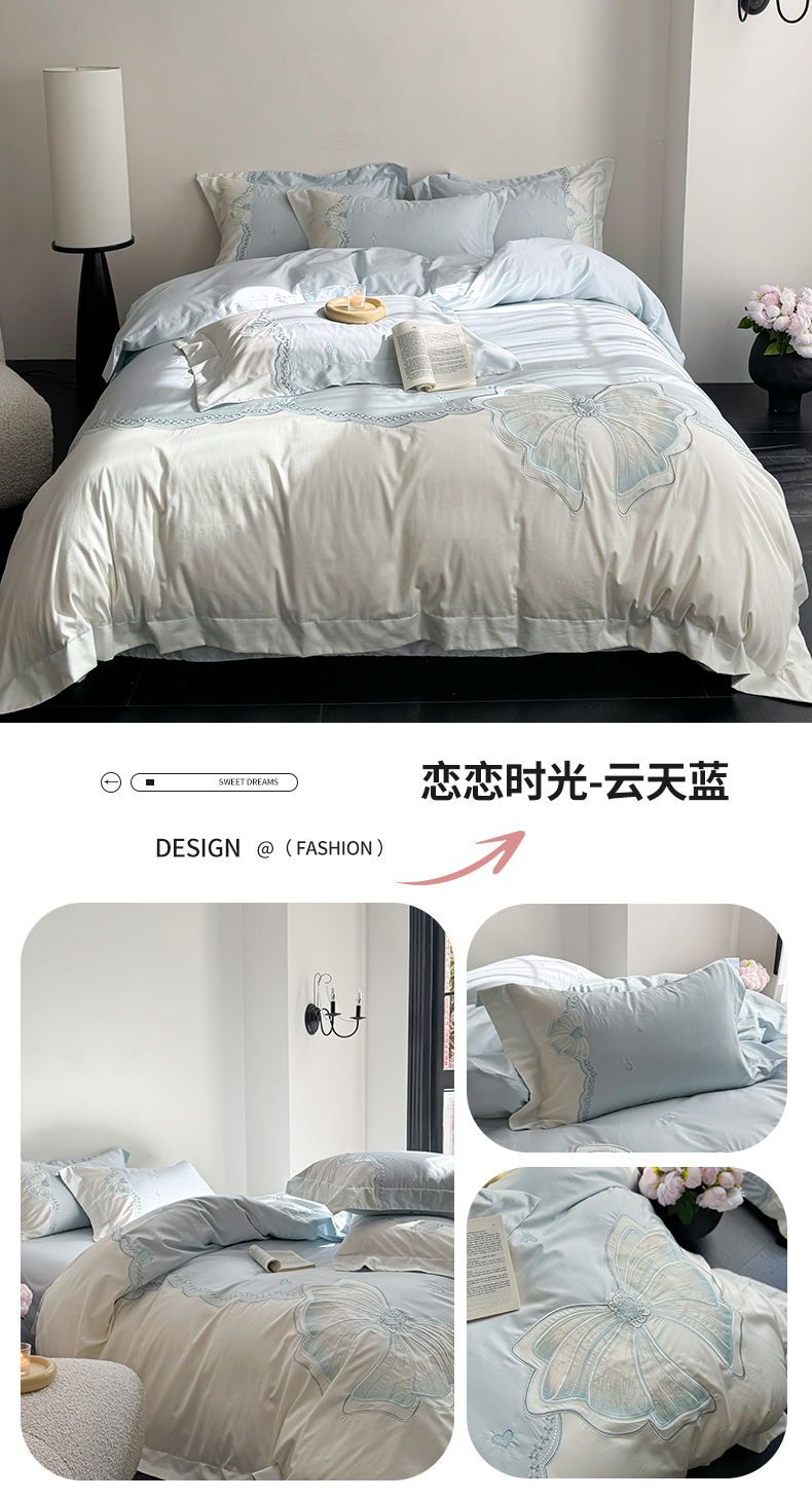 商品名称:优悦生活馆 2025新款全棉新疆长绒棉四件套-恋恋时光 控价 恋恋时光-云天蓝