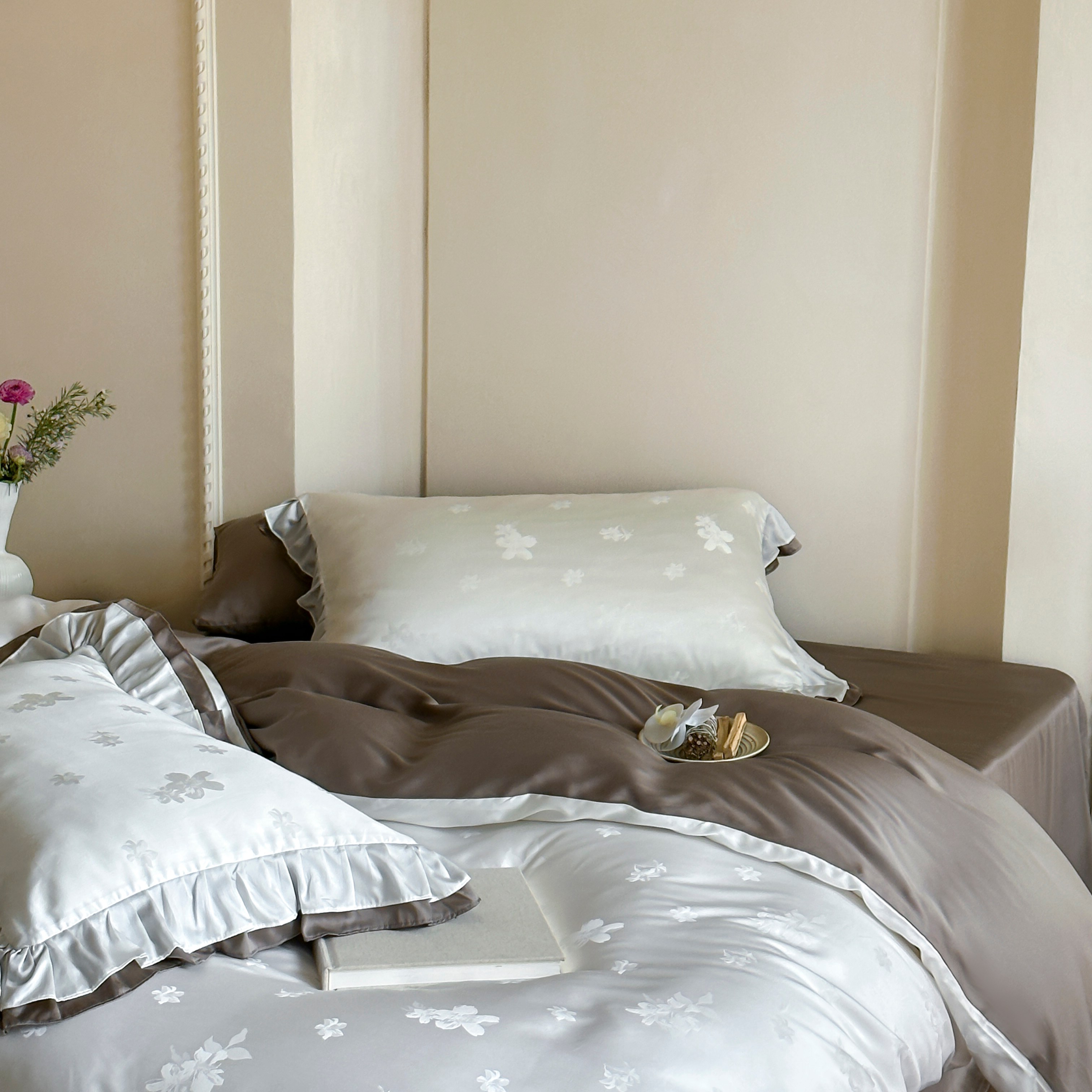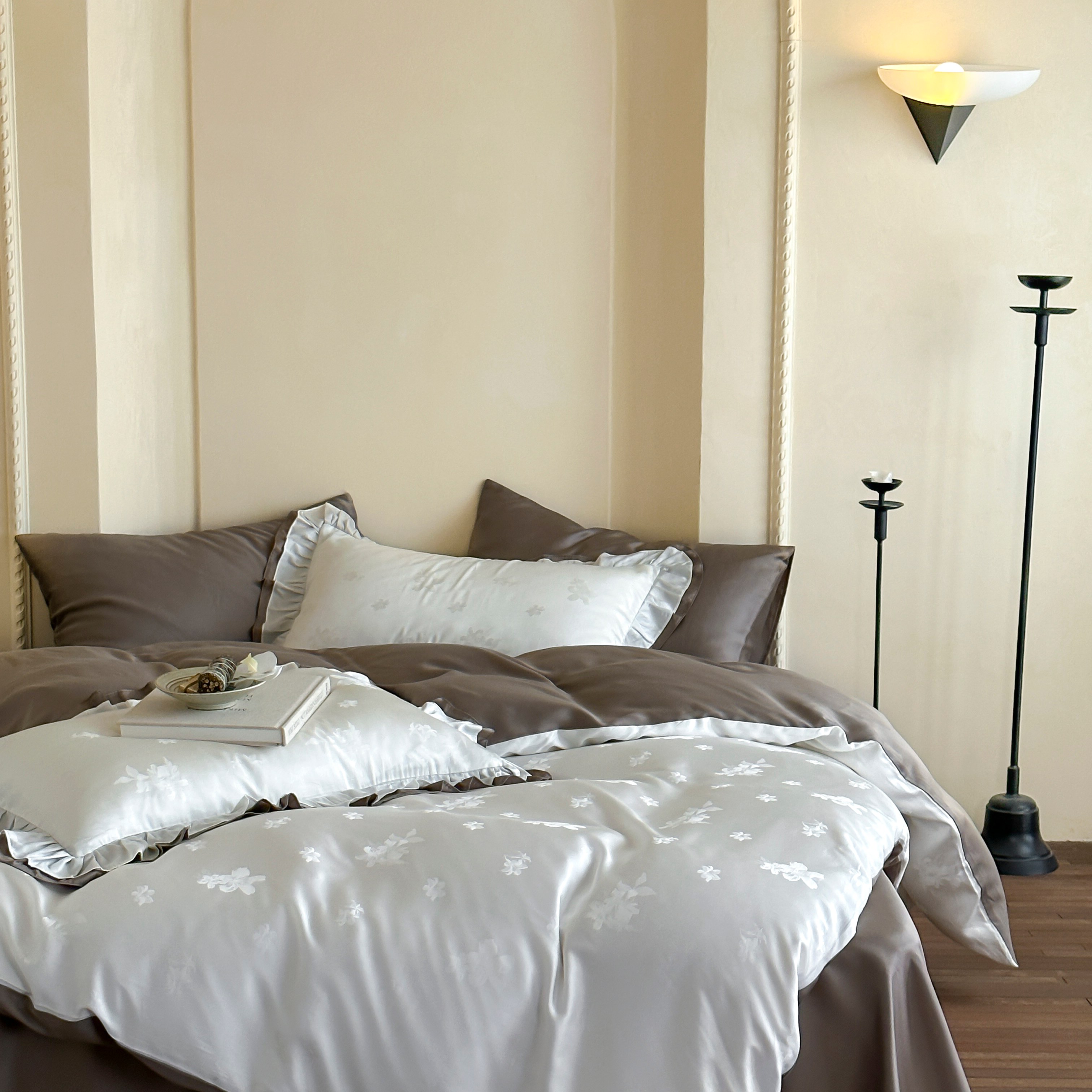 玉宇阁 2025新款60S进口兰精天丝印花大提花工艺四件套-莫莫咖momocha 莫莫咖-榛子酱巧