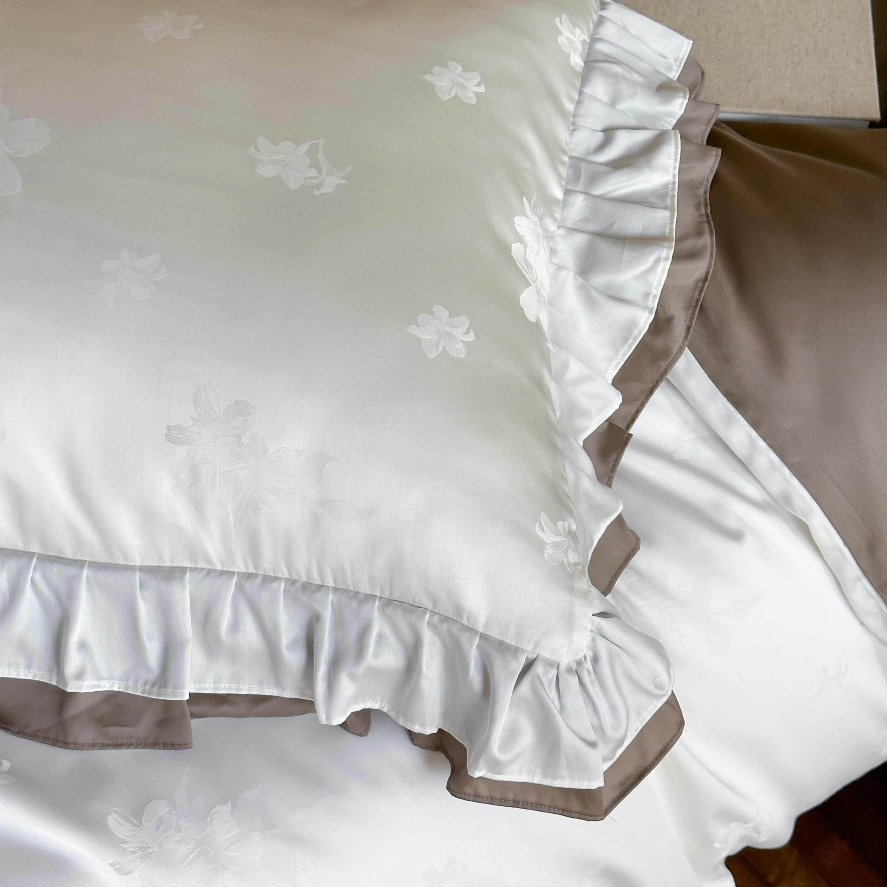 商品名称:玉宇阁 2025新款60S进口兰精天丝印花大提花工艺四件套-莫莫咖momocha 莫莫咖-榛子酱巧