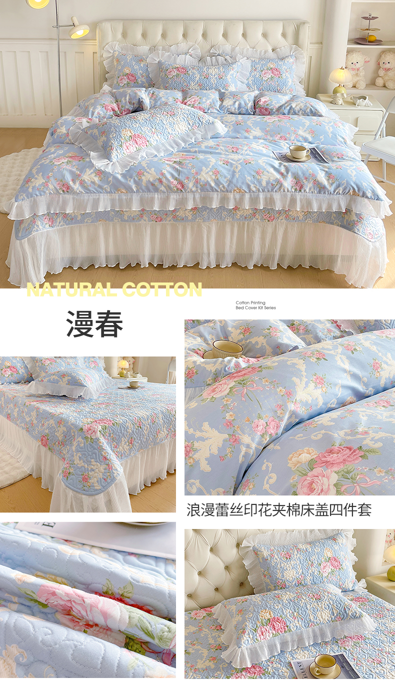 商品名称:(总)宜凡家纺2025新款雪纺花边印花夹棉床盖三件套四件套