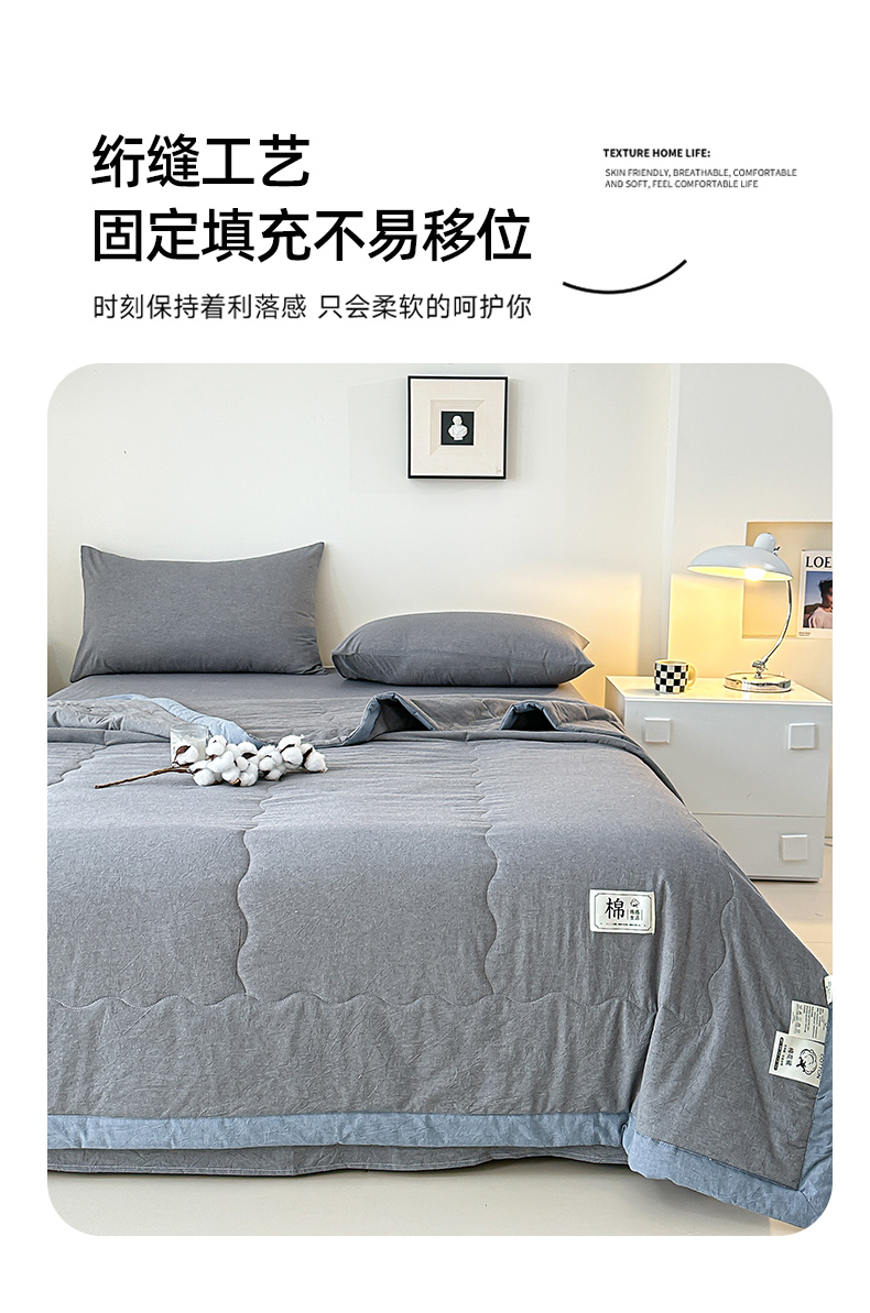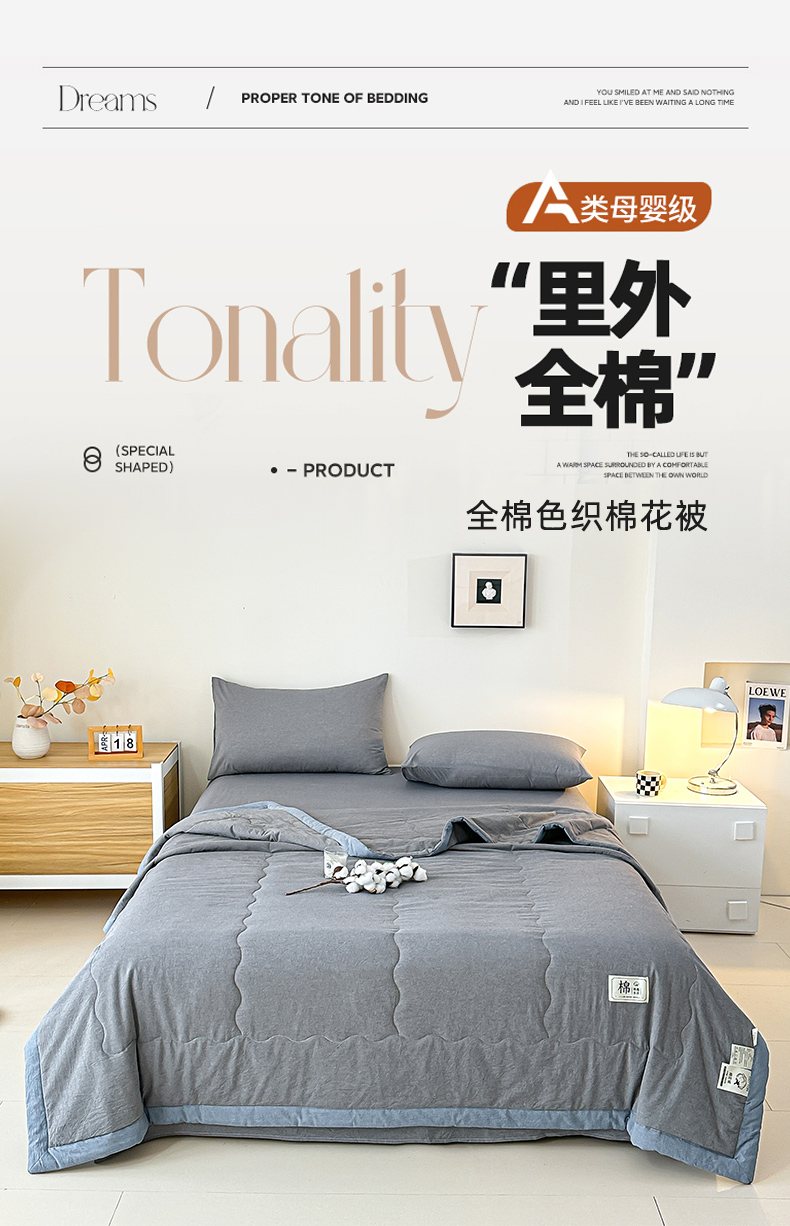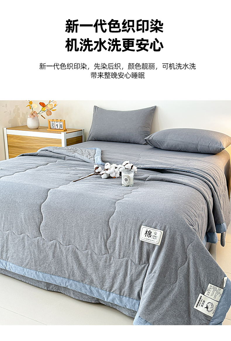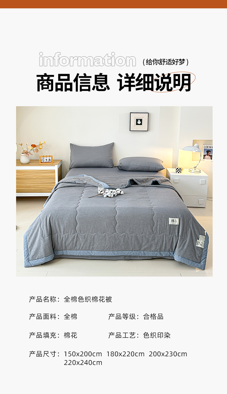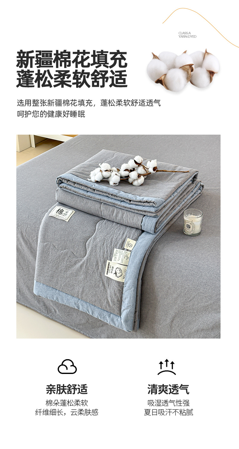 (总)圣尔雅 2025新款里外全棉色织夏被新疆棉花被纯棉被子空调被夏凉被,黛蓝,粉玉,卡其,墨绿,奶白,星灰