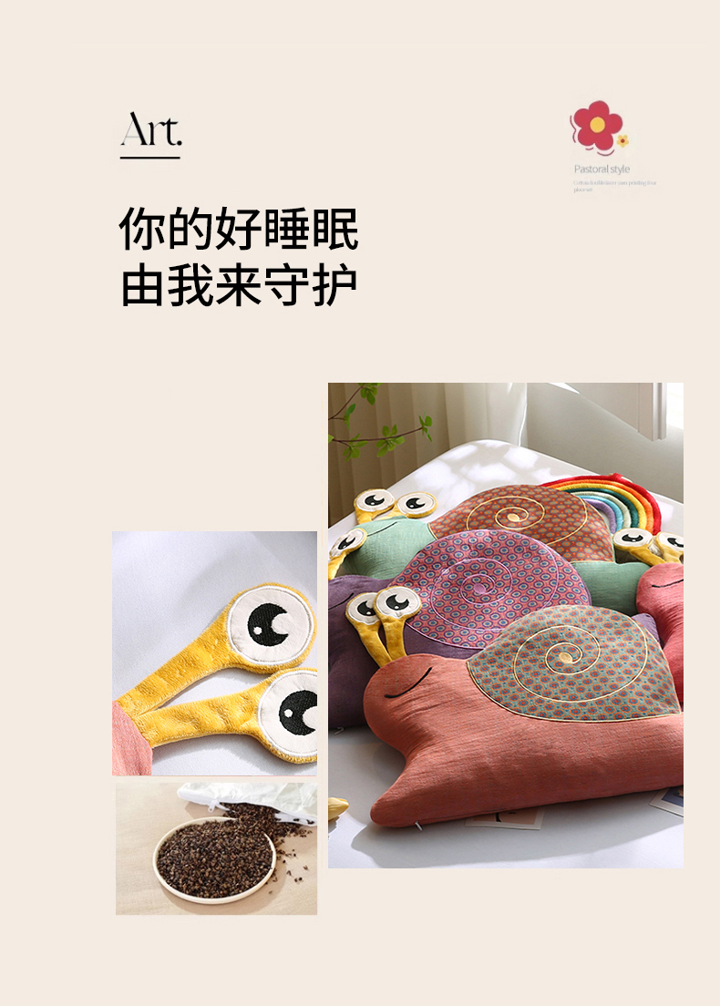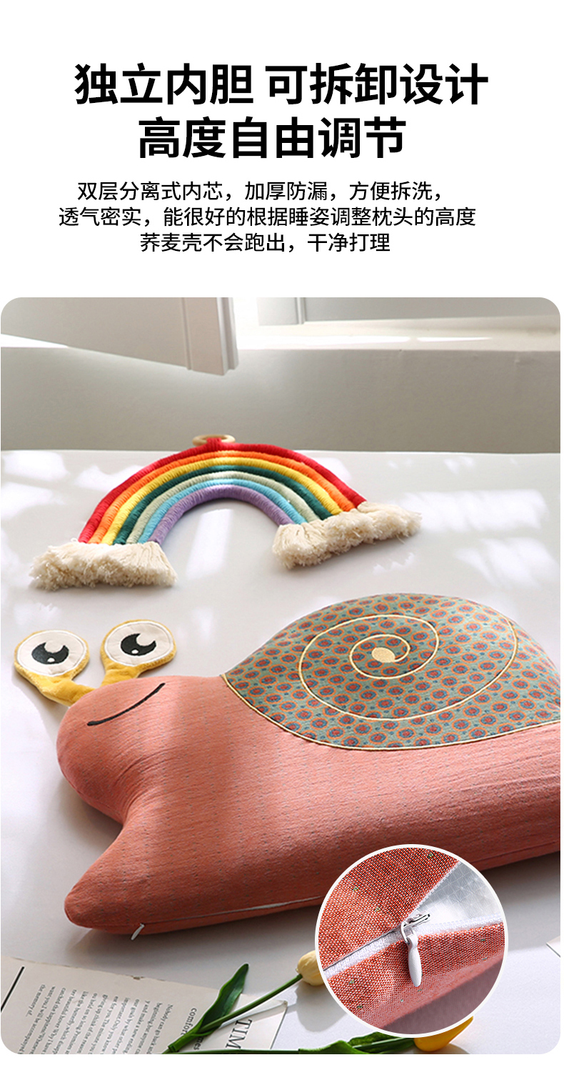 商品名称:(总)蔻眠 2025圆点蜗牛-全棉双层纱卡通儿童荞麦枕芯成人枕头