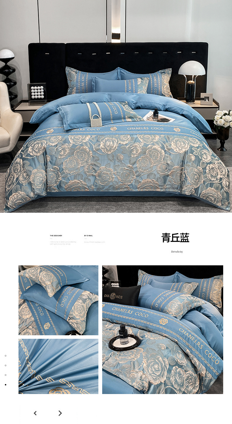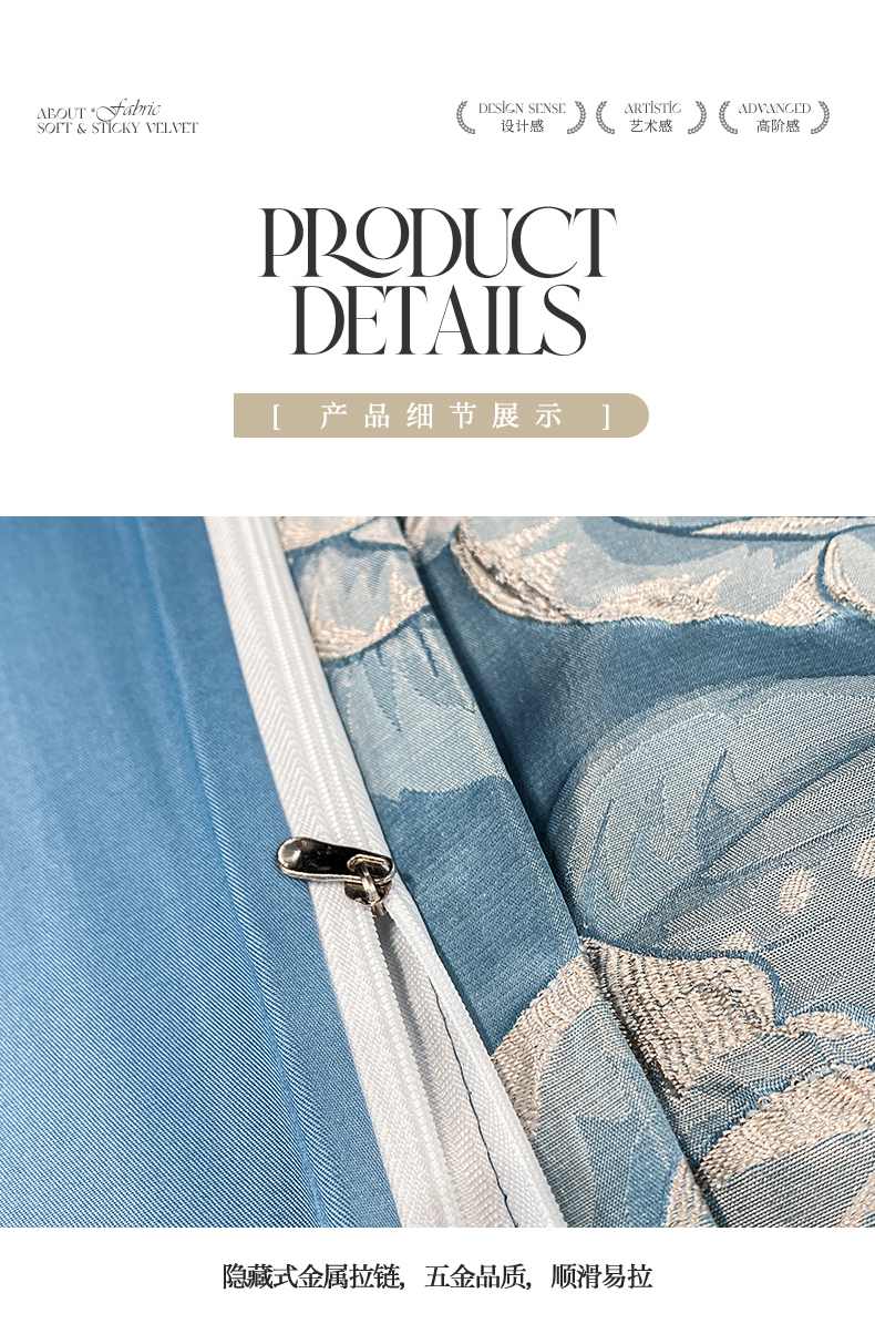 商品名称:(总)富宁2025新款浮雕金丝提花刺绣夏被四件套-恋花
