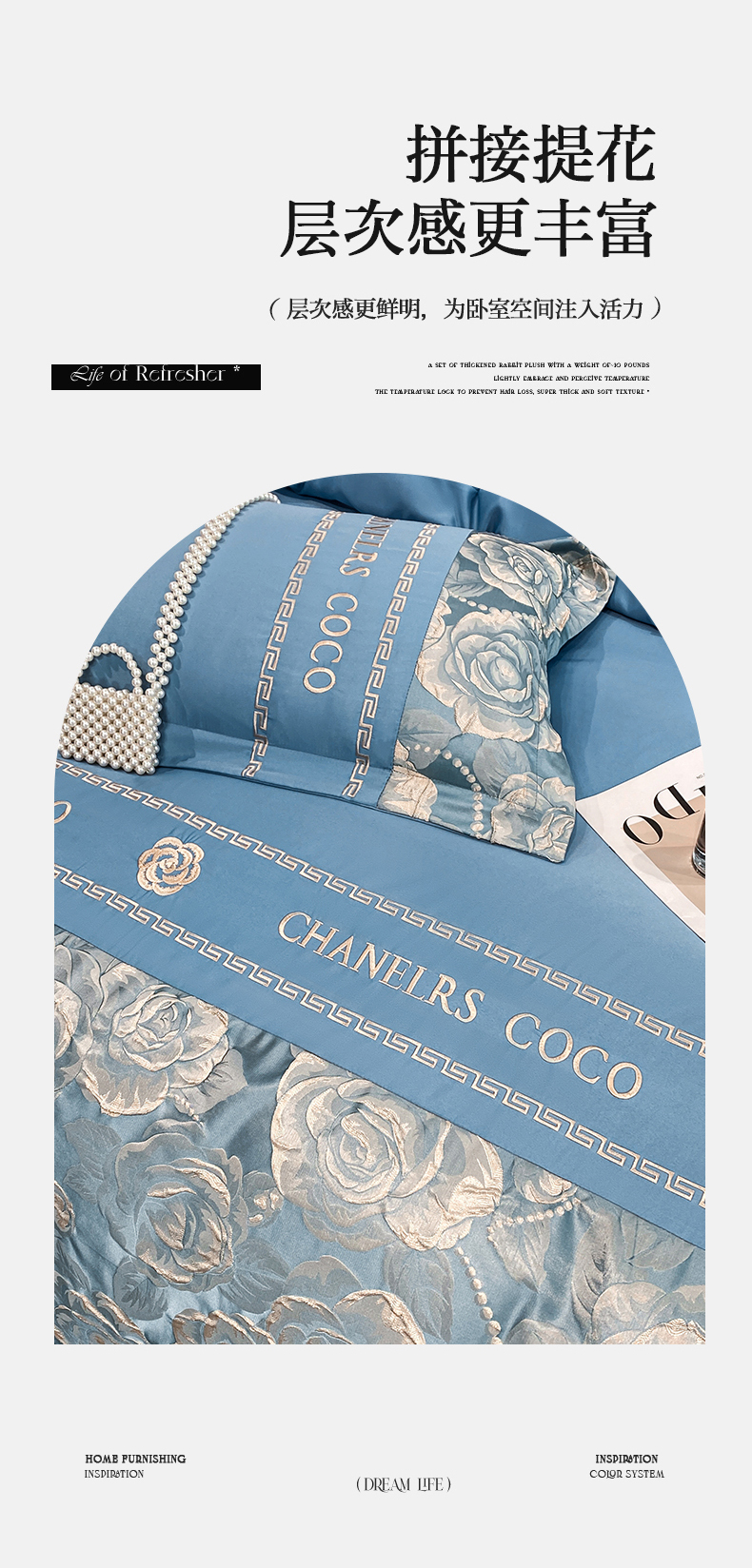 (总)富宁2025新款浮雕金丝提花刺绣夏被四件套-恋花
