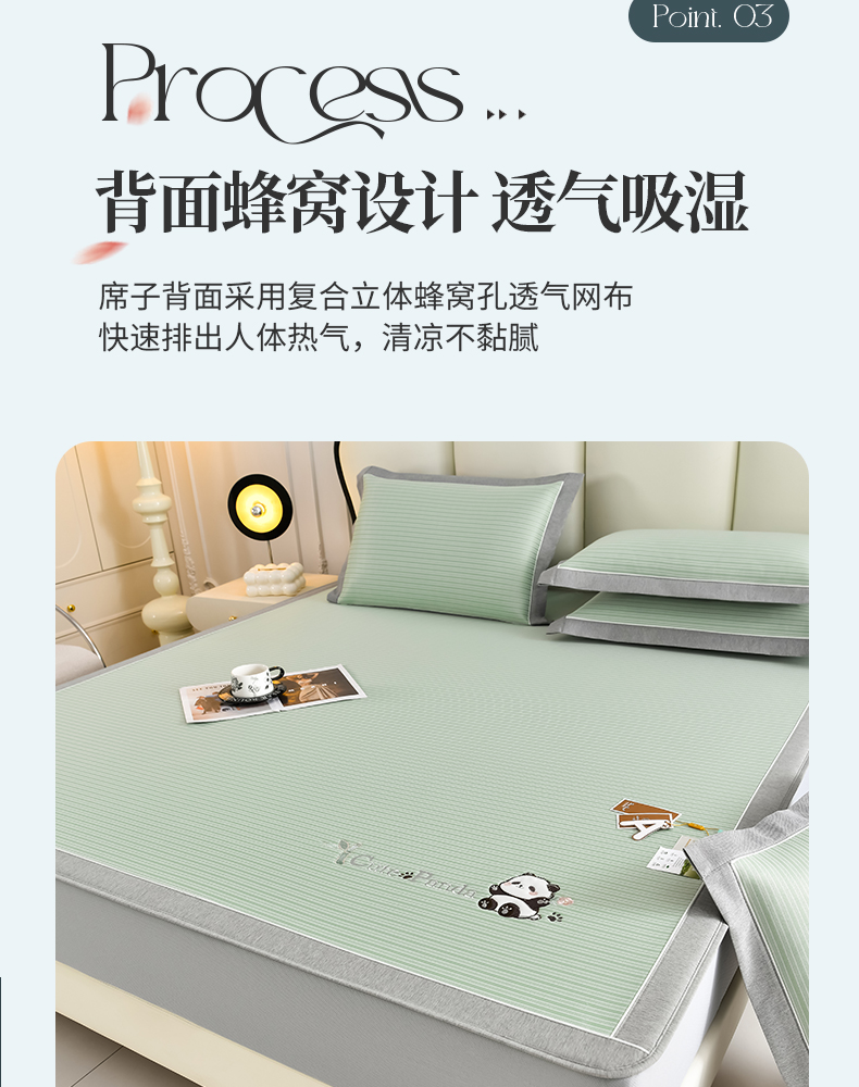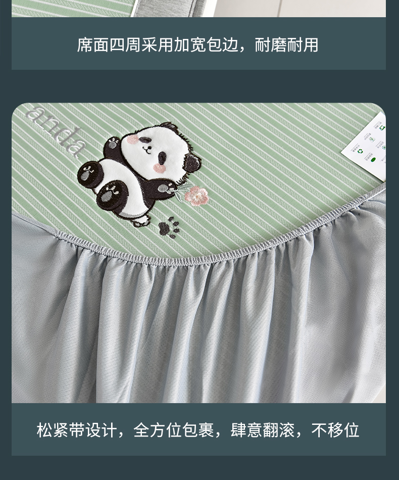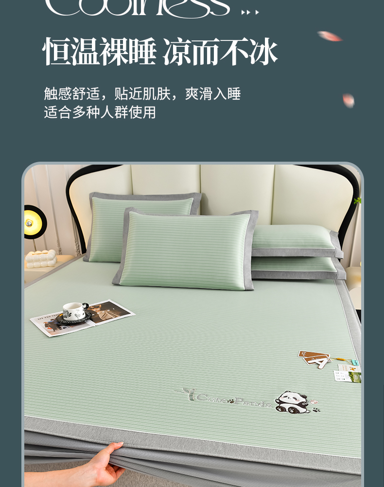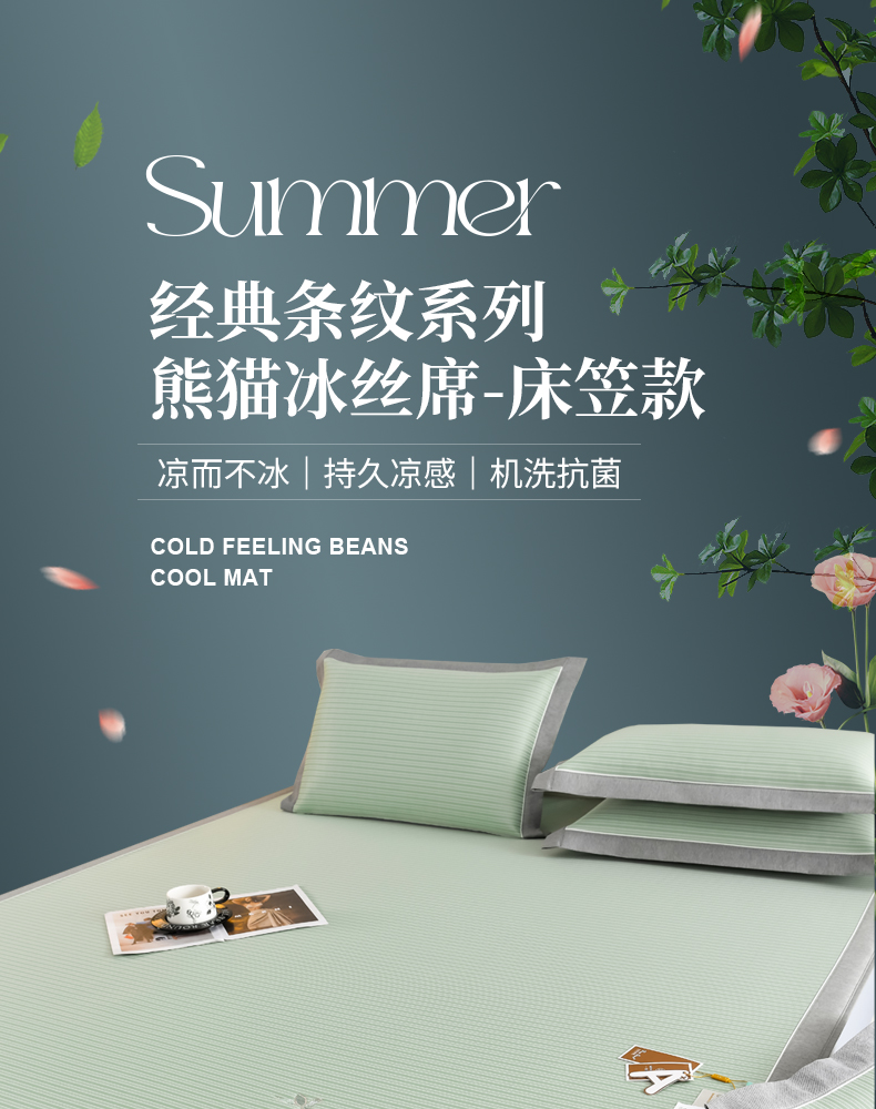 小牛席业 2025新款PE经典条纹-熊猫凉感冰丝席系列(床笠款) 绿色