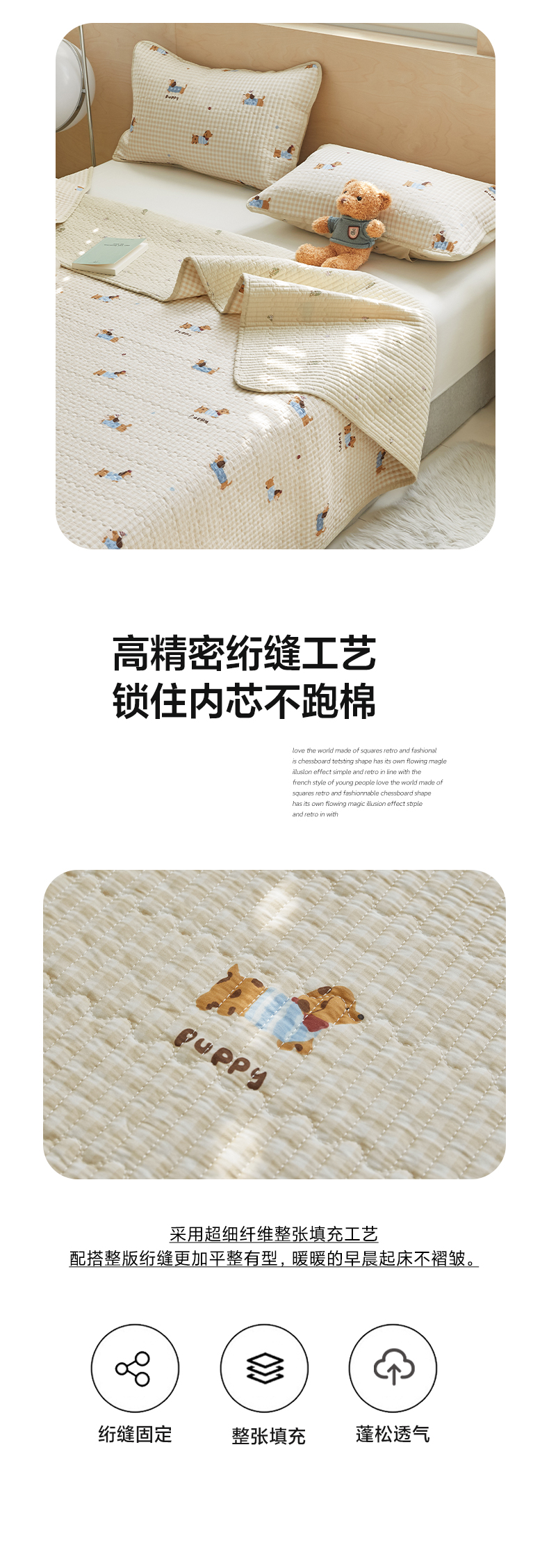 商品名称:舒居家纺 2025新款双面全棉酵素砂洗床盖 俏皮狗