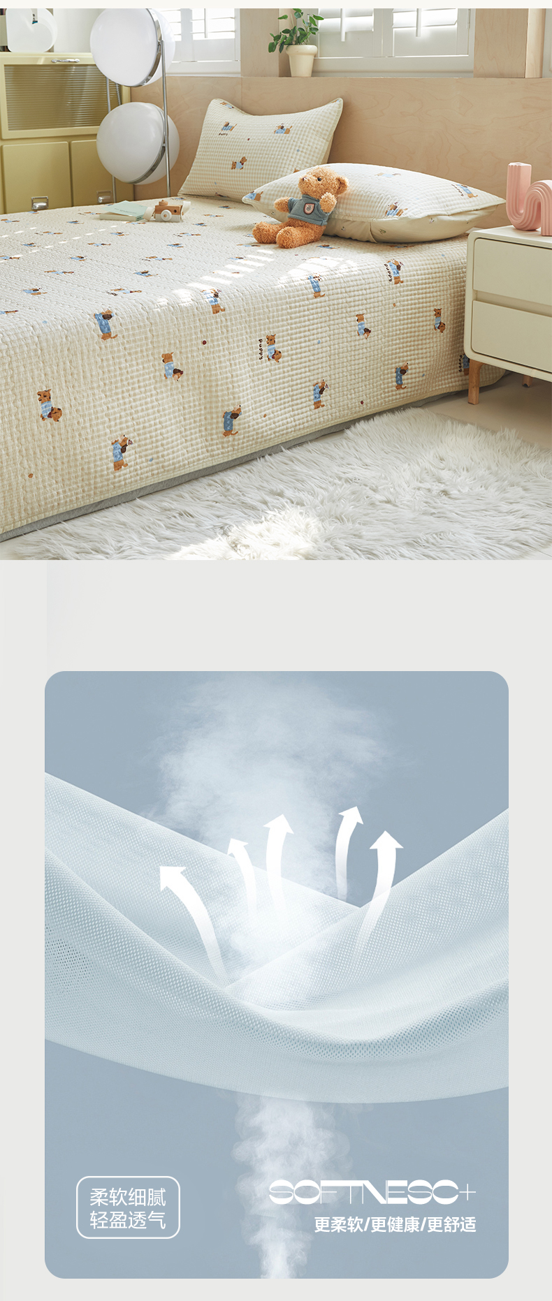 (总)舒居家纺 2025新款A类全棉双层纱花边 床盖 软床单 软床垫( 风格二),黛西,组合图,可艾兔,南瓜小贝,浅影灰,山岚绮梦,团团,小飞象,小时光粉