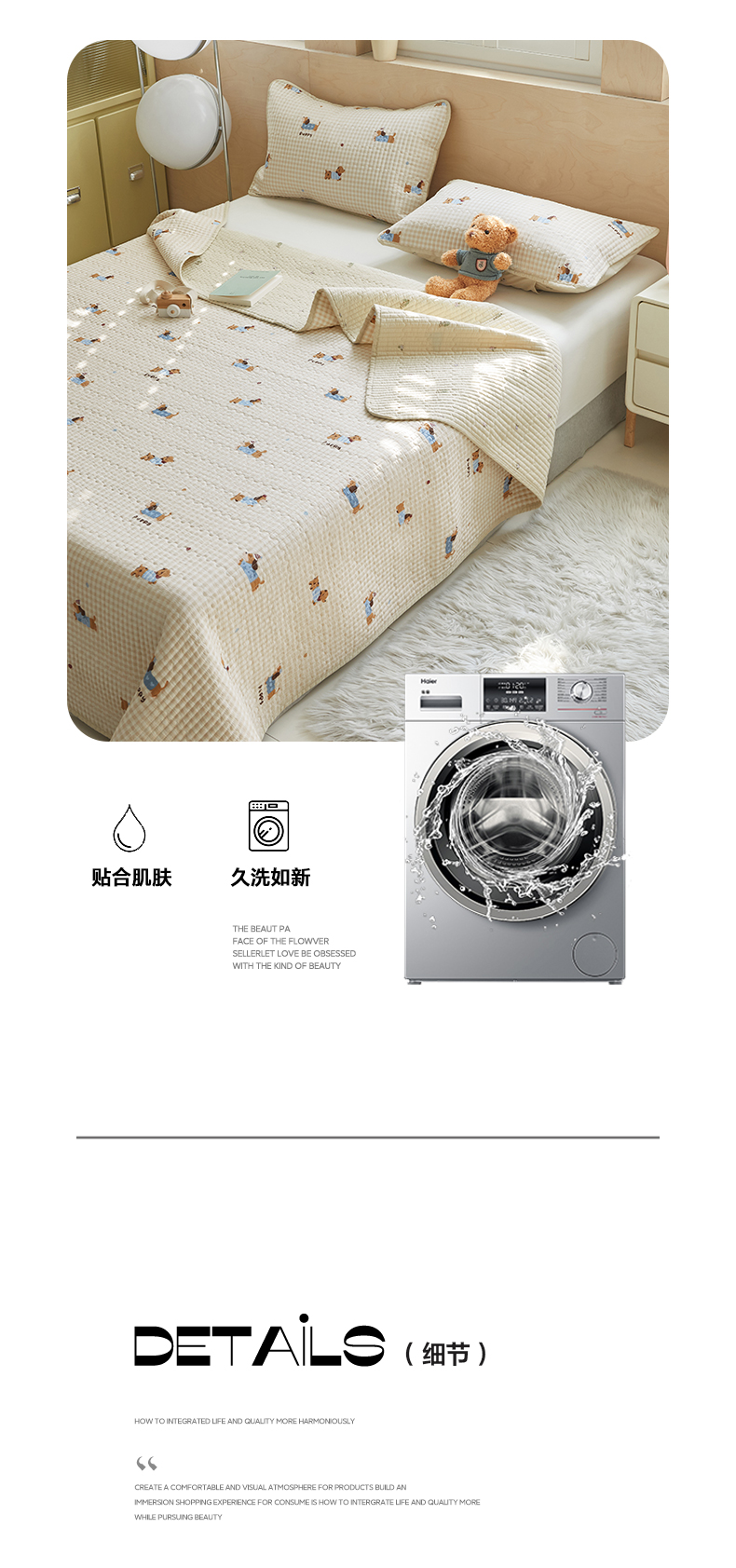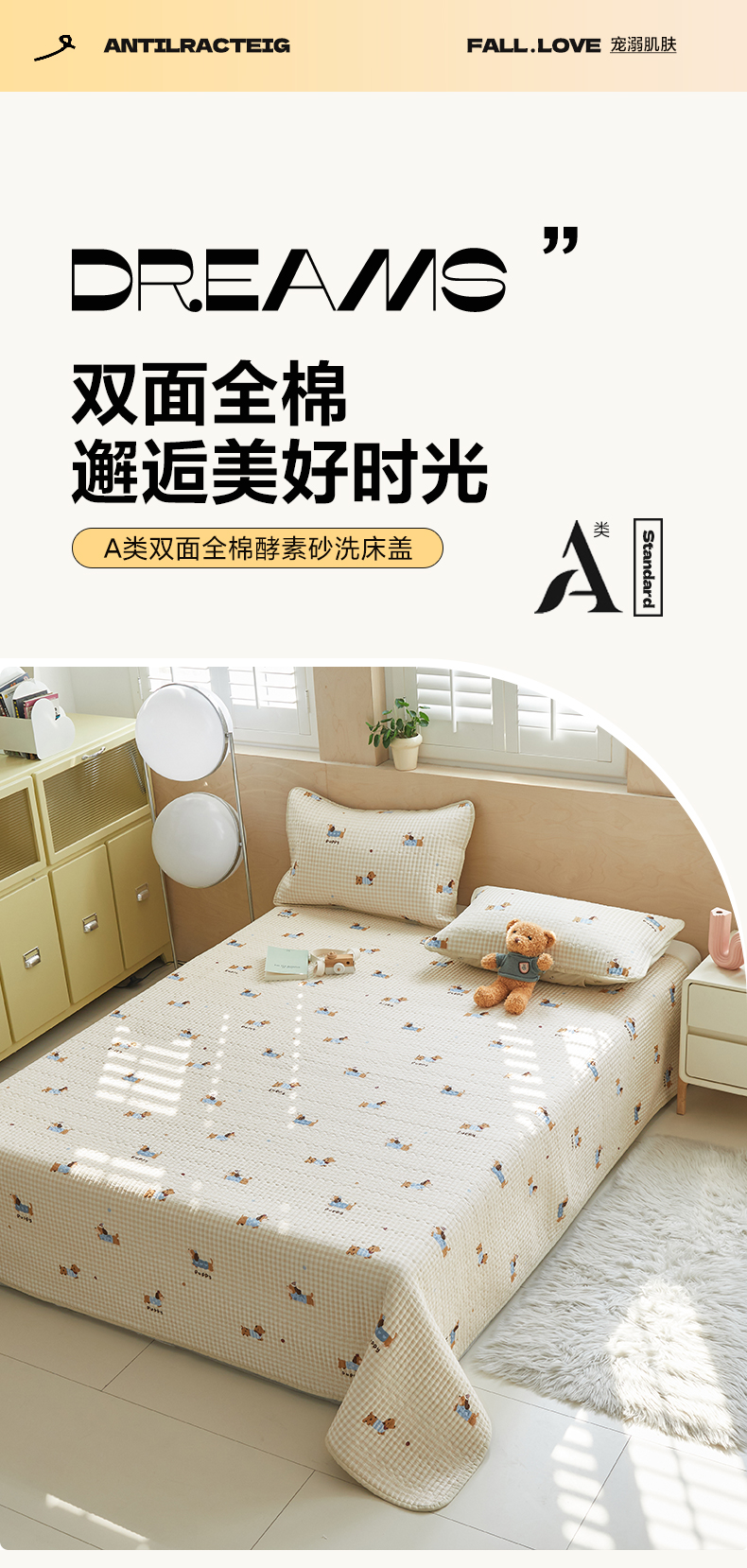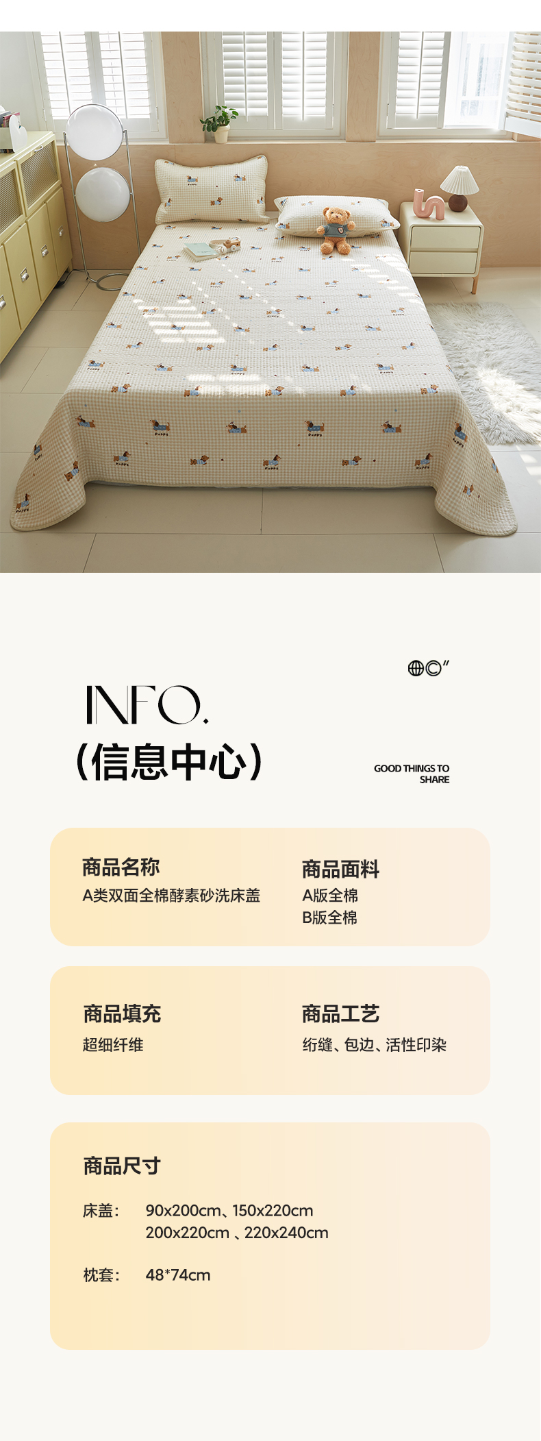 (总)舒居家纺 2025新款双面全棉酵素砂洗床盖( 风格二),组合图,爱心木马,比利小熊,花季少女,花开无声--咖,花睿--青草绿,洛林--粉,迷彩花兔,俏皮狗,兔兔乐园,小汽车,樱桃格子