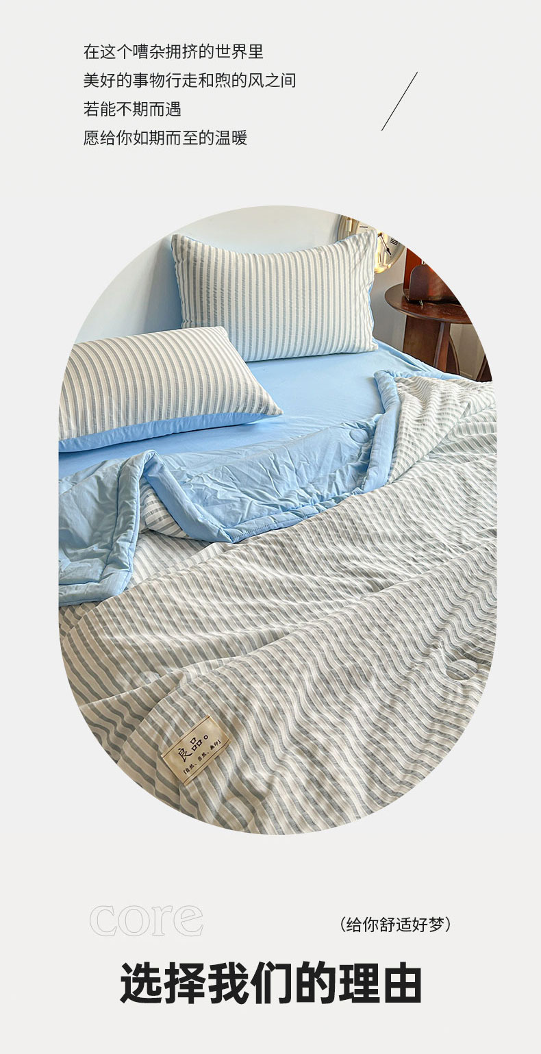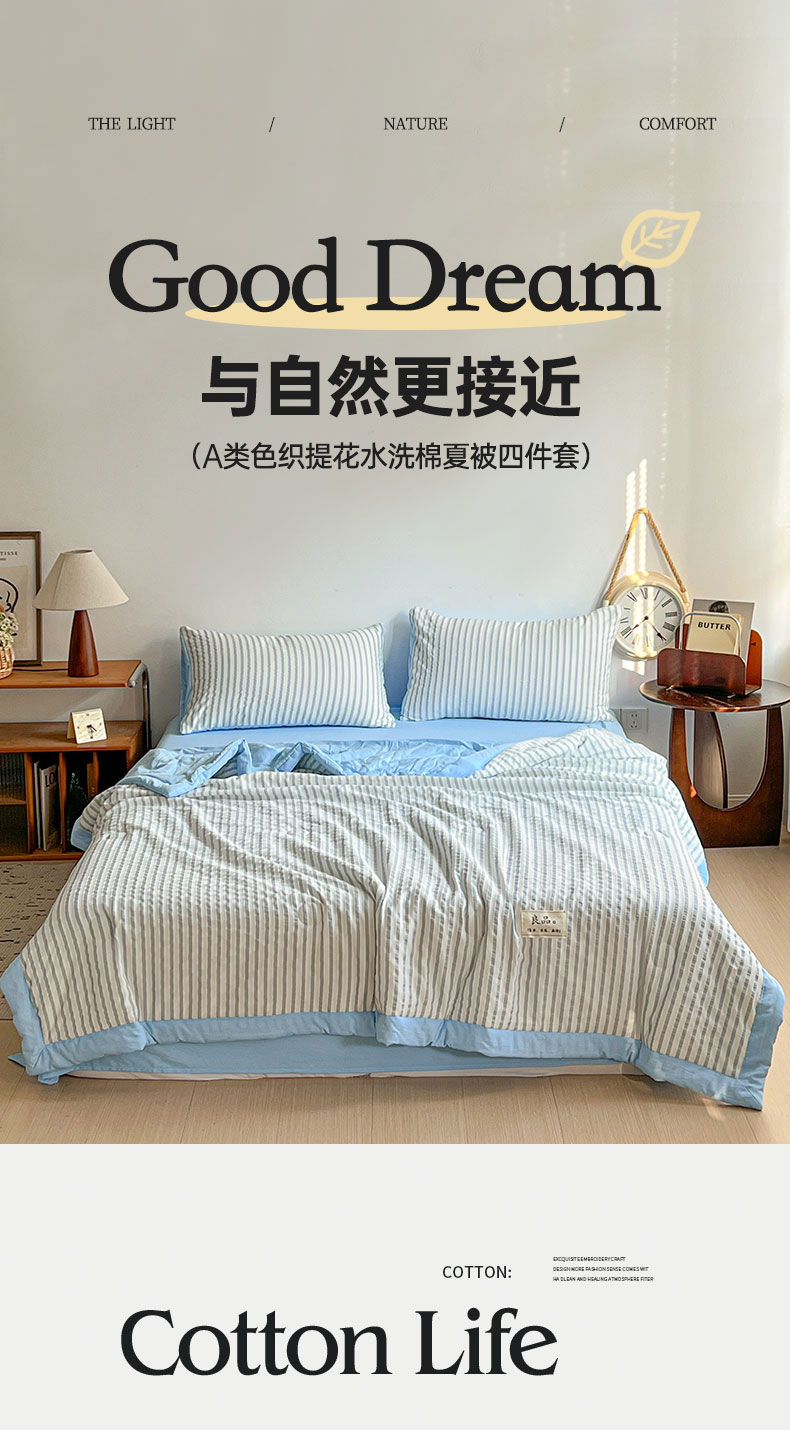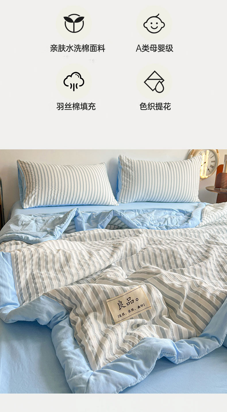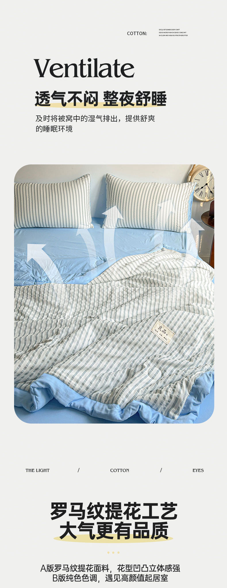 商品名称:灰鲸 2025新款色织提花良品夏被四件套夏凉被空调被 罗马纹-天空蓝
