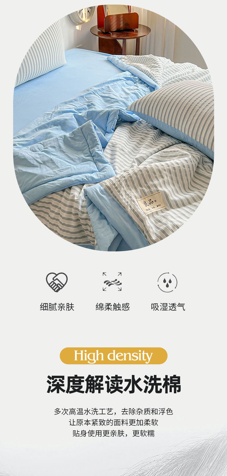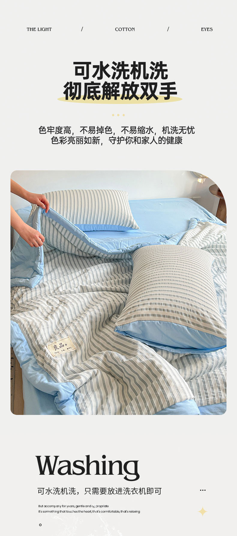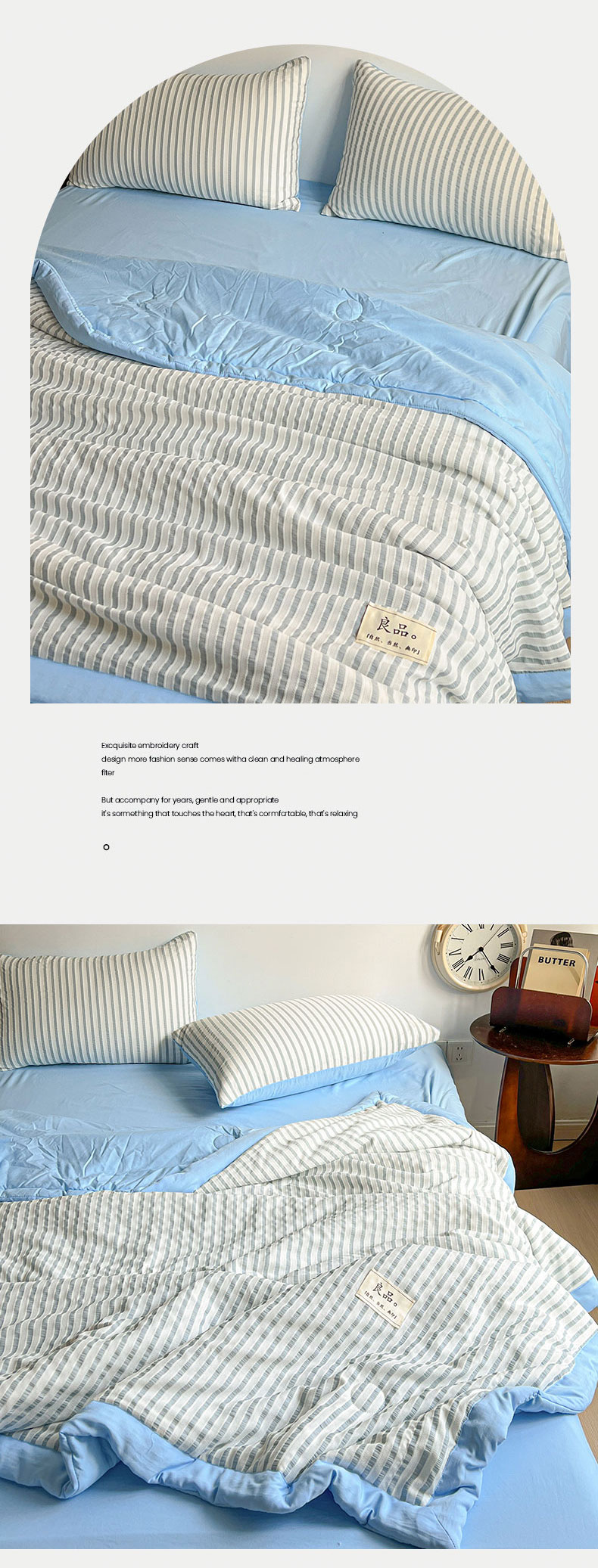 商品名称:灰鲸 2025新款色织提花良品夏被四件套夏凉被空调被 罗马纹-天空蓝