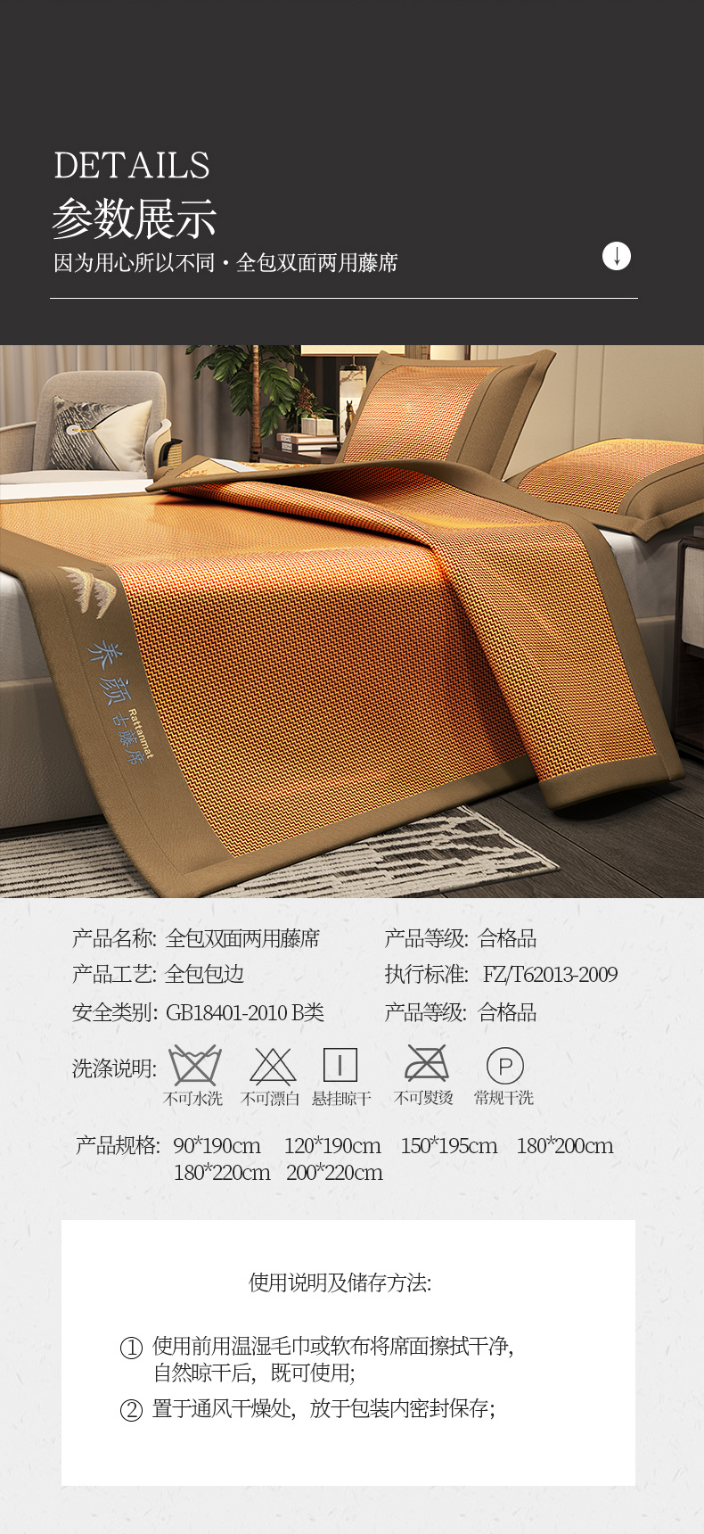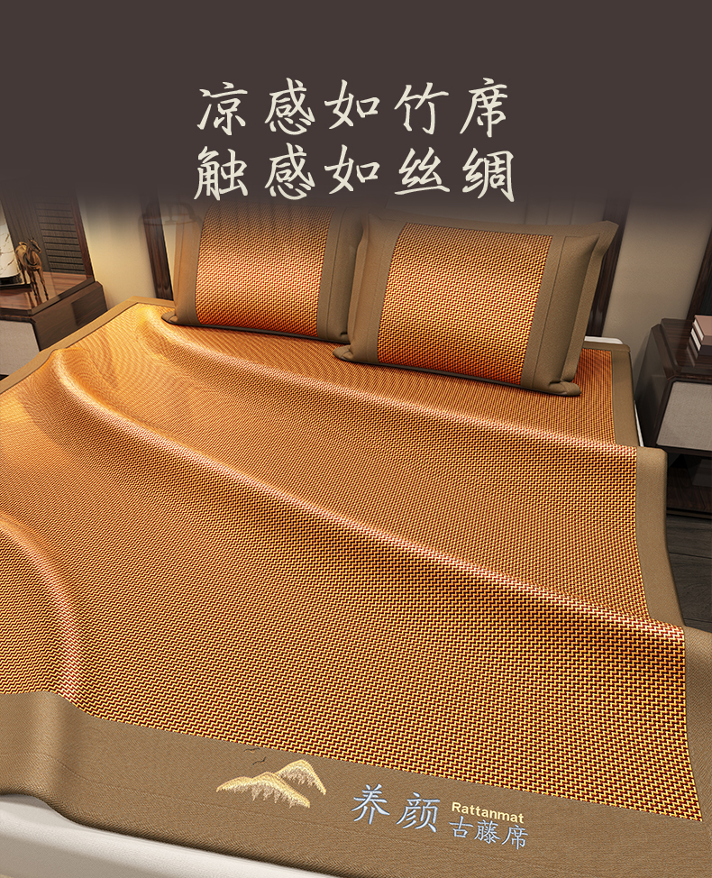 当前位置: 91家纺网 > 商品网购 > 床上用品 > 凉席 > 藤席 > 宜派家纺 2025新款全包双面两用藤席 养 颜古藤席-红棕