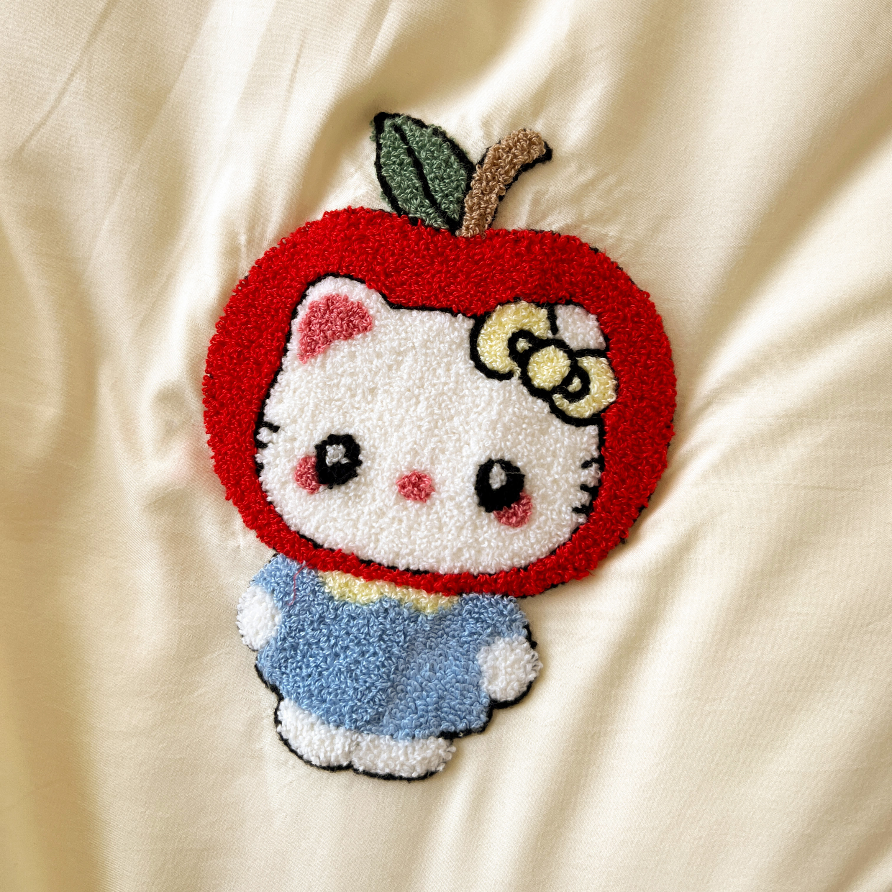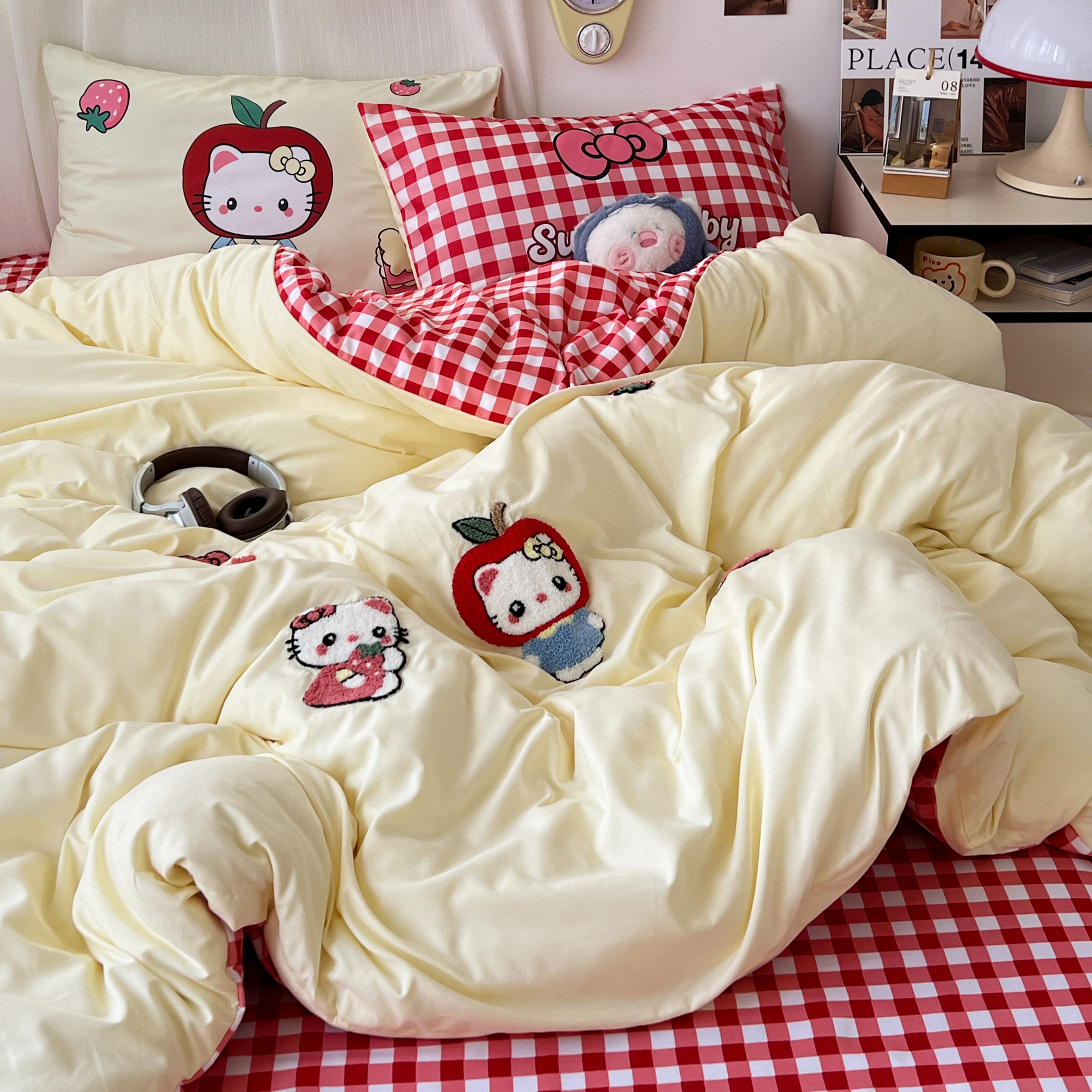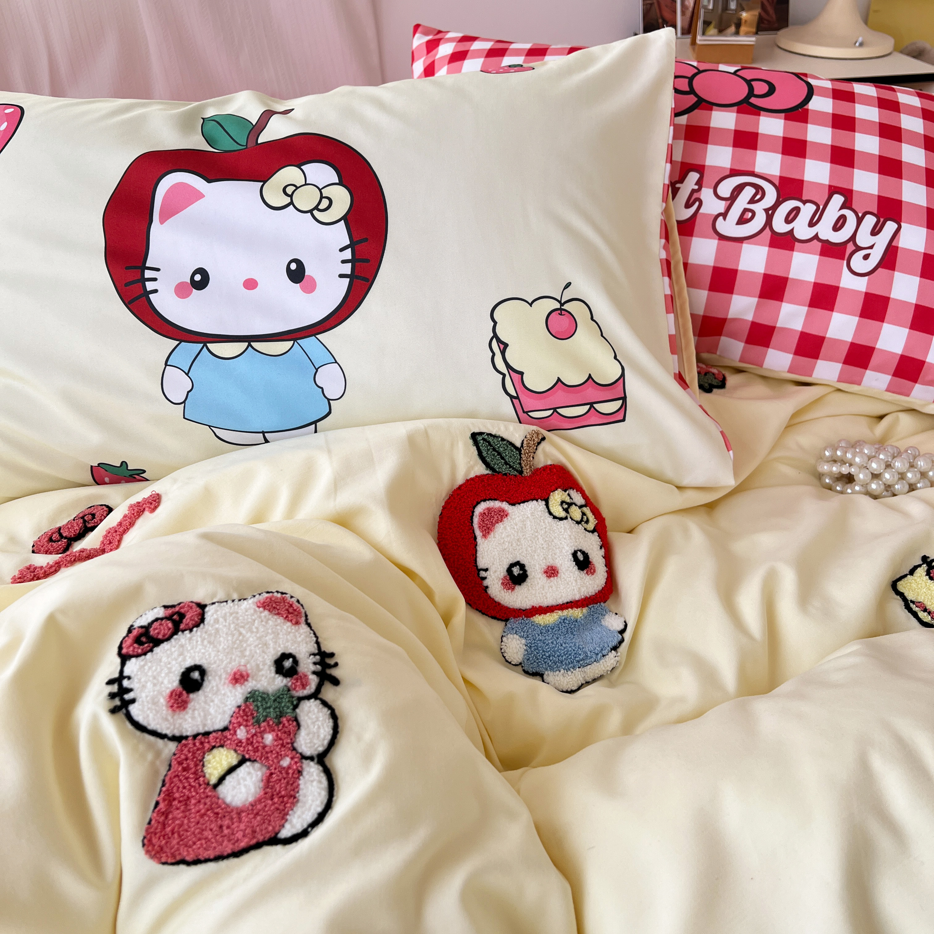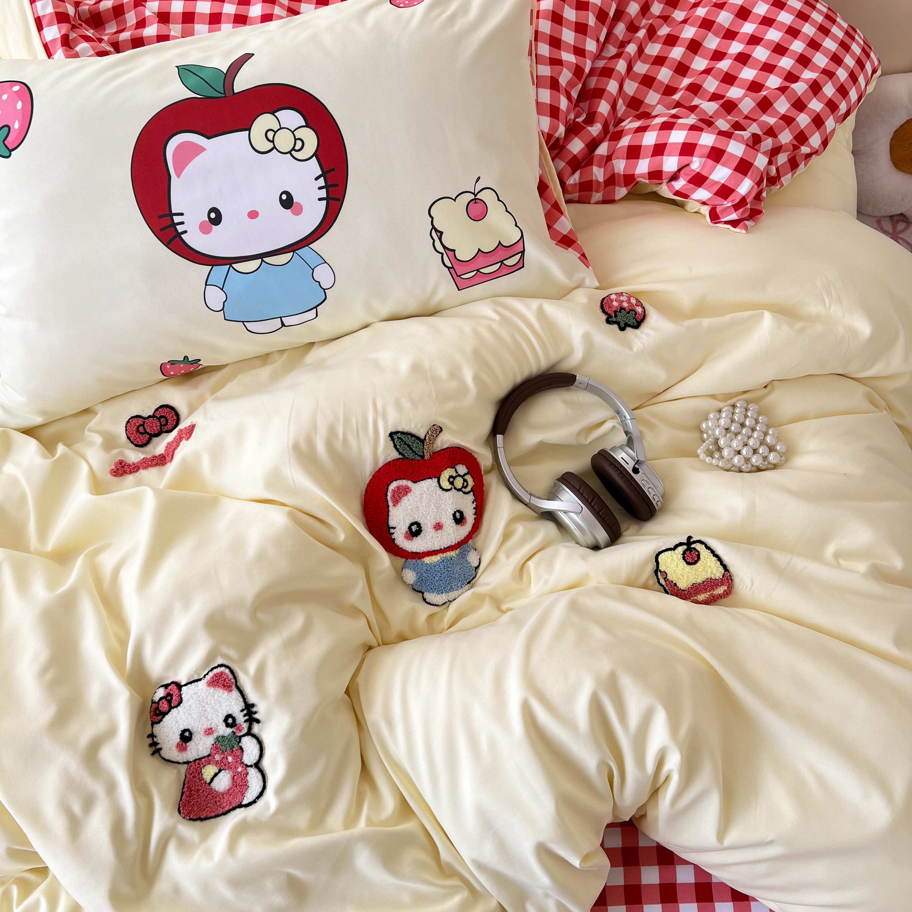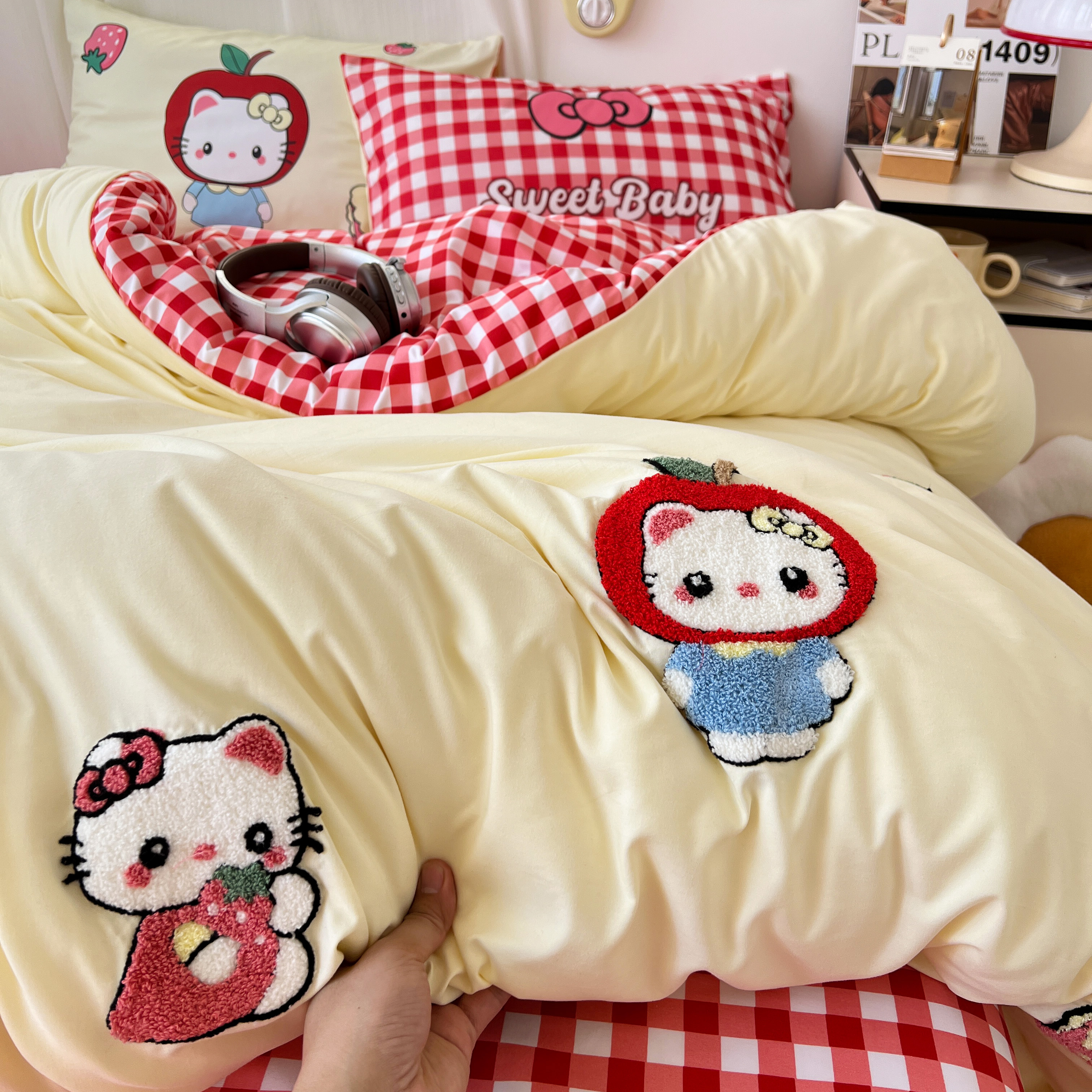 一霖家纺 2025新款高克重云朵棉数码印花+毛巾绣四件套 苹果猫