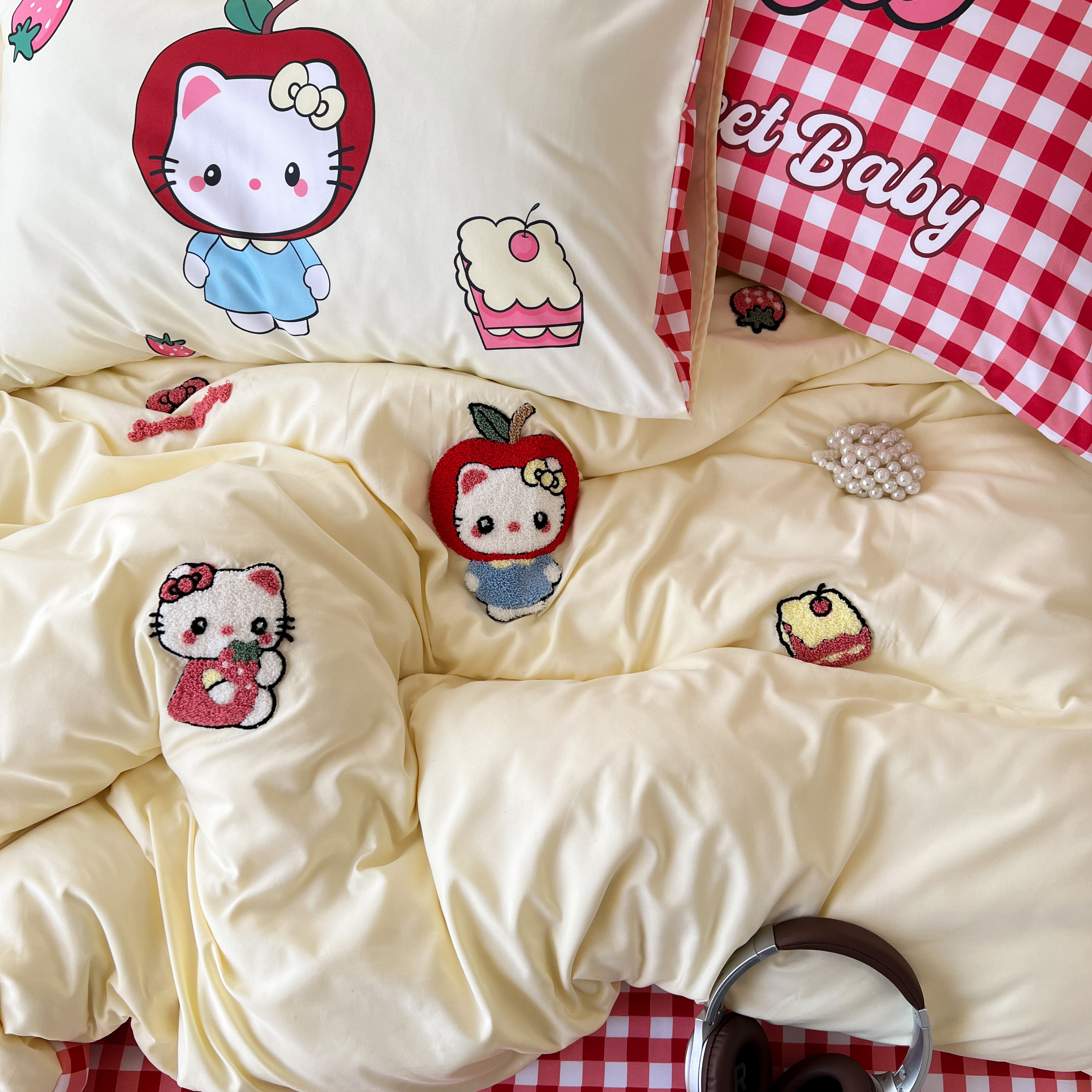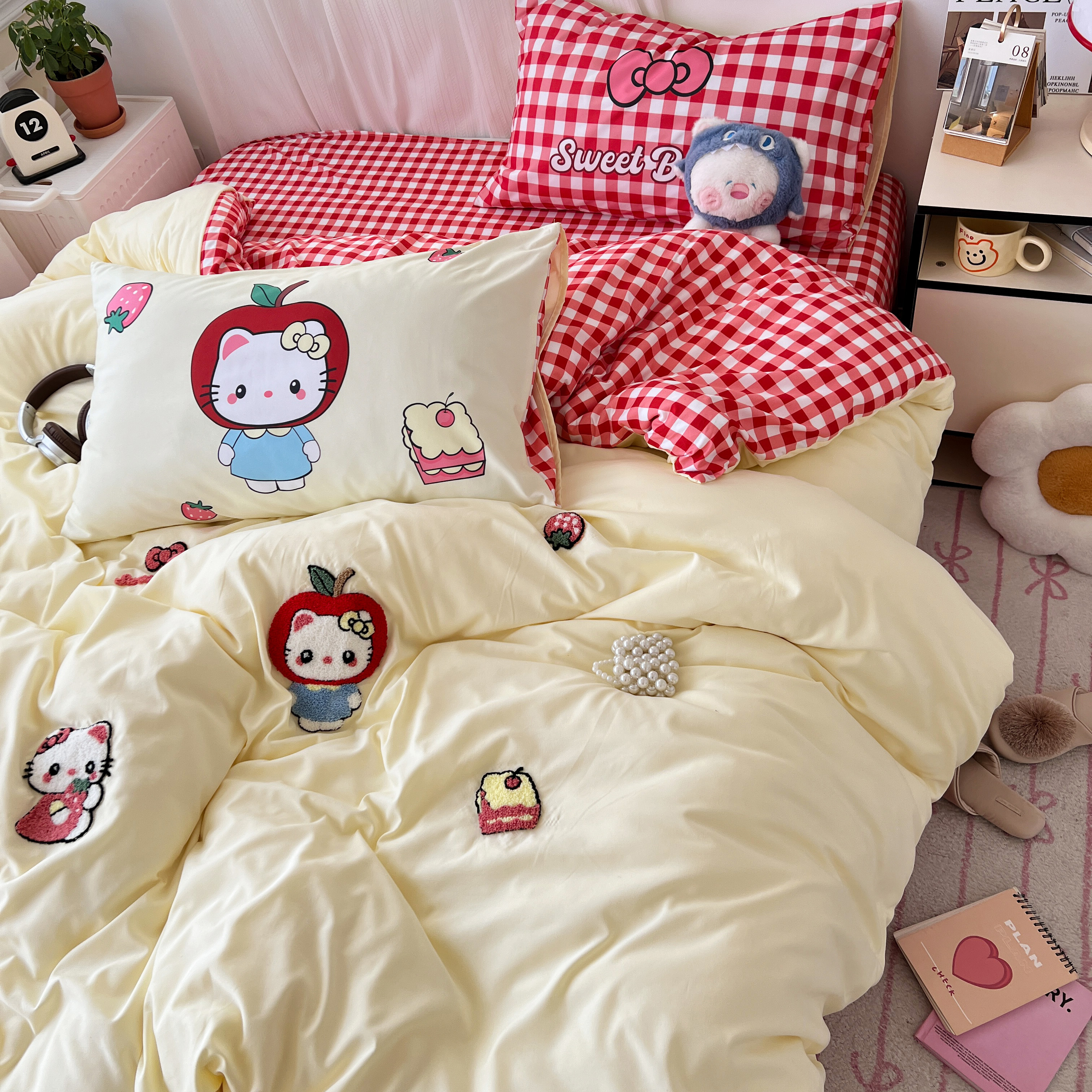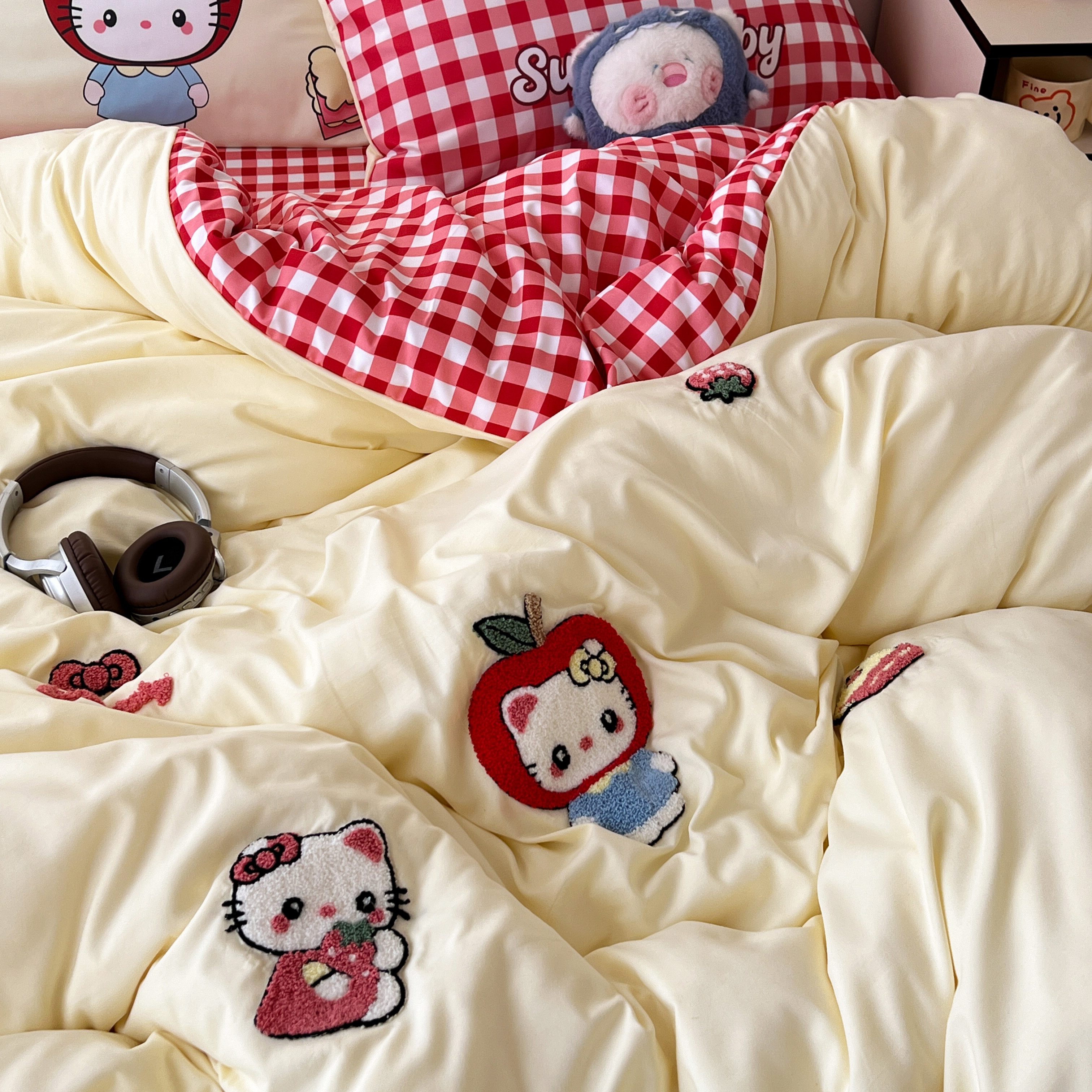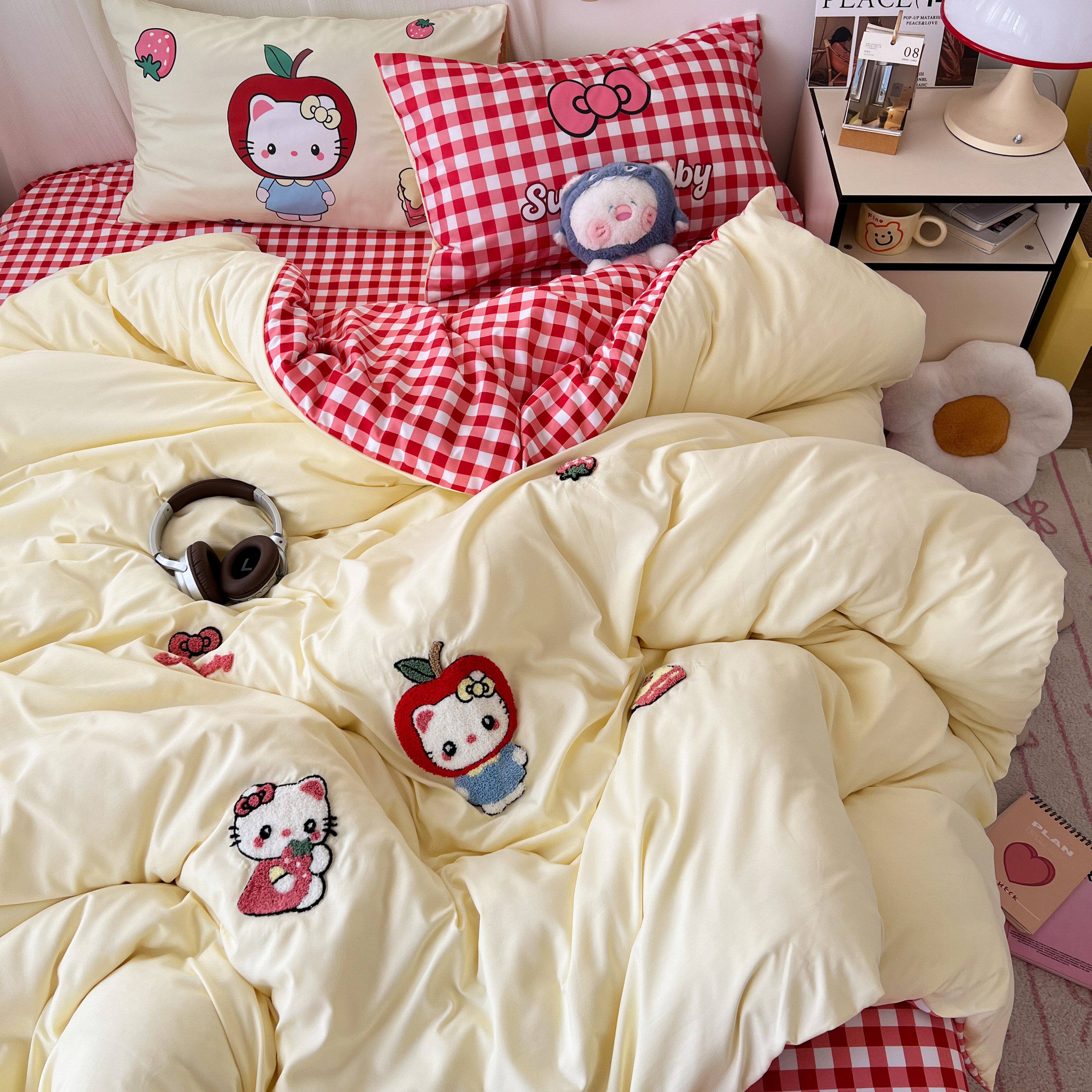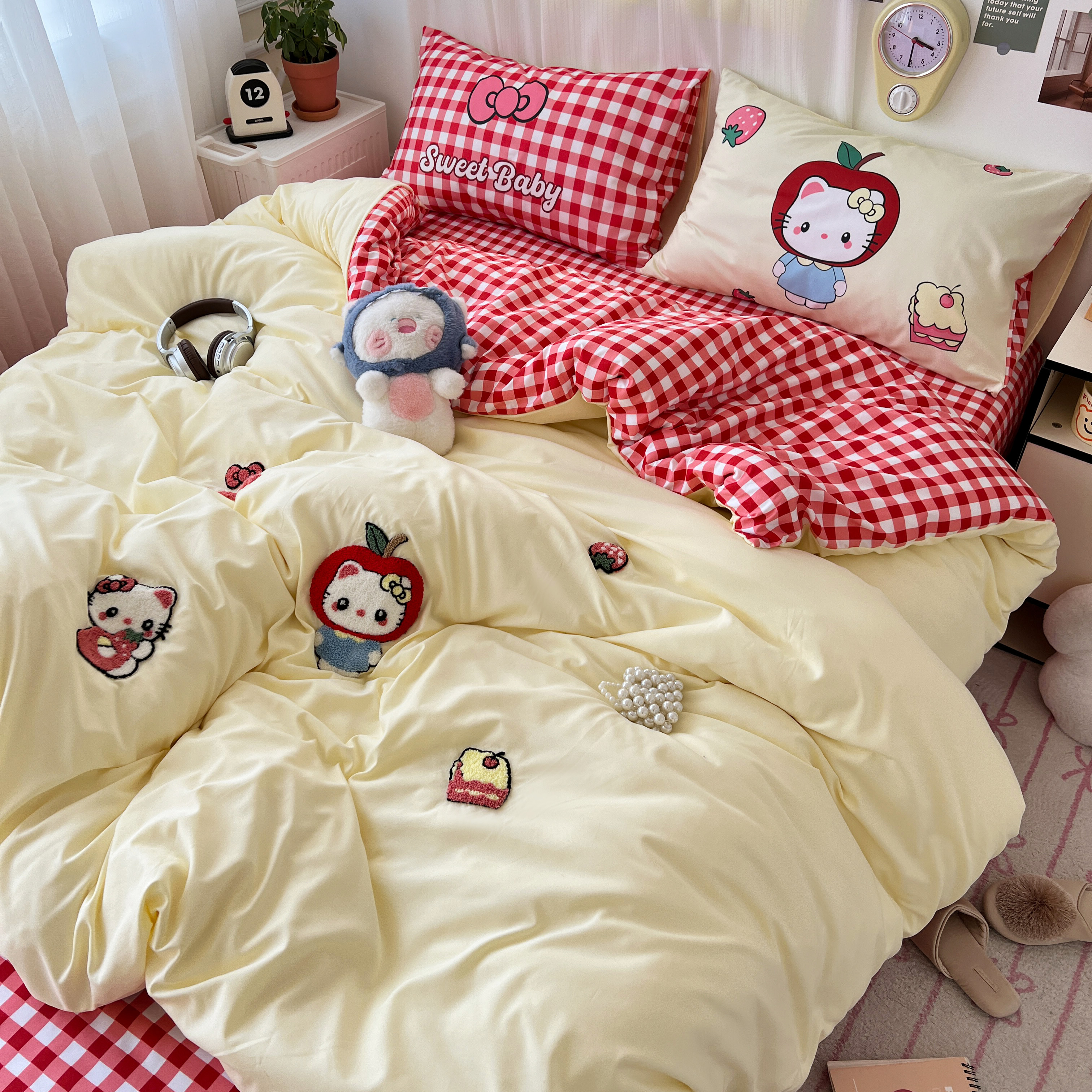 一霖家纺 2025新款高克重云朵棉数码印花+毛巾绣四件套 苹果猫