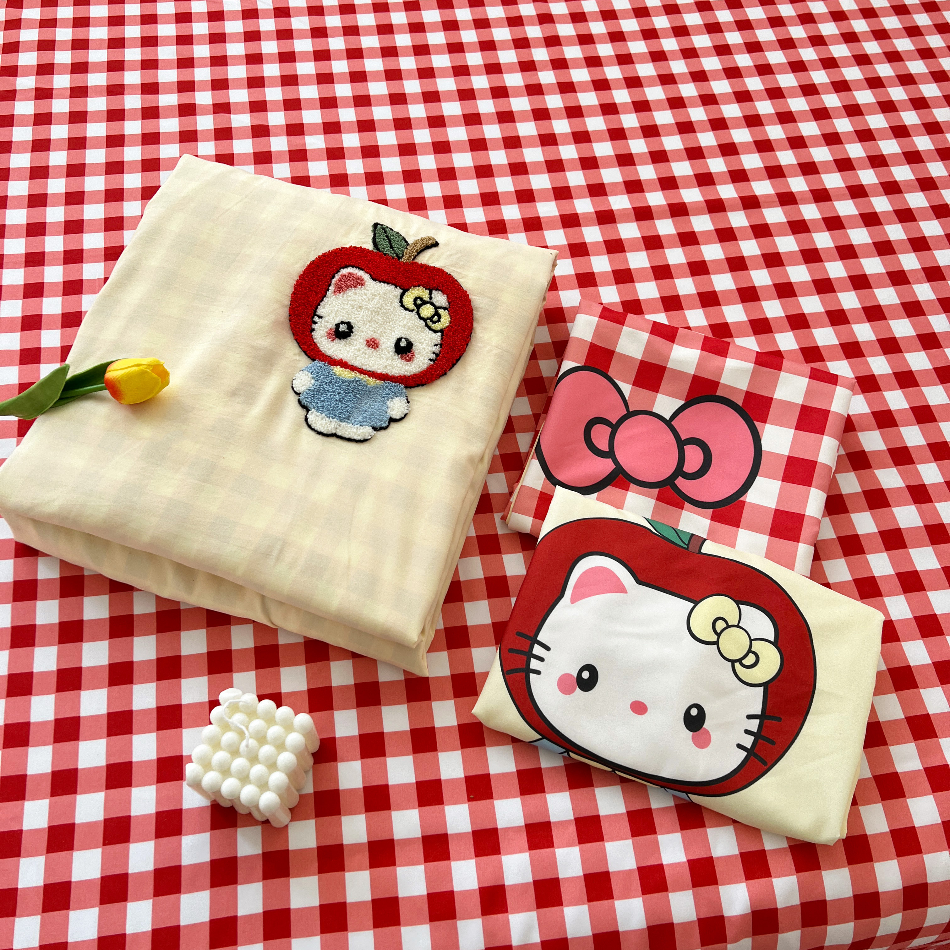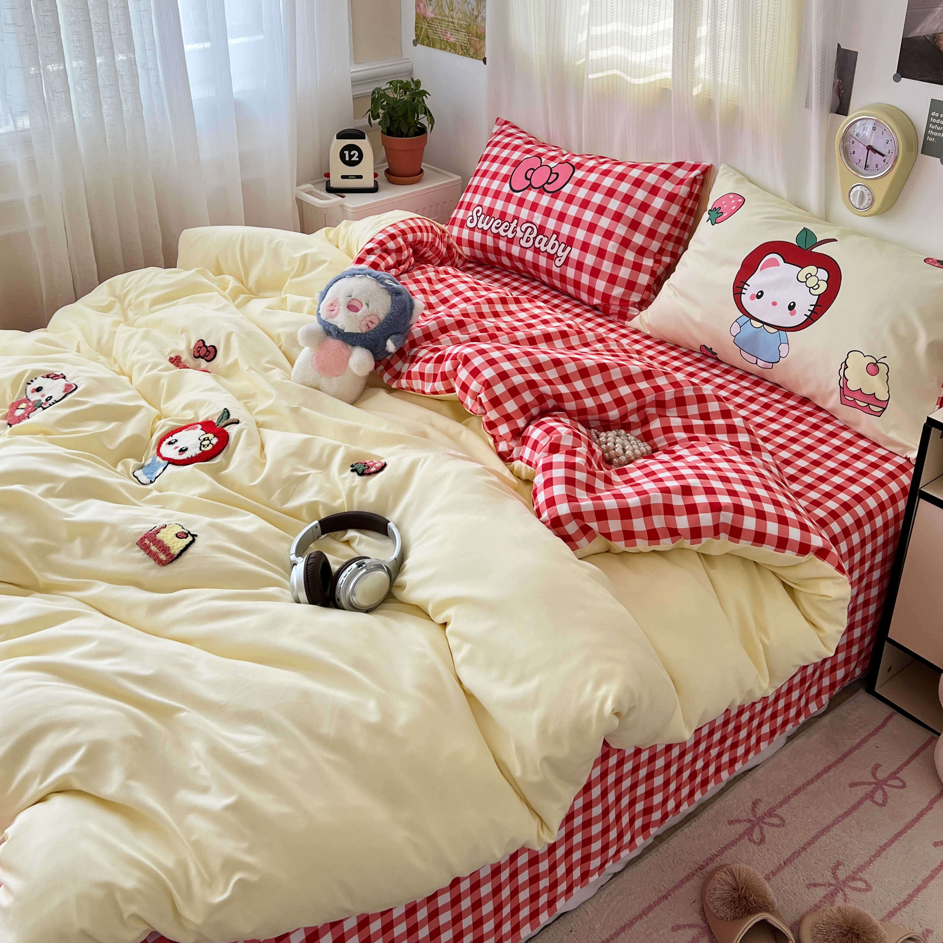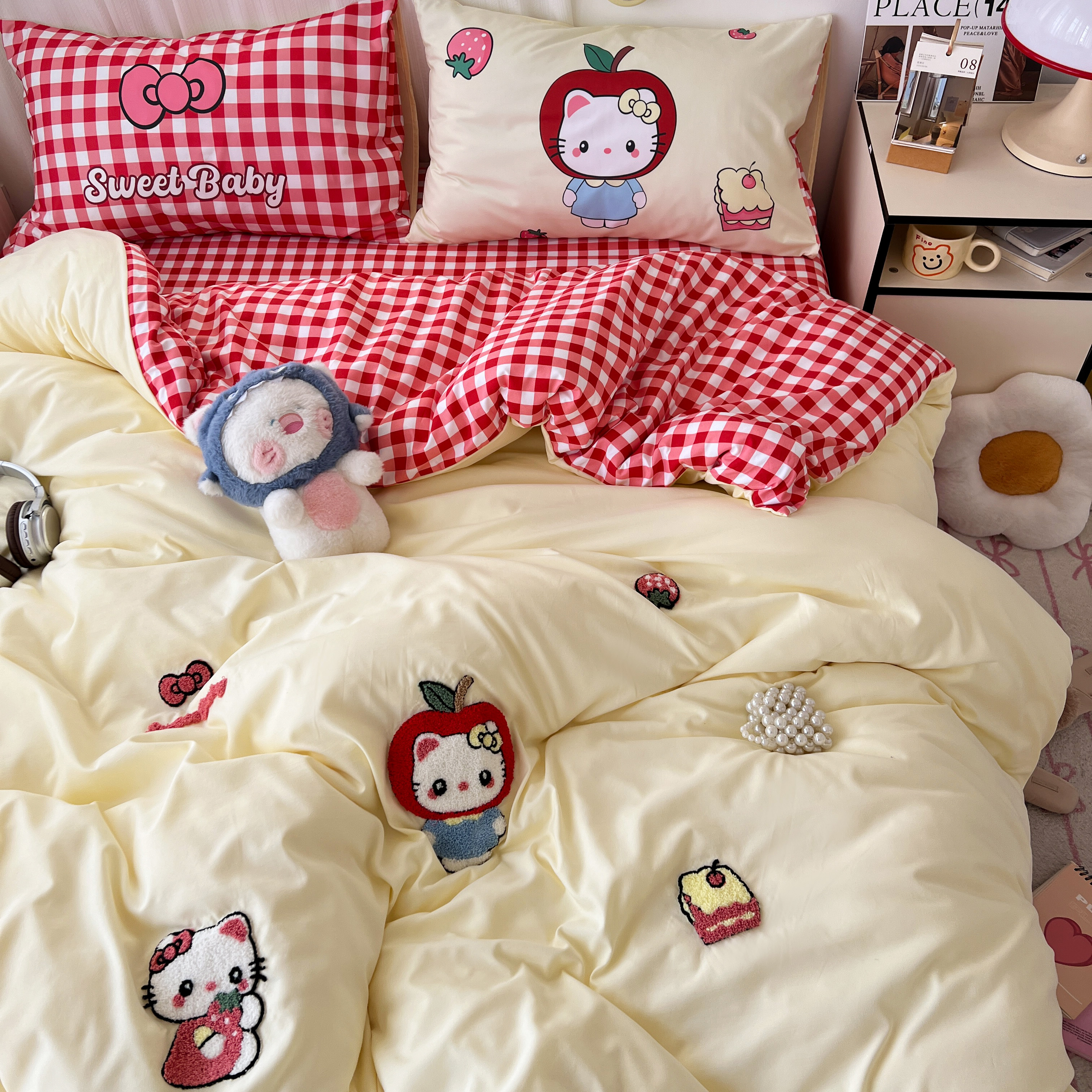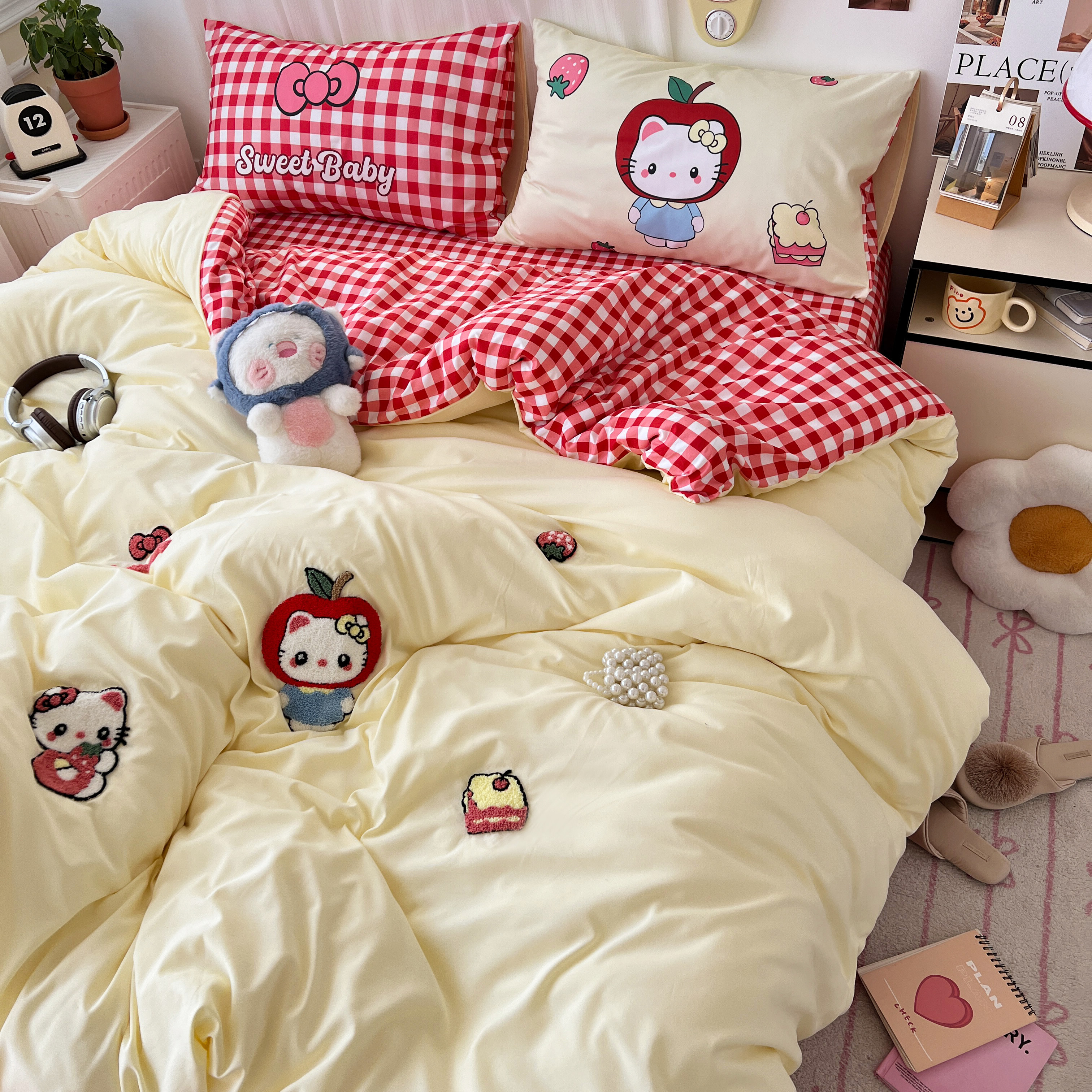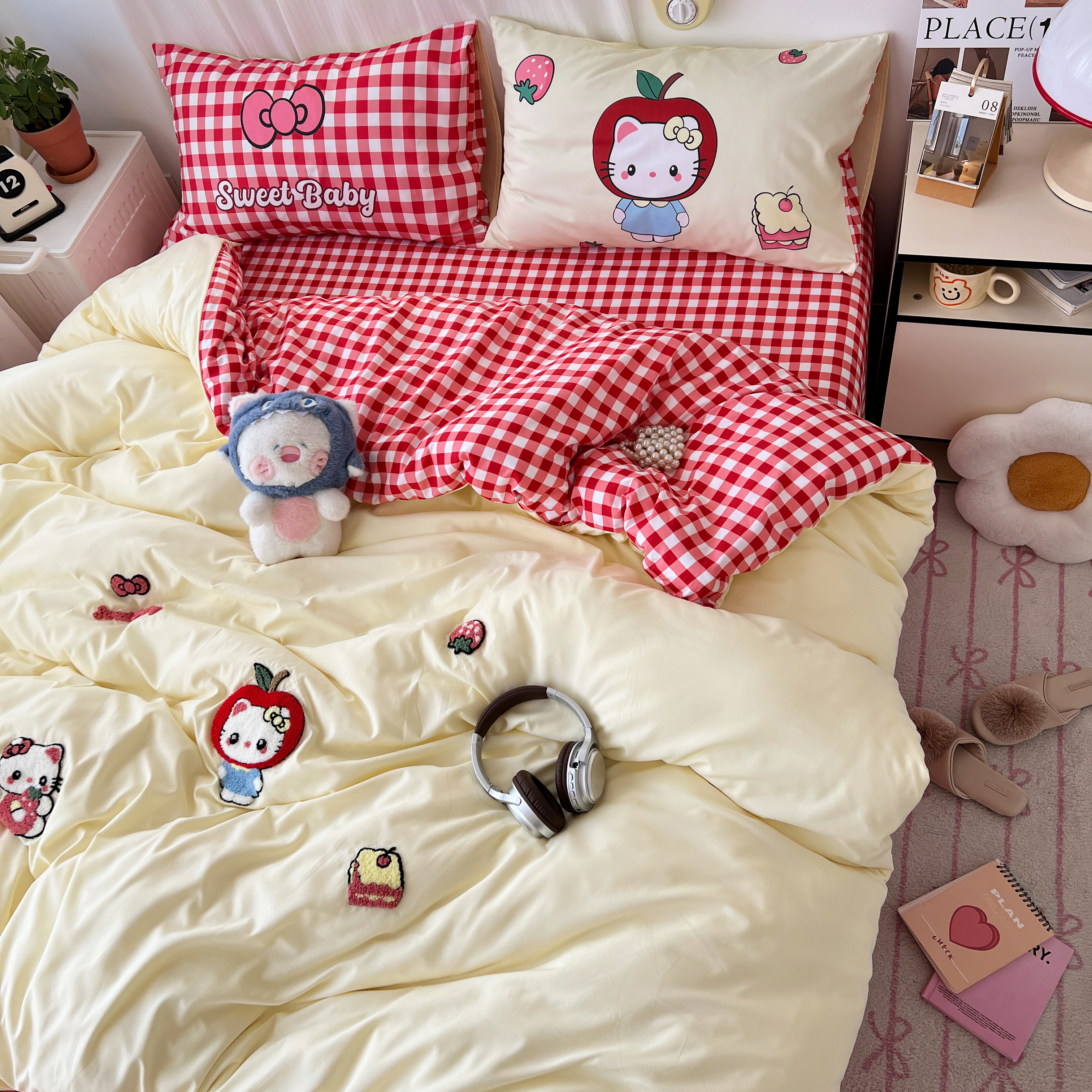 一霖家纺 2025新款高克重云朵棉数码印花+毛巾绣四件套 苹果猫