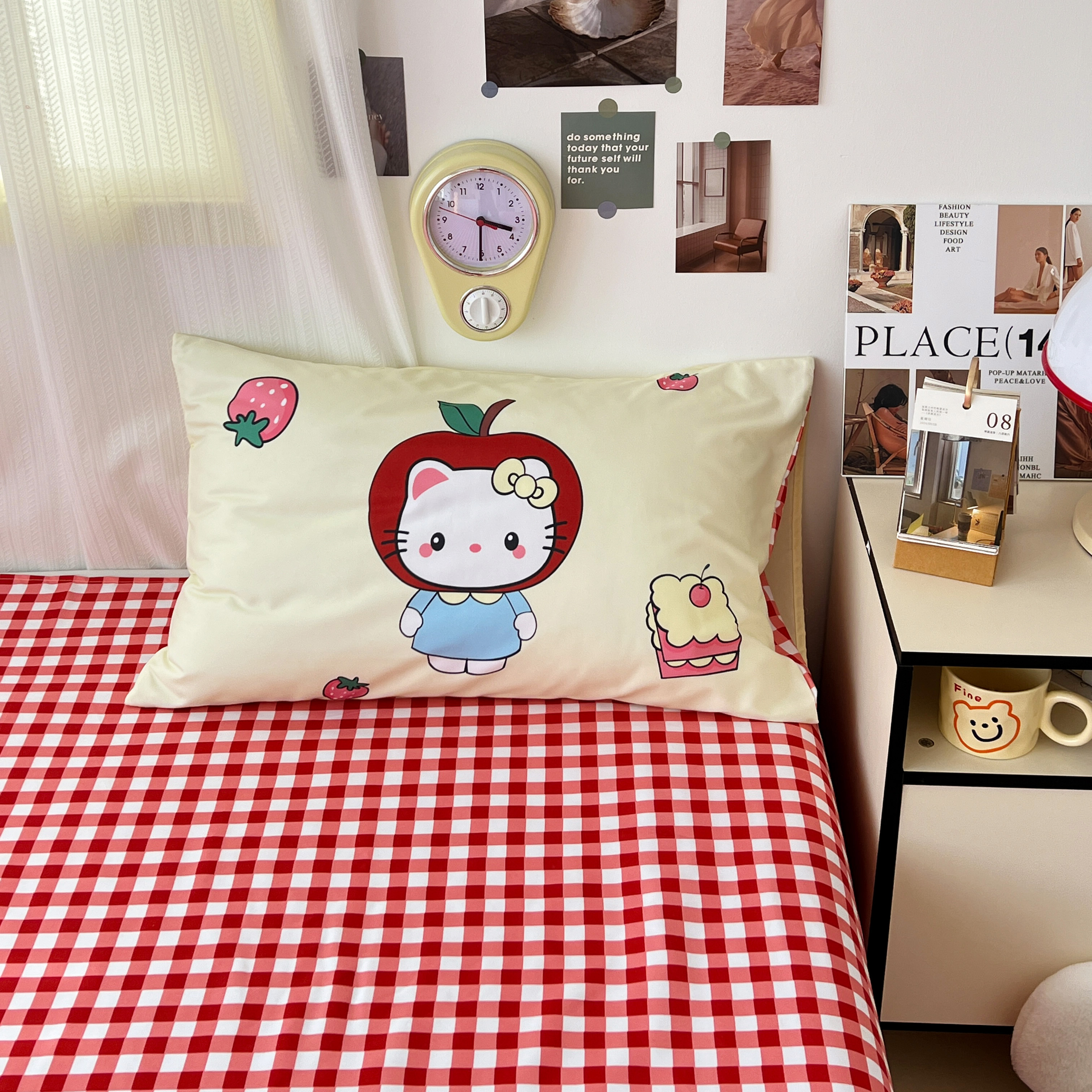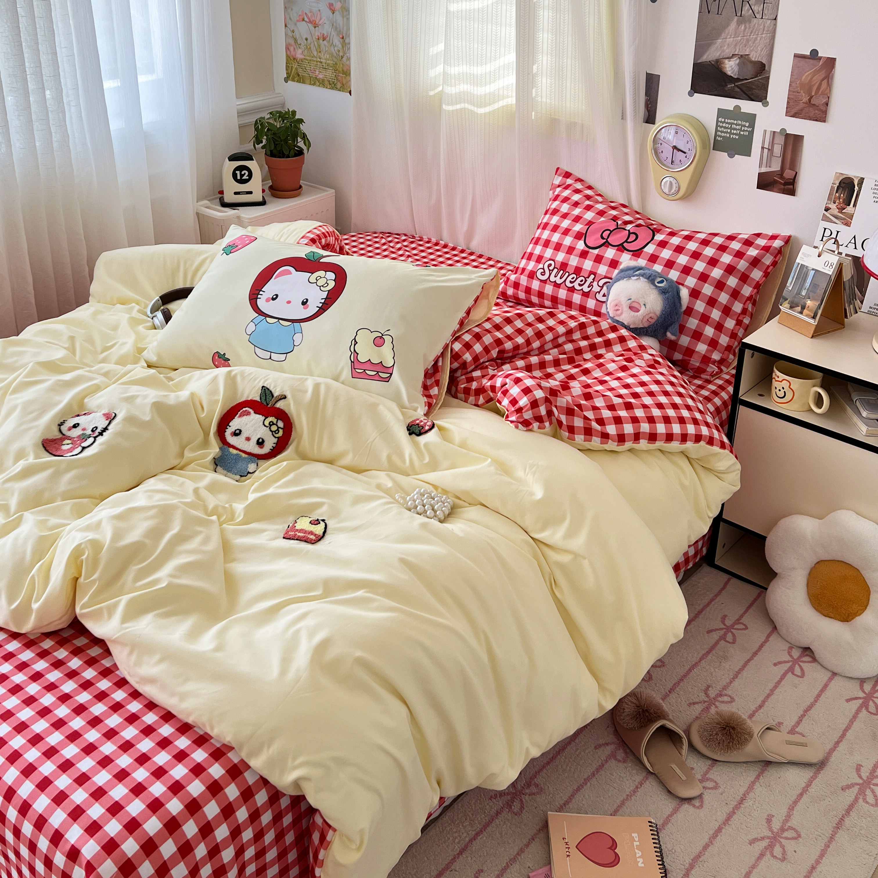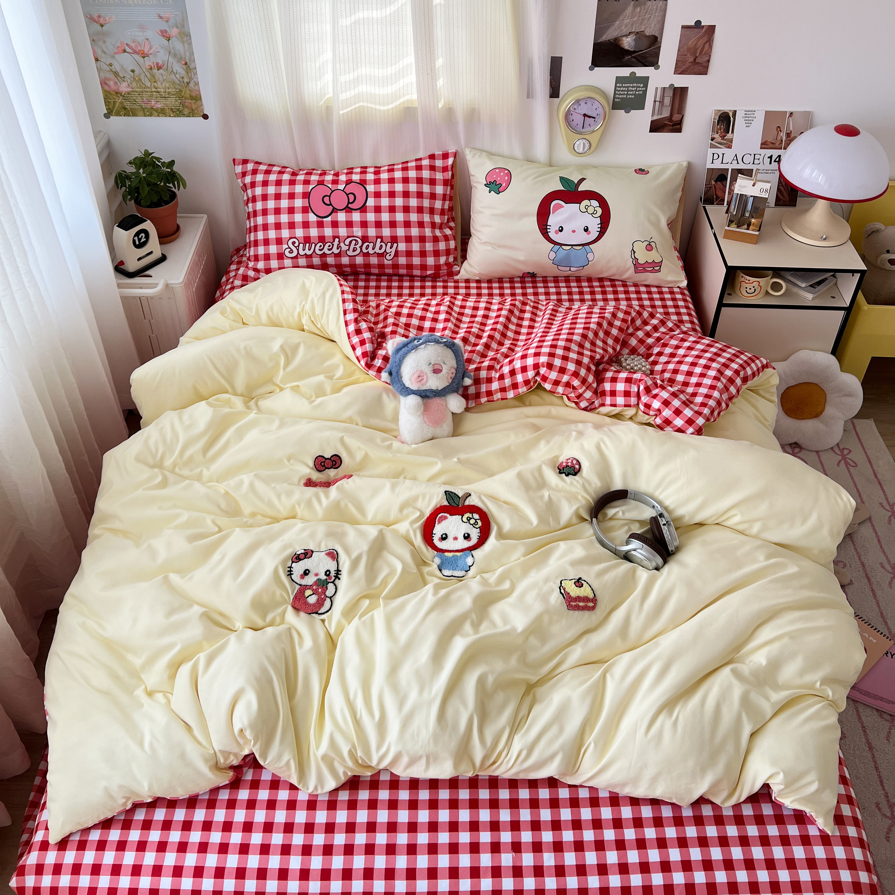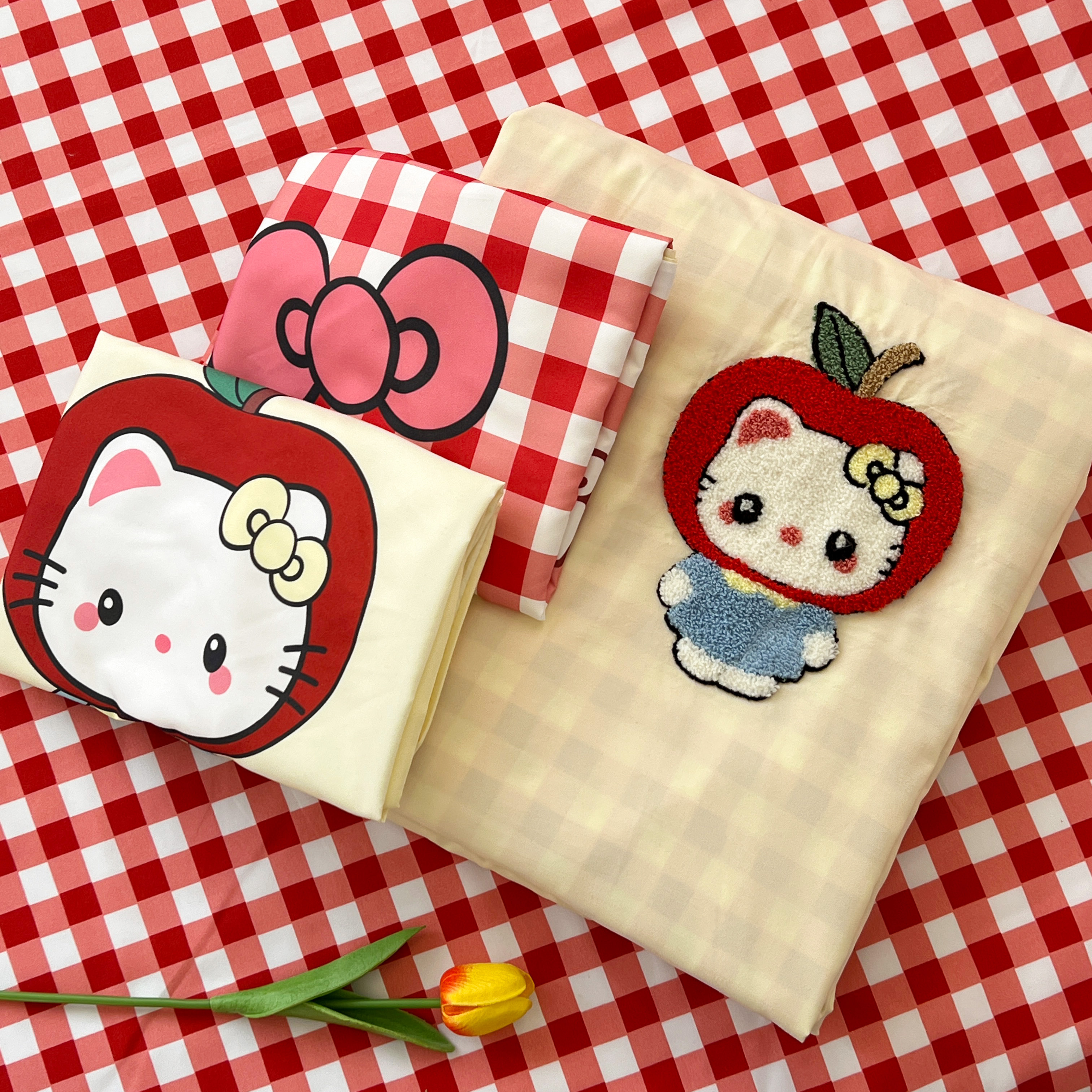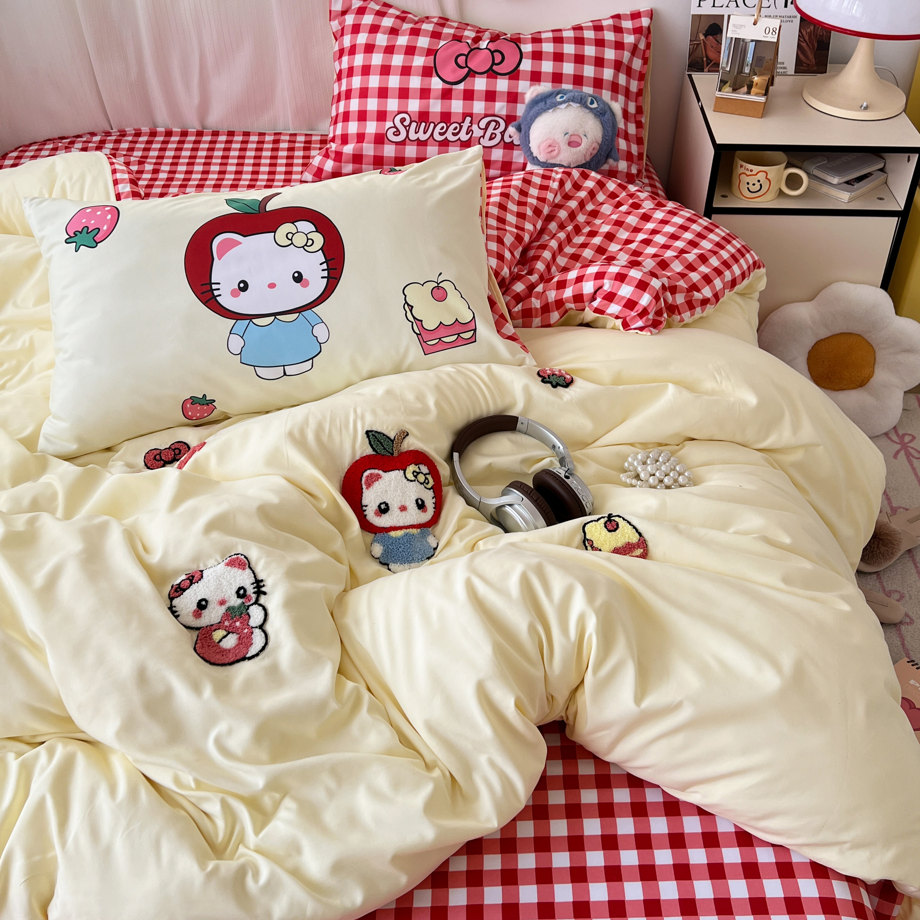 一霖家纺 2025新款高克重云朵棉数码印花+毛巾绣四件套 苹果猫
