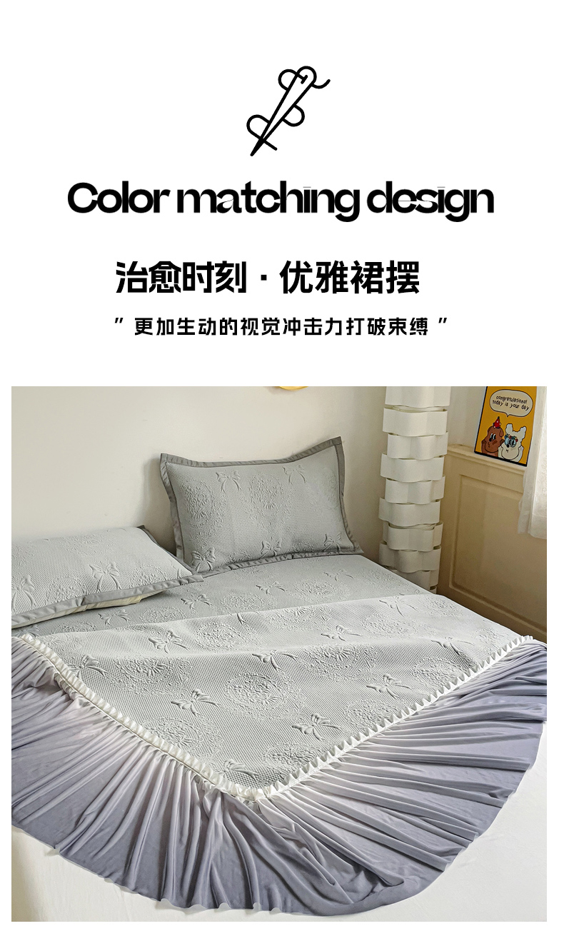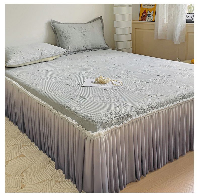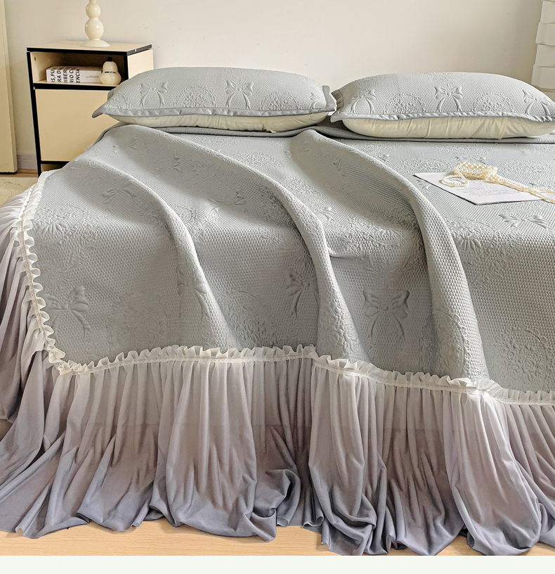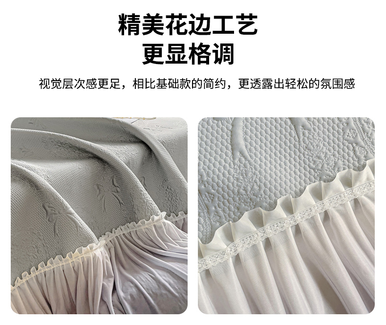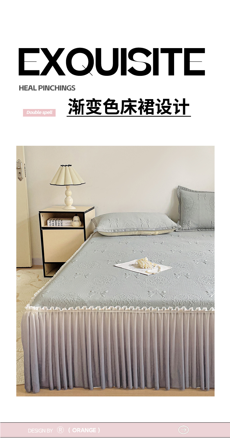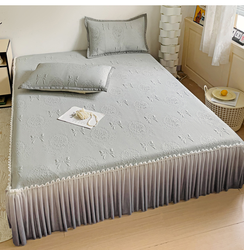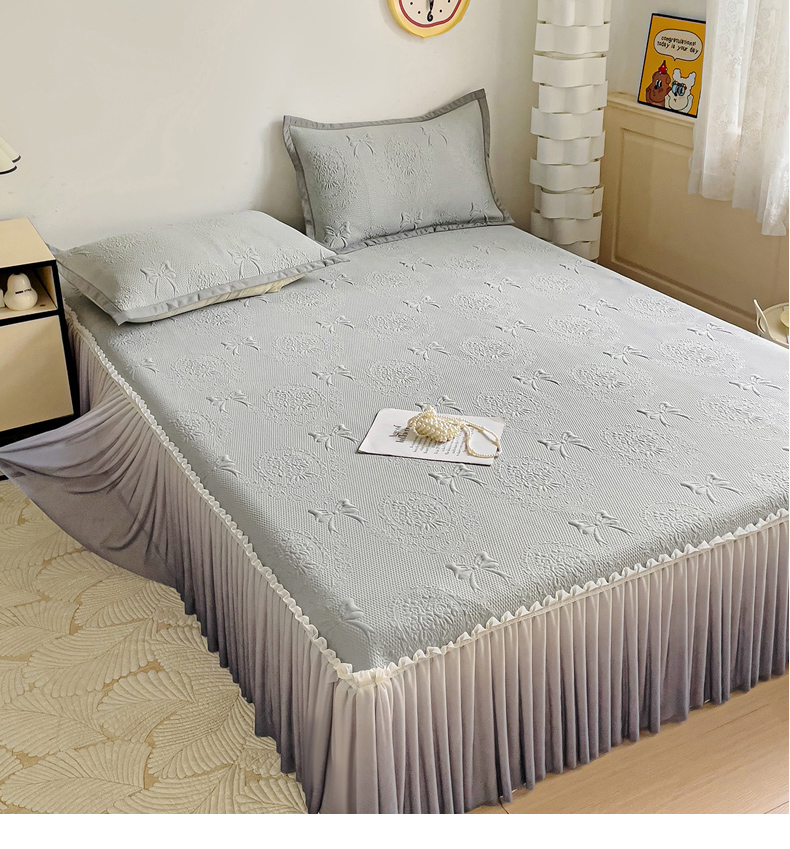 • 91家纺网 家纺一手货源 找家纺 富馨莱 2025春夏新款公主仙女风480克PE凉感凉豆豆床裙凉席三件套 蝴蝶结-灰床裙款