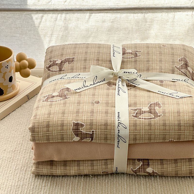 (总)麦伦家居 2026春夏新品全棉有氧双层纱印花系列简约款四件套,星星魔法,条纹星星梦,巴黎晚香,费尔岛狗狗,费尔岛小熊,格子狗狗蓝,花间兔语,蓝条木马,美式,千禧马,浅梦 米,浅梦粉,浅梦紫,柿柿如意,小野花,星夜花影蓝,KT乐园